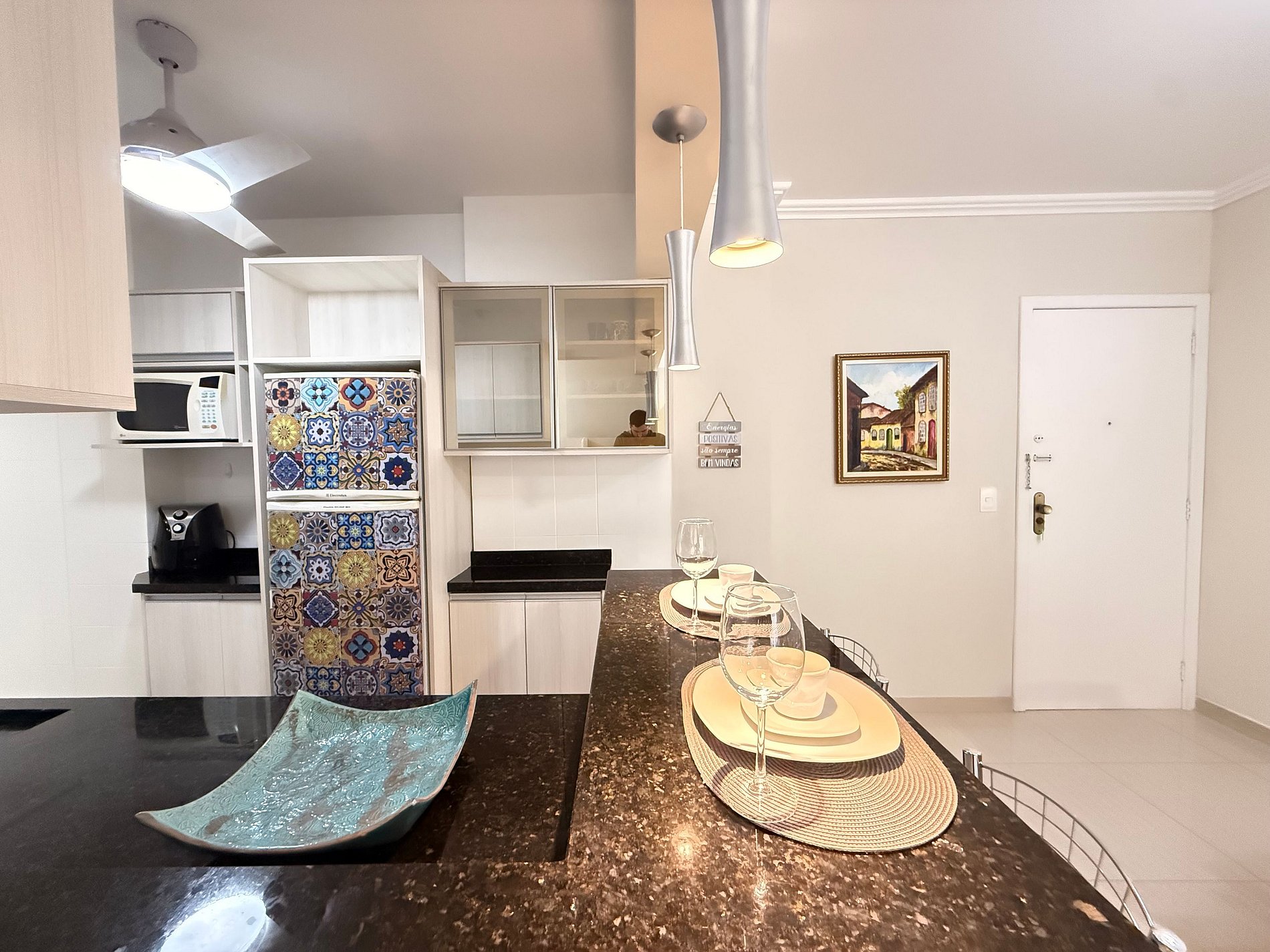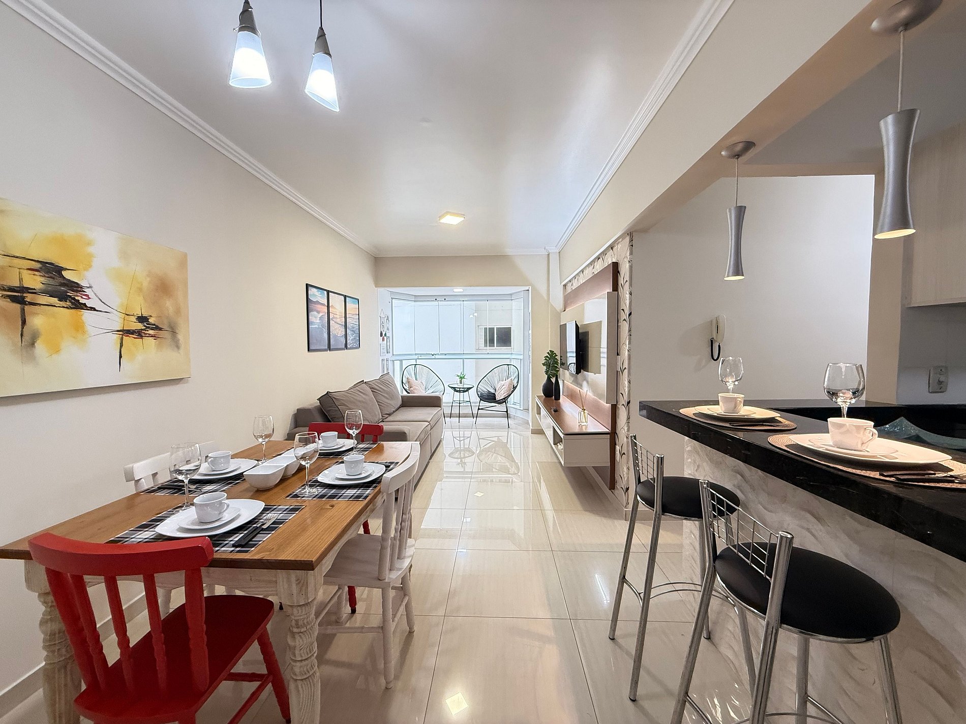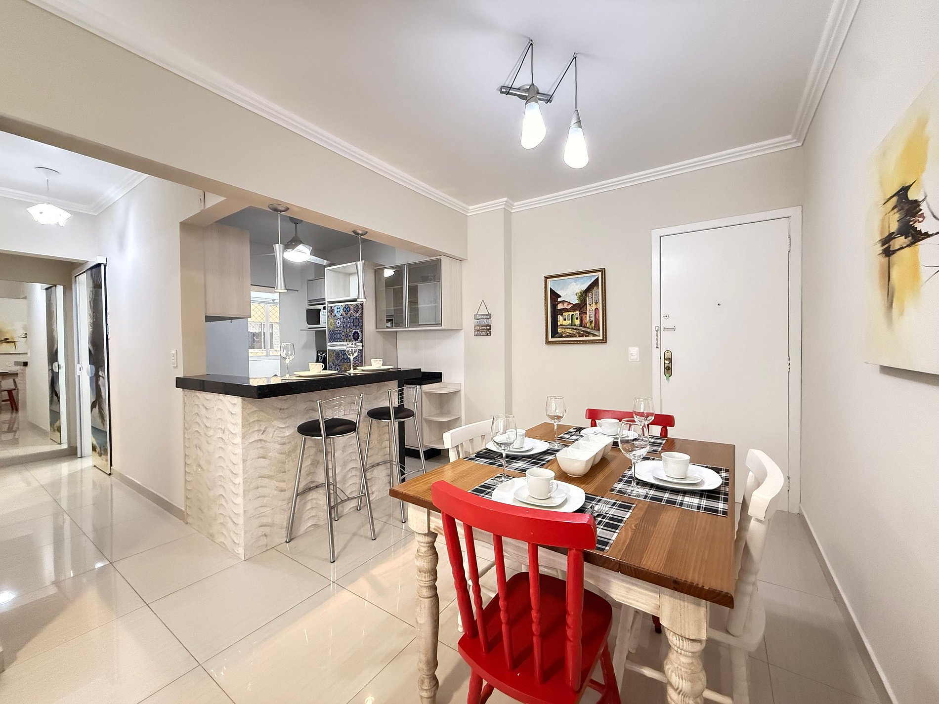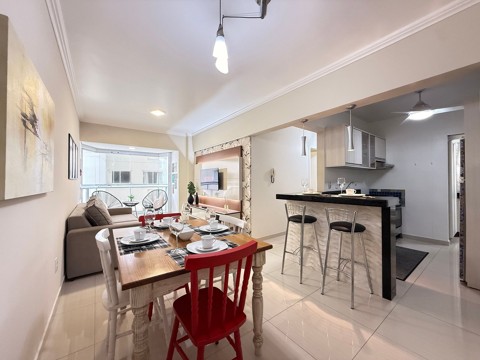 - Mesa de jantar integrada, ideal para refeições em família ou entre amigos.
