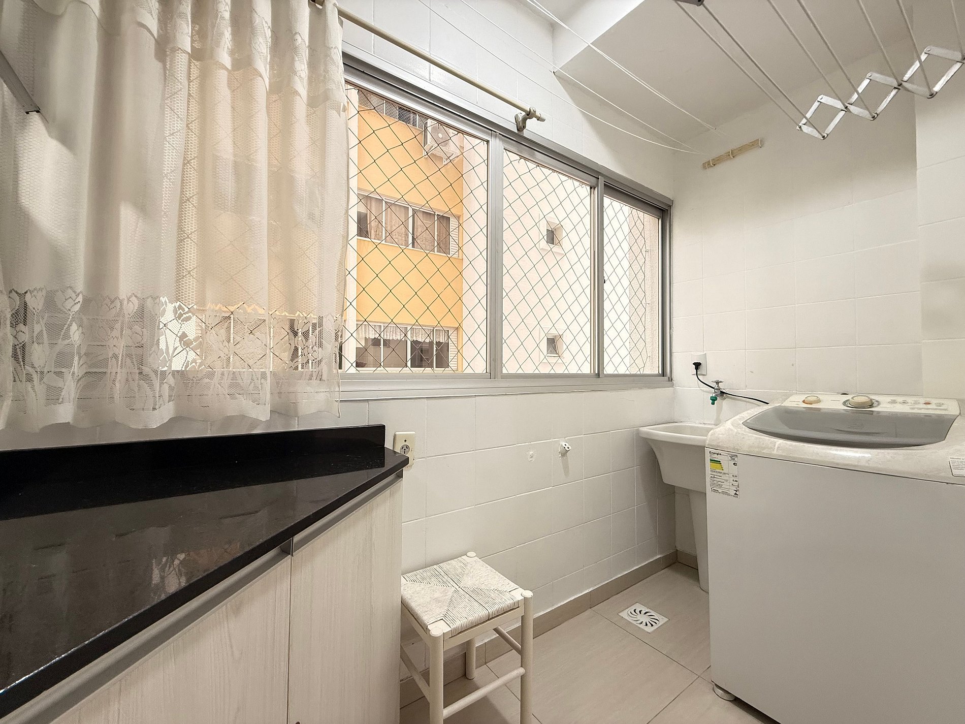 Além disso, o apartamento conta com uma lavanderia privativa, equipada com máquina de lavar, tanque e varal, para maior praticidade durante sua estadia.