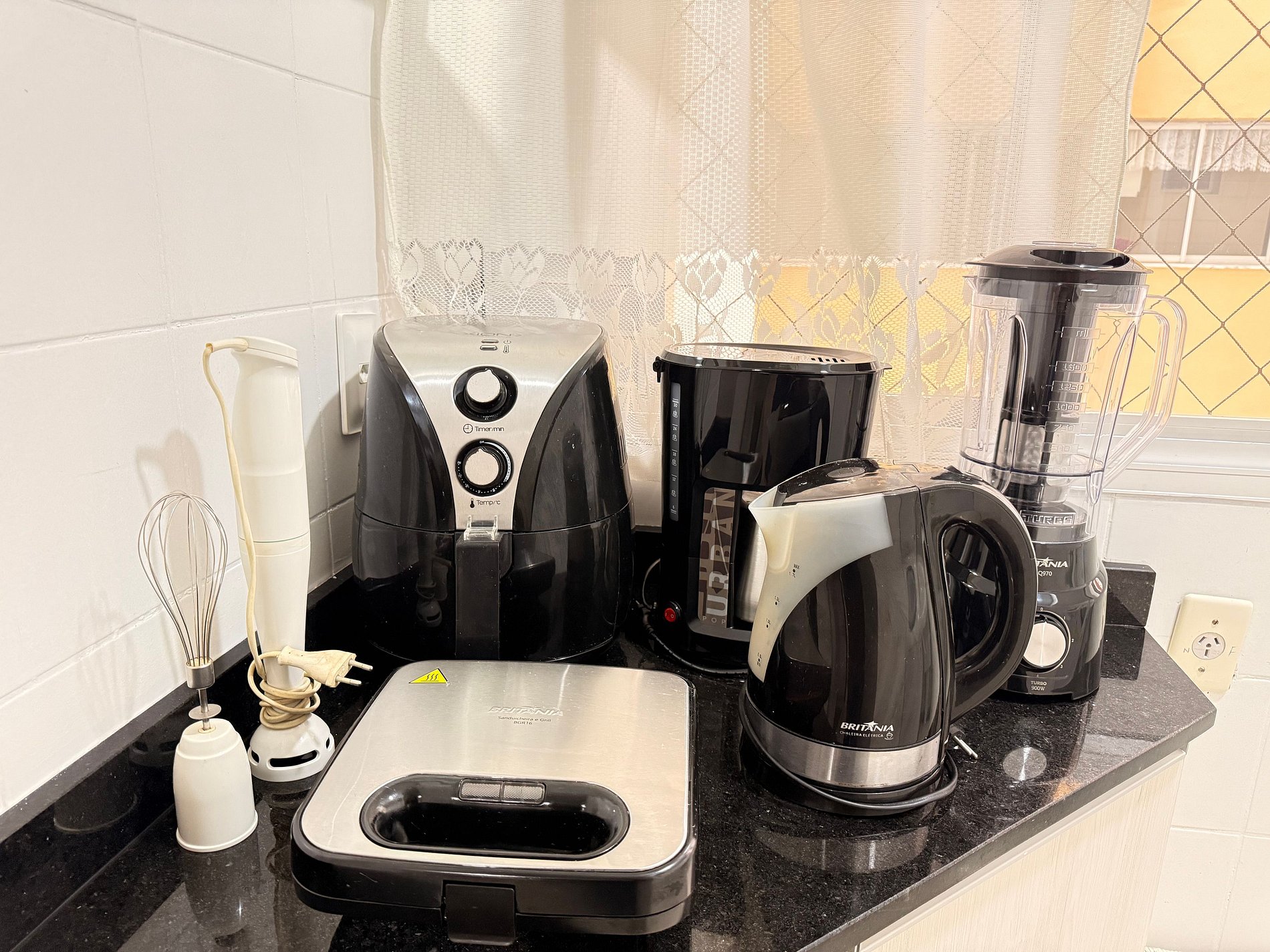 - Cafeteira elétrica, liquidificador e sanduicheira.