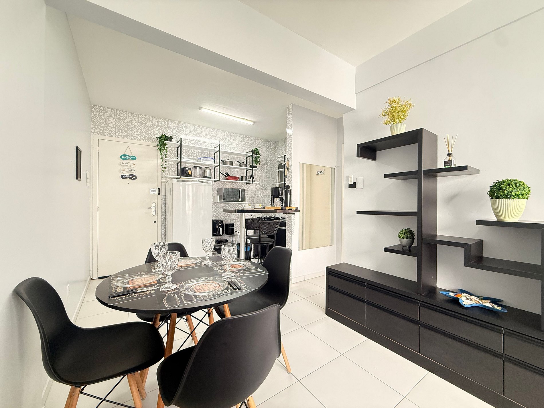 - Mesa de jantar funcional, ideal para refeições em família ou entre amigos.
