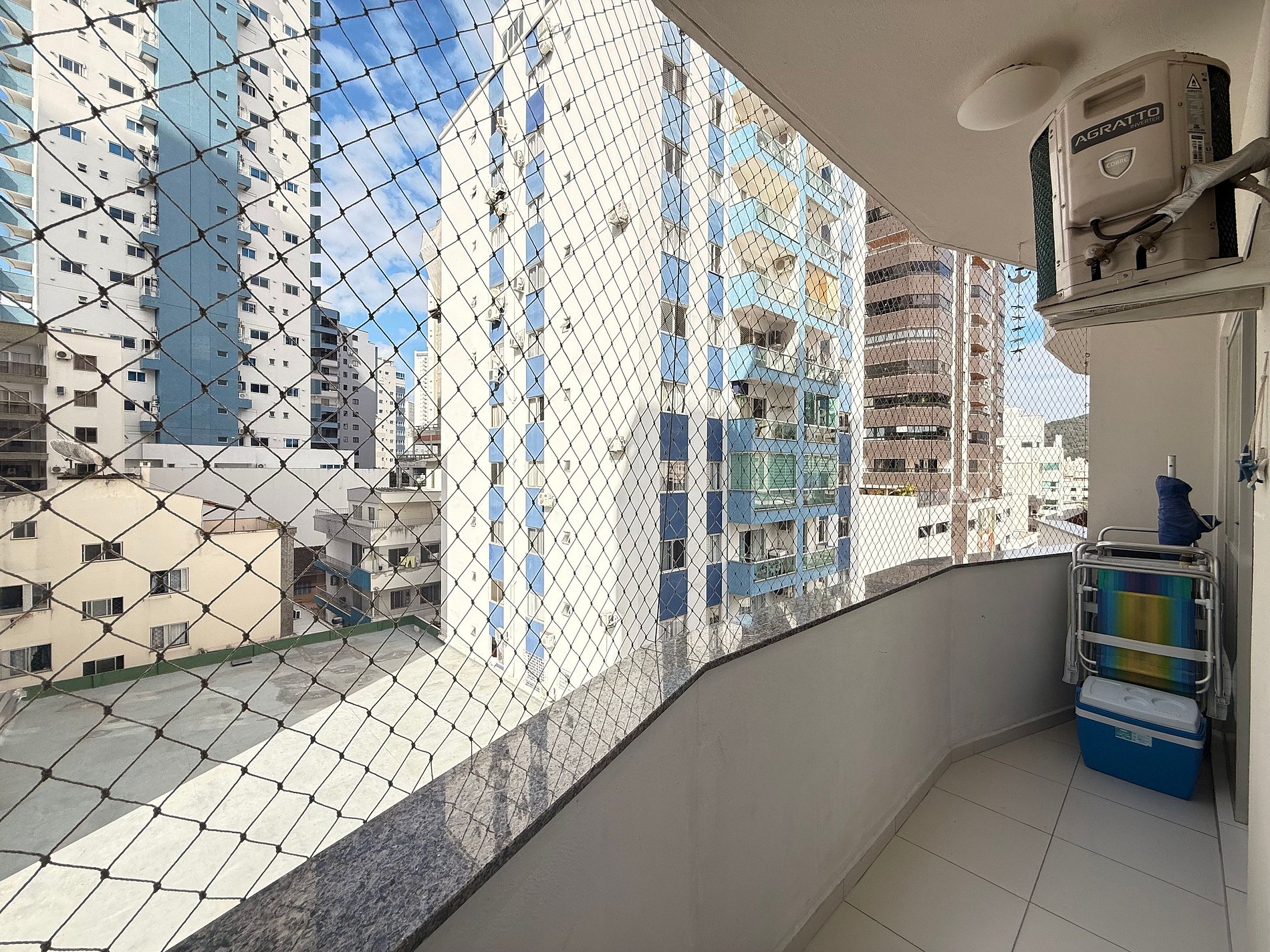 - Sacada com telas de proteção, ideal para quem viaja com crianças.