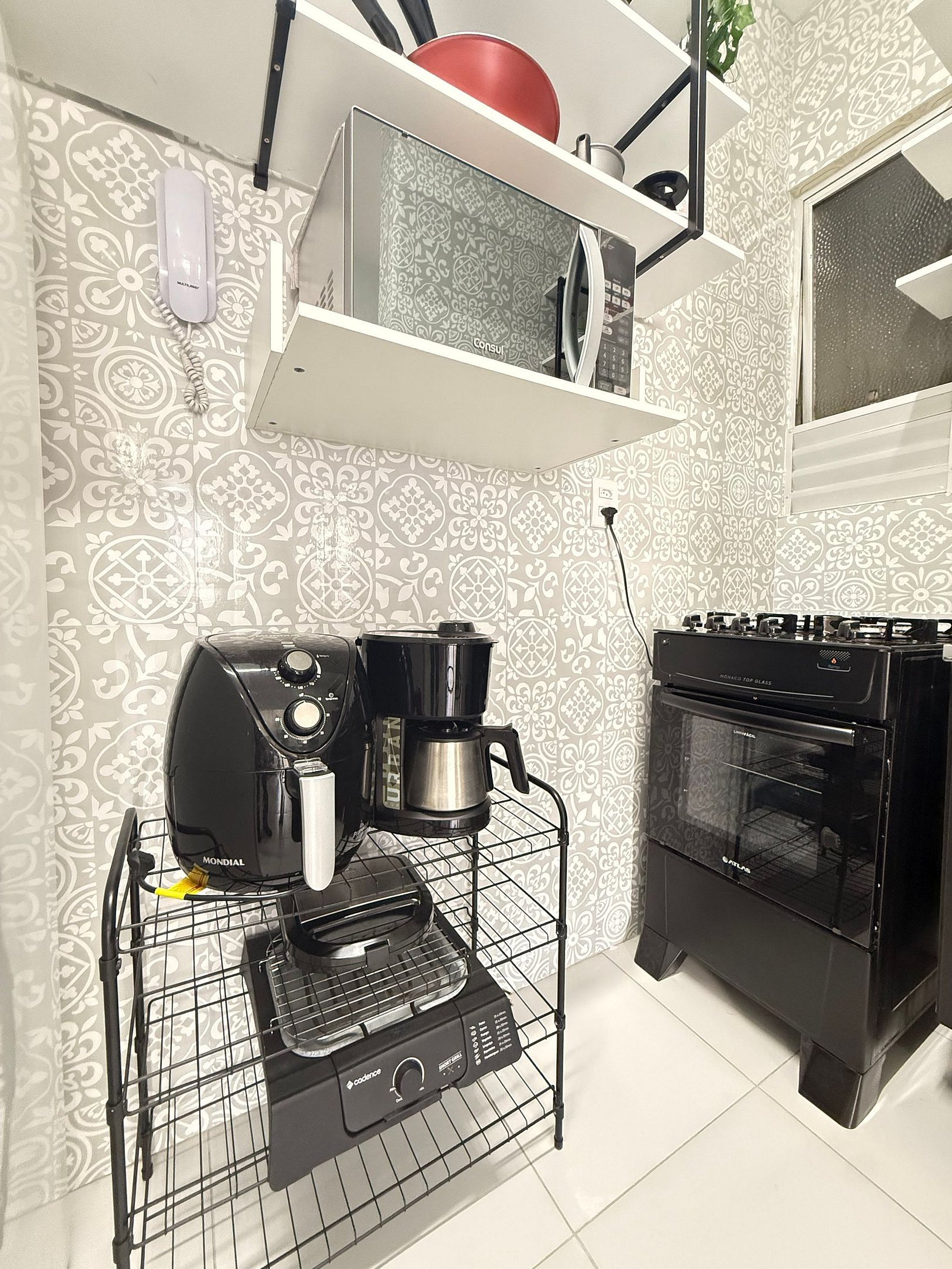 - Airfryer, liquidificador, sanduicheira, grill, fogão e diversos utensílios e travessas.