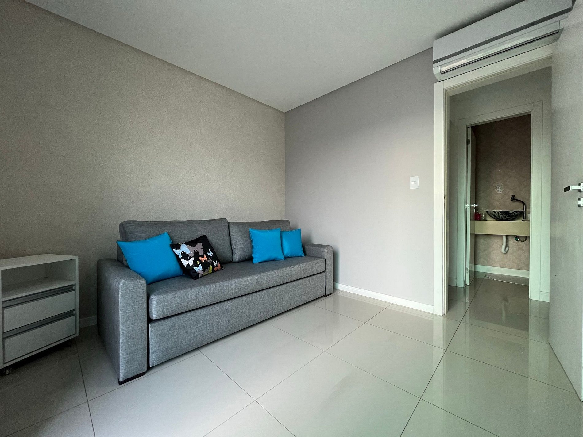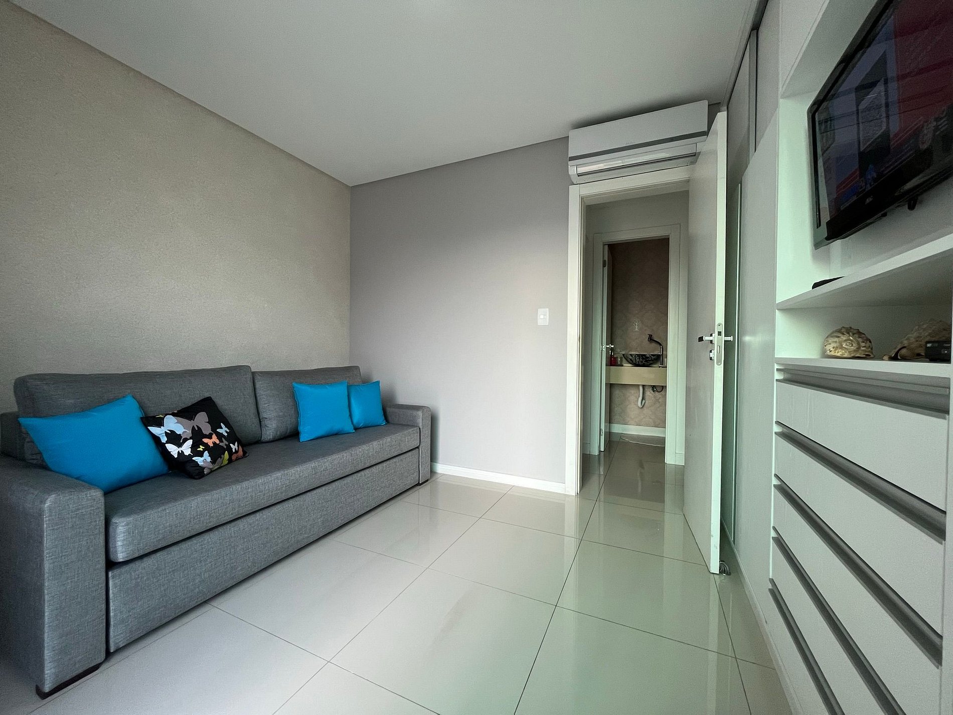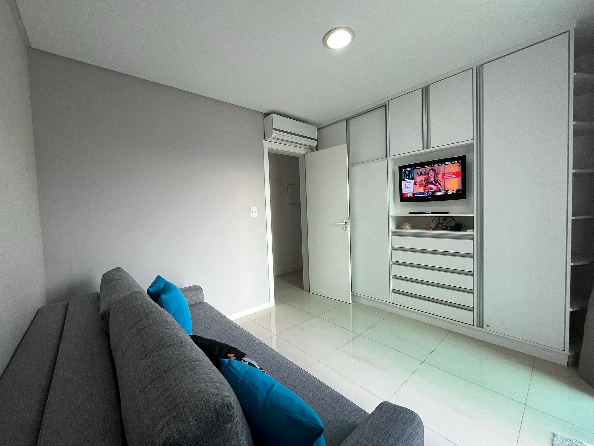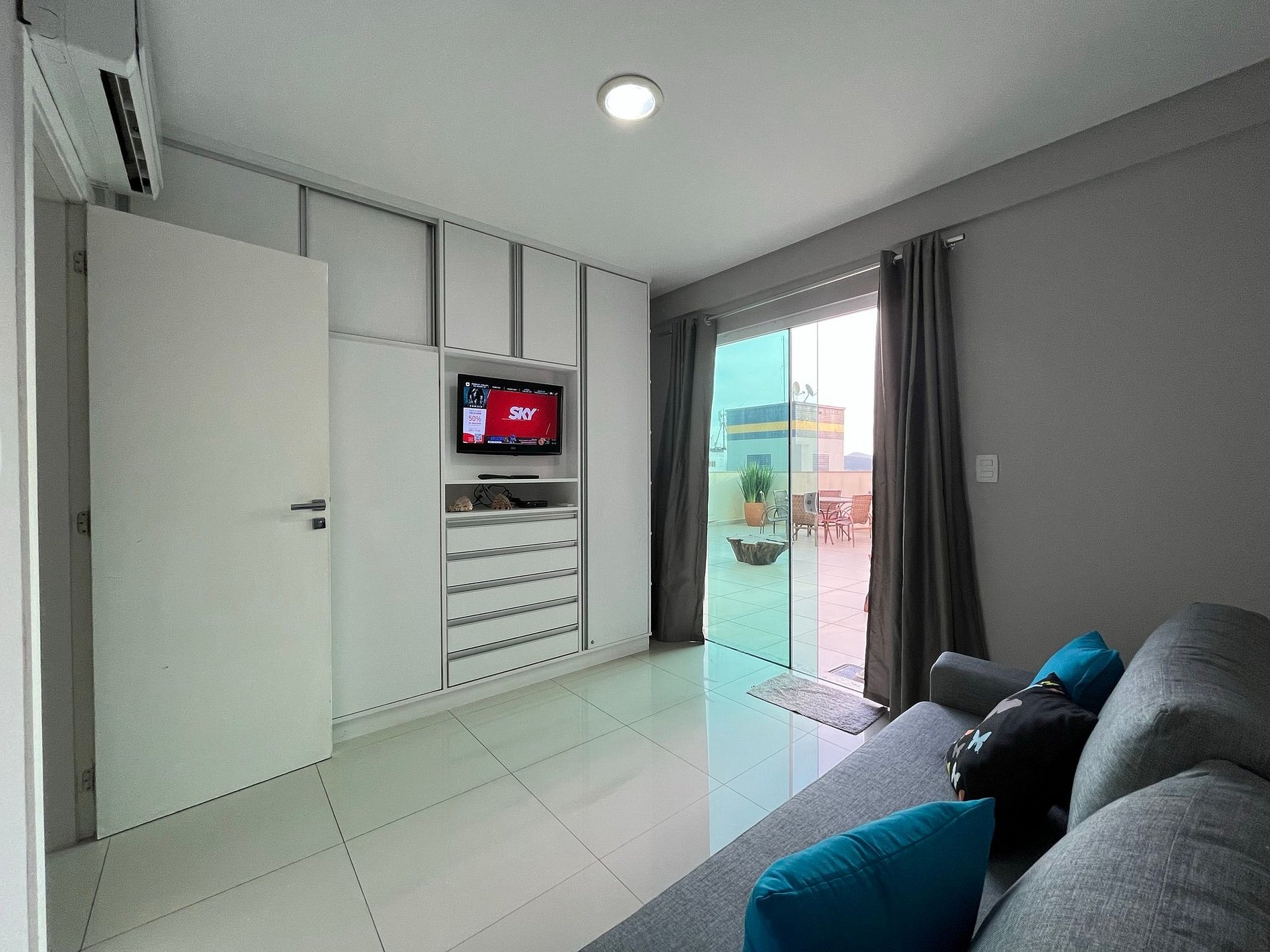 - Sala com sofá grande e confortável com assento retrátil e ar condicionado split