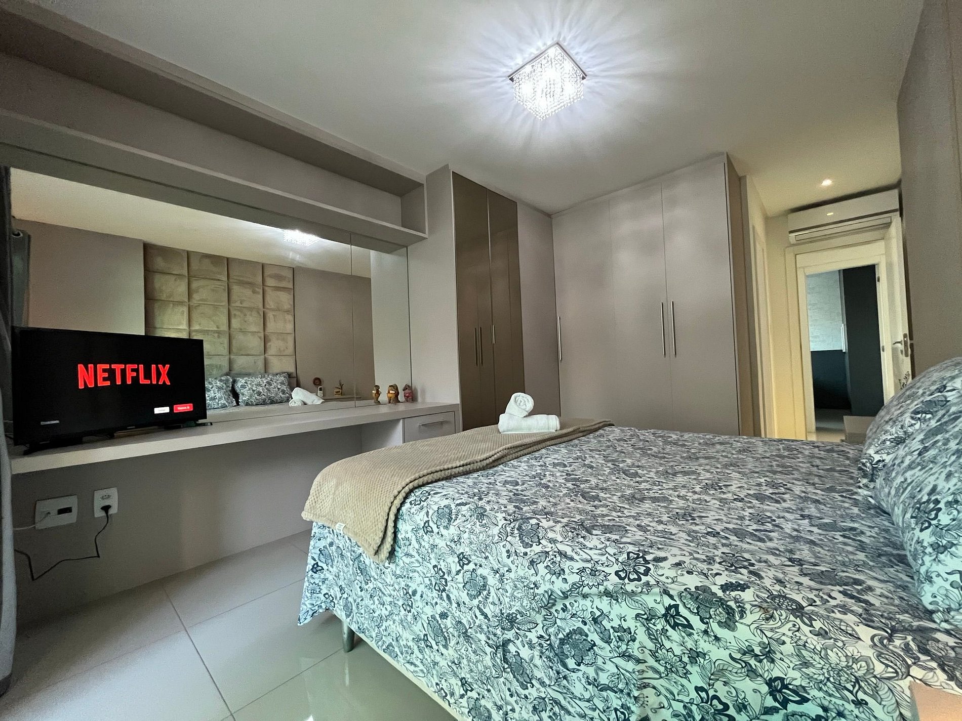 - Composto por 3 quartos sendo 1 suíte todos com ar condicionado e blackout