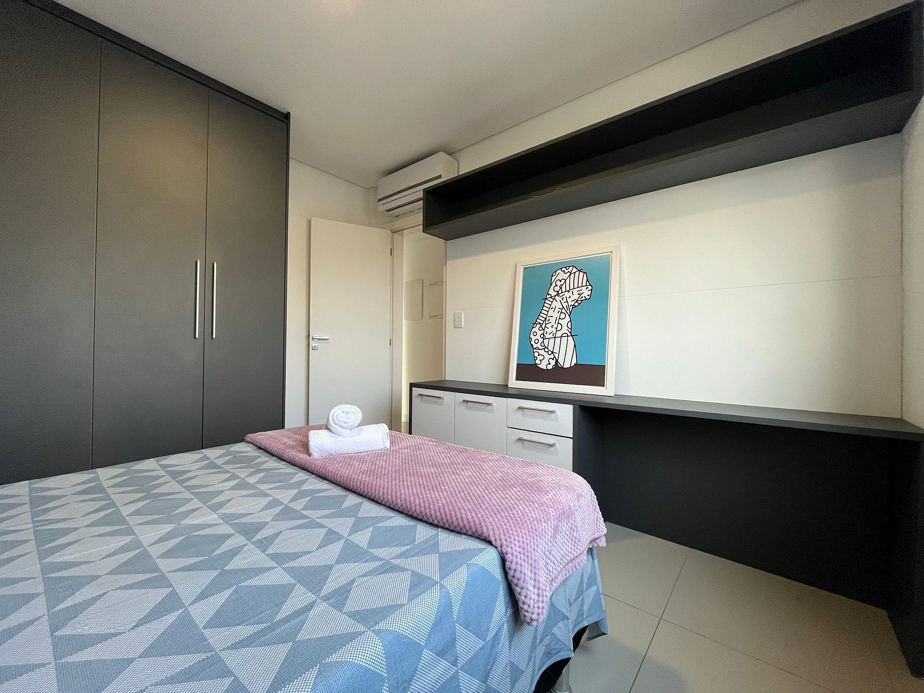 - QUARTO 2: Cama de casal com ar condicionado Split, TV, bancada para computador e guarda roupas