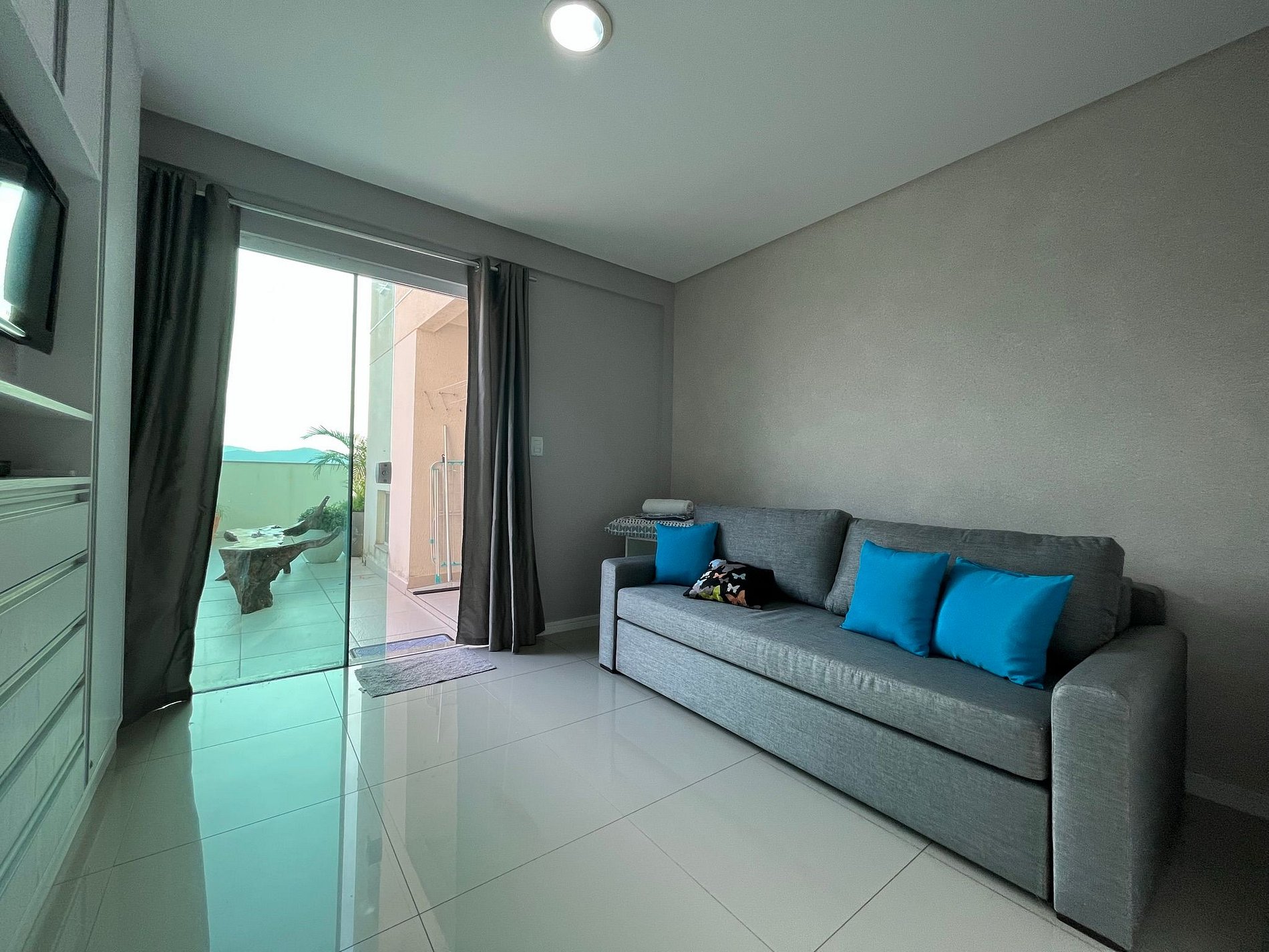 - QUARTO 3: É uma segunda sala com TV com canais SKY, com um sofá cama super confortável para solteiro ou até um casal, tem porta com tranca, guarda roupa e ar condicionado.