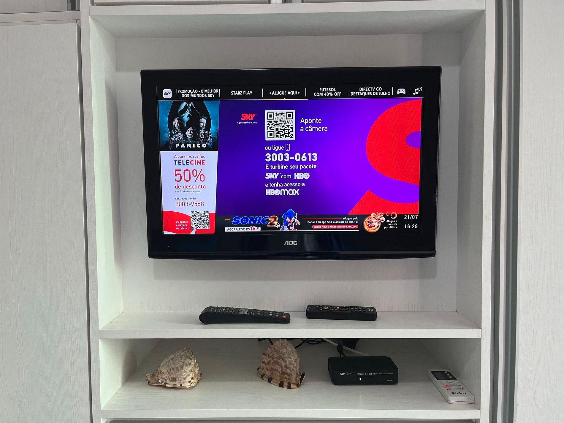 - TV 55" Smart com canais SKY e app como Netflix, Globoplay, Amazon Prime (necessário conectar com a conta própria)