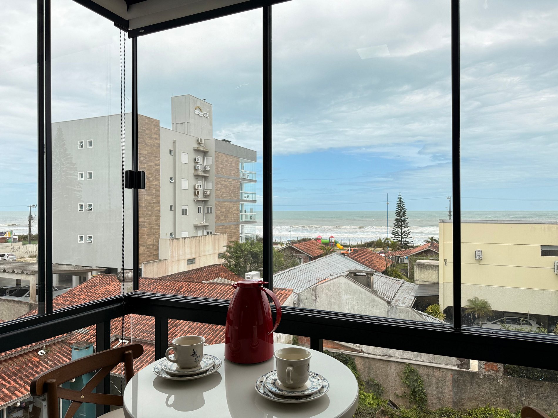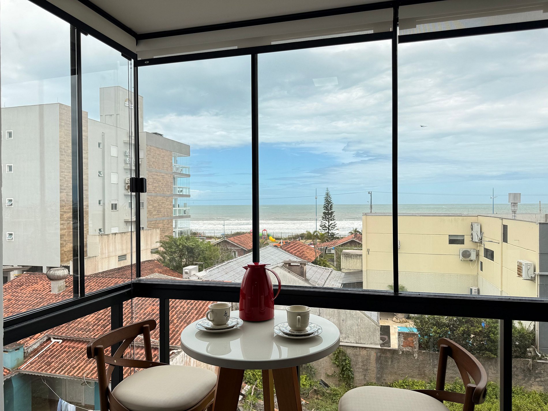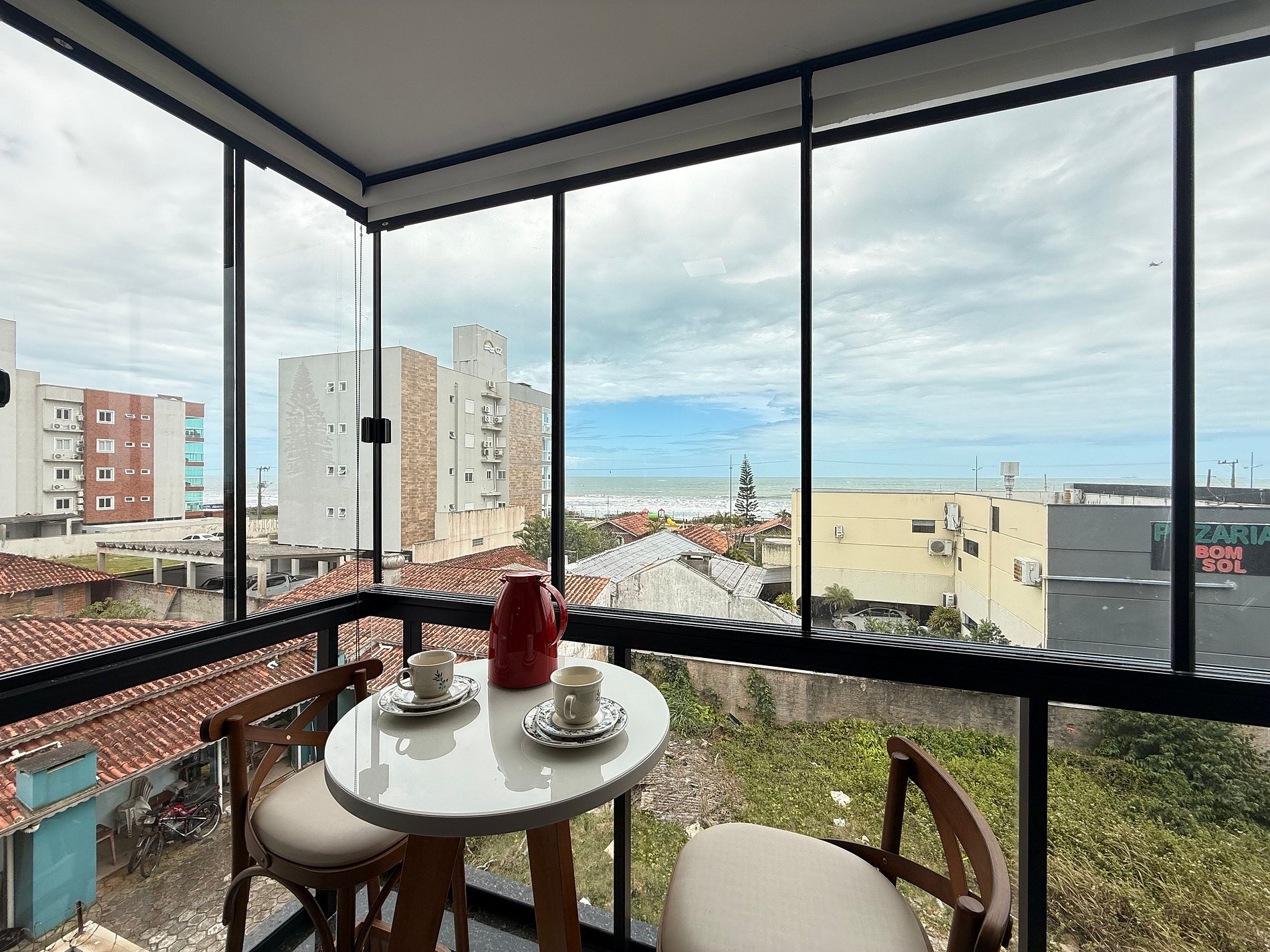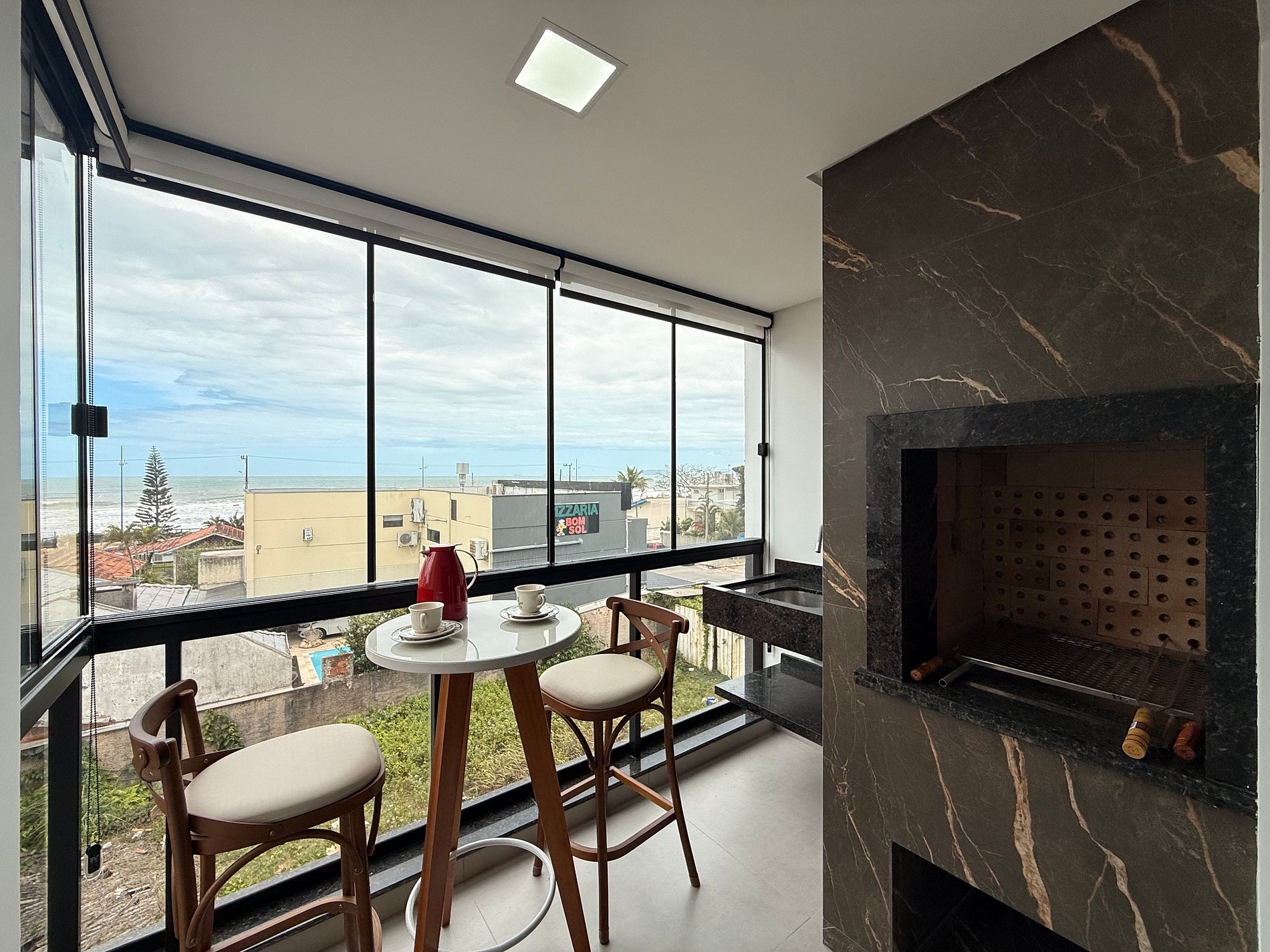 - Espaço aconchegante com vista para o mar, ideal para momentos especiais.