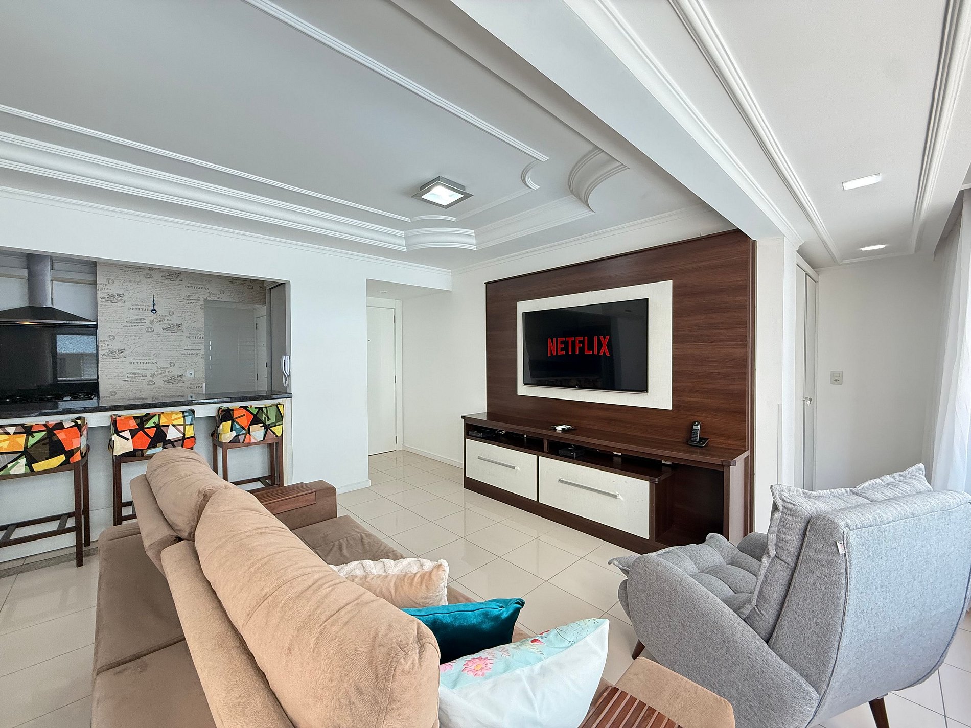 O apartamento foi projetado para atender famílias, casais ou pequenos grupos com o máximo de conforto:
