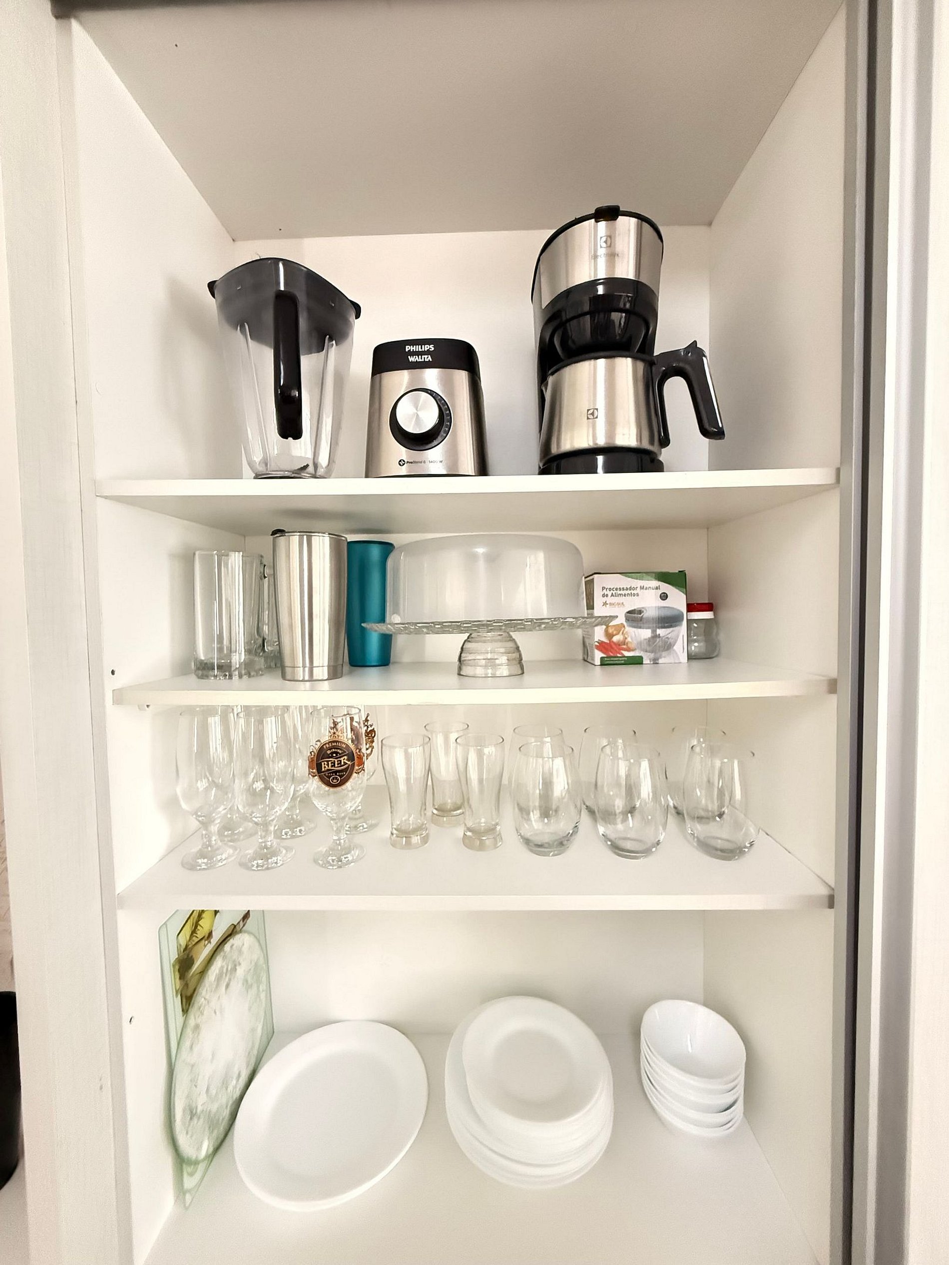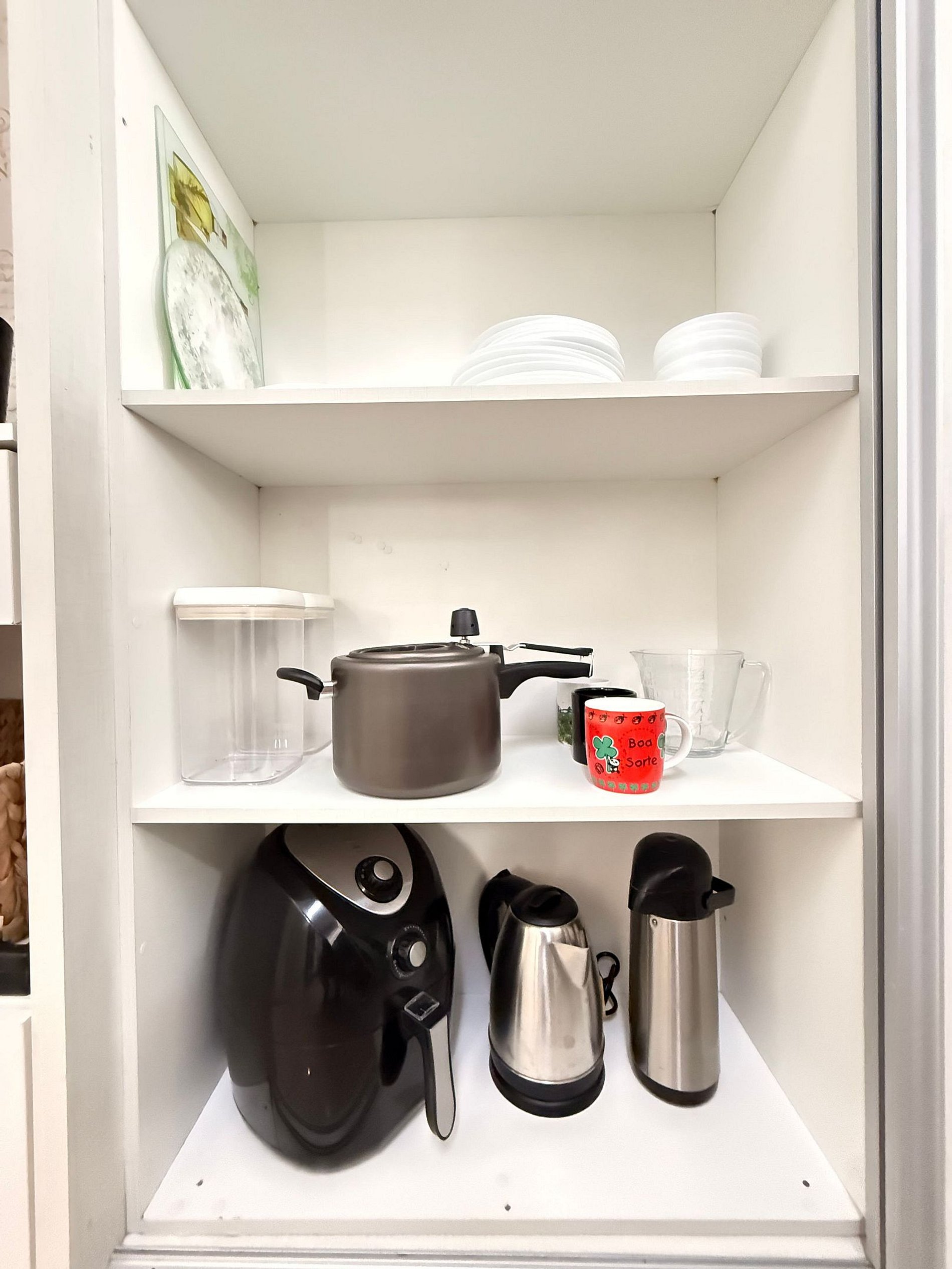 - Geladeira duplex, cooktop, forno elétrico, airfryer, cafeteira elétrica, liquidificador e etc.