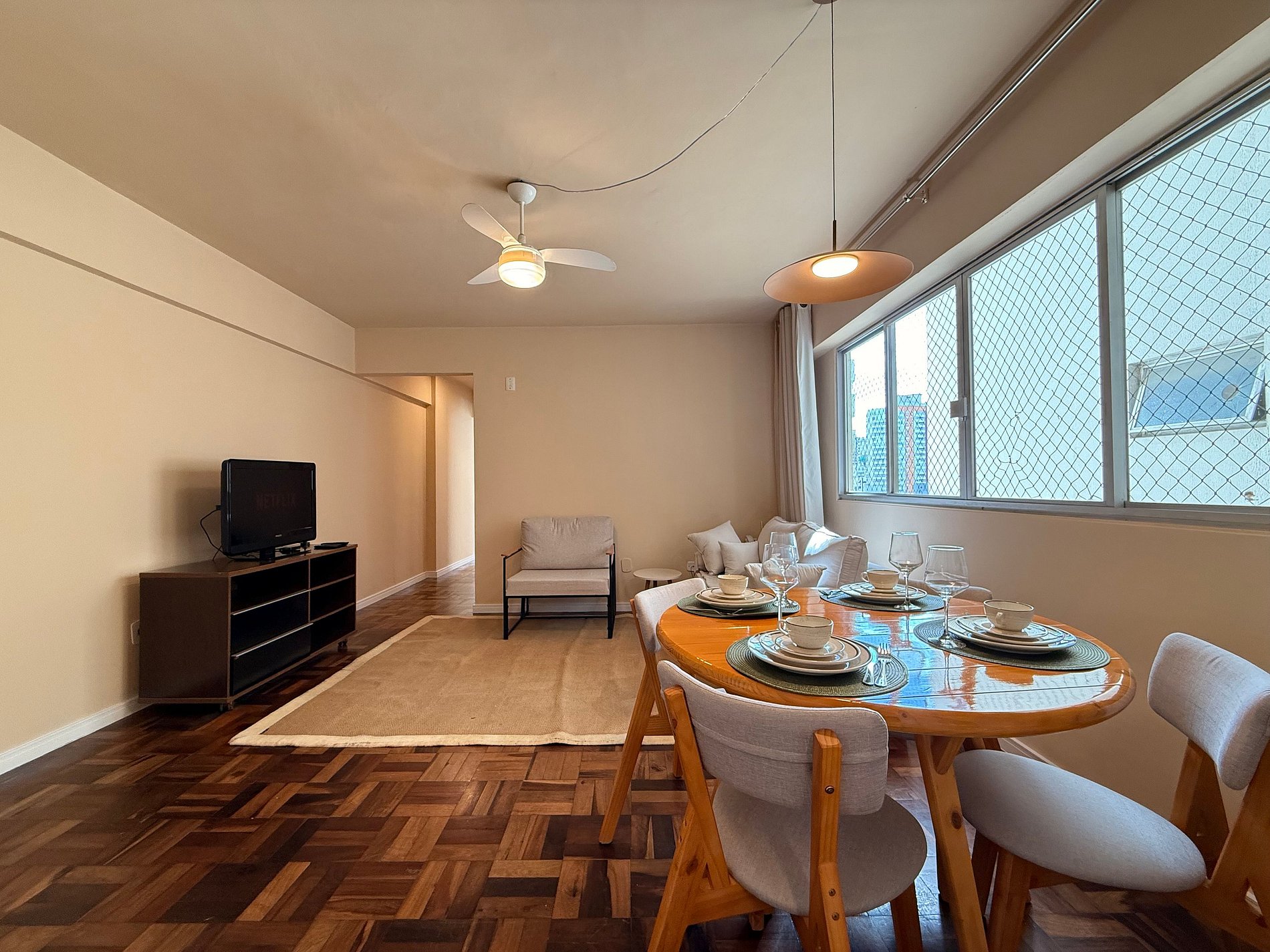 - Todas as janelas possuem telas de proteção, garantindo segurança para famílias com crianças.