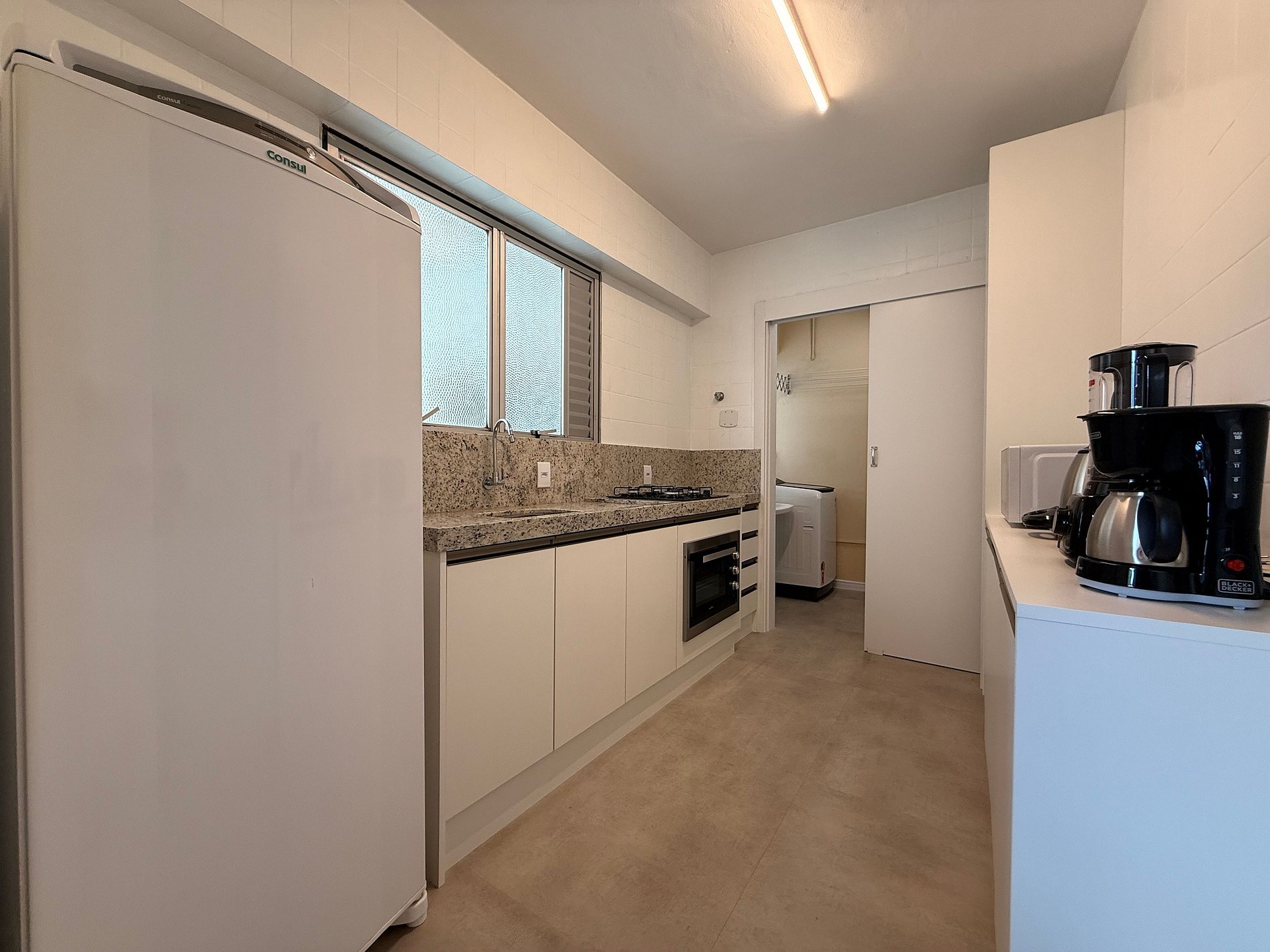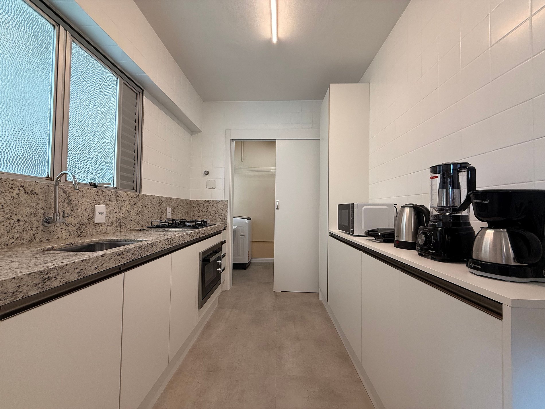 - Cozinha completa, equipada com geladeira, cooktop, micro-ondas, cafeteira elétrica, liquidificador e utensílios completos para preparar qualquer refeição.