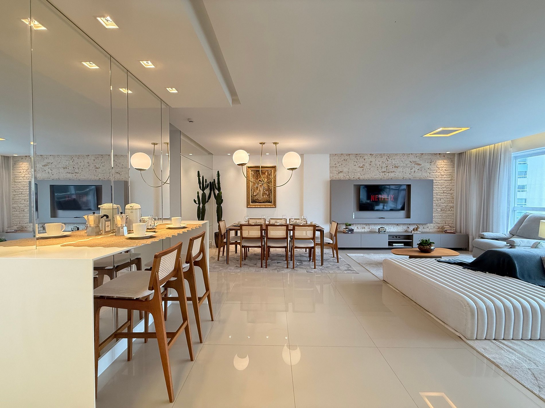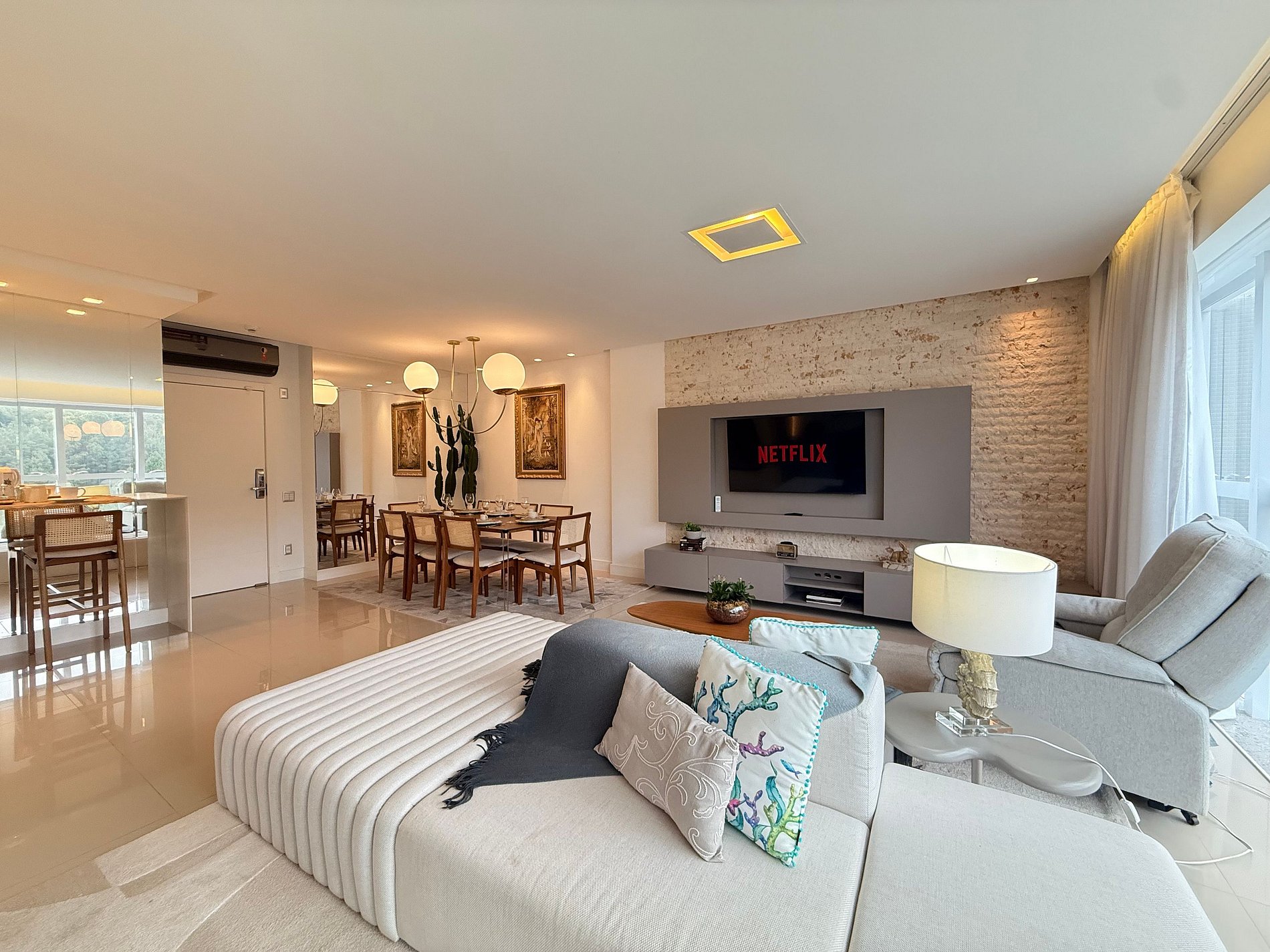 Viva o luxo no ED Cartier, em Balneário Camboriú! Apartamento de alto padrão com 3 suítes completas e 2 vagas de garagem exclusivas. Desfrute da cozinha completa, perfeita para estadias curtas ou longas. Relaxe na sala ampla com Smart TV de 60", sofá moderno e mesa de jantar integrada para 8 pessoas. Localização privilegiada: a poucos passos da icônica Roda Gigante, um dos principais pontos da cidade. Próximo à Praia Brava e com fácil acesso a Itajaí. Sua estadia premium espera por você!