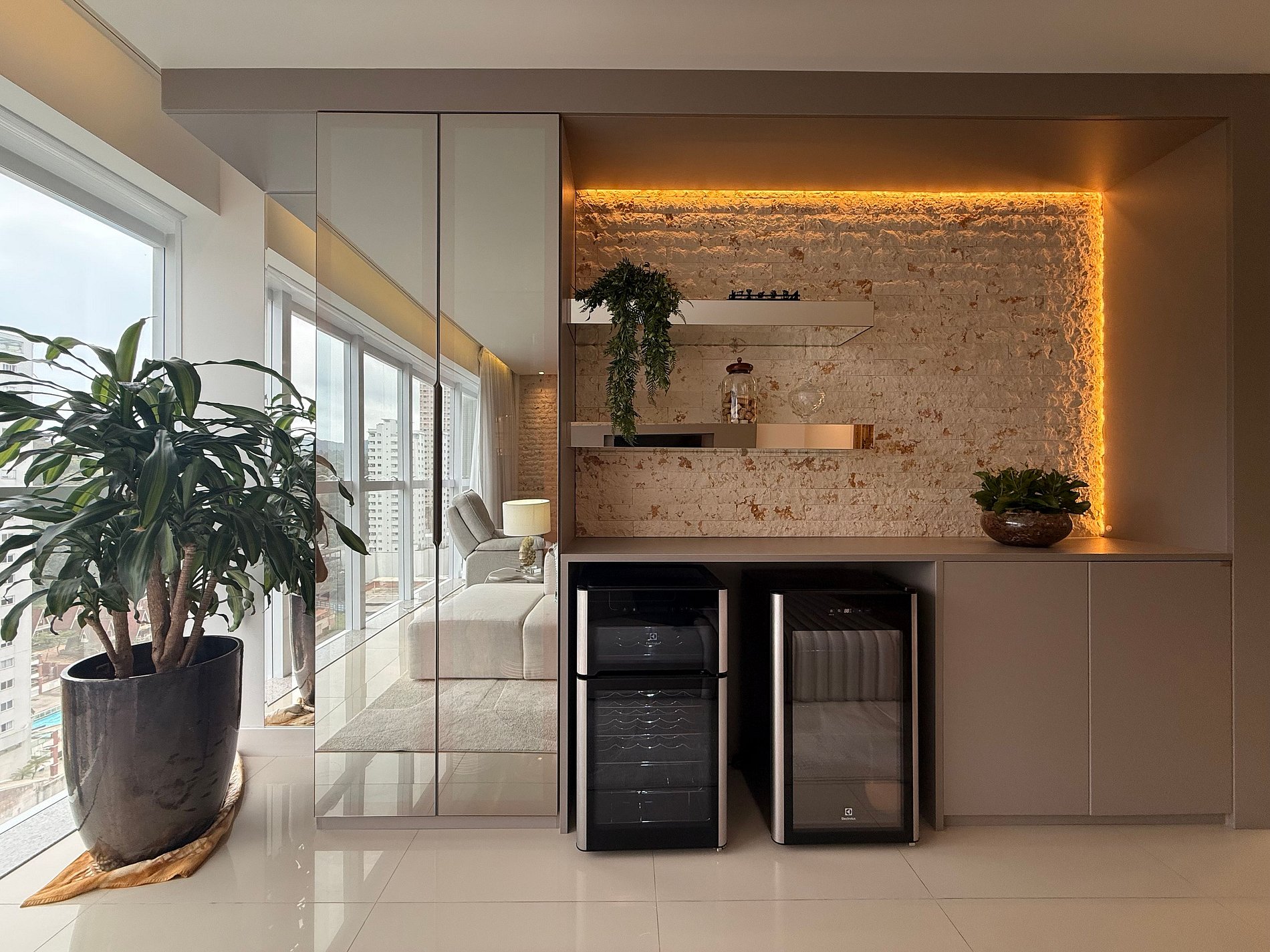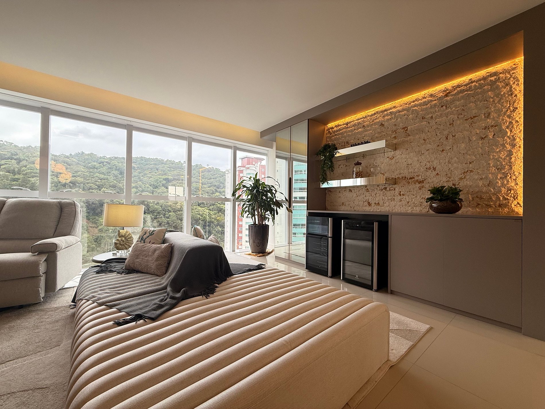 Área de estar com sofá/cadeira