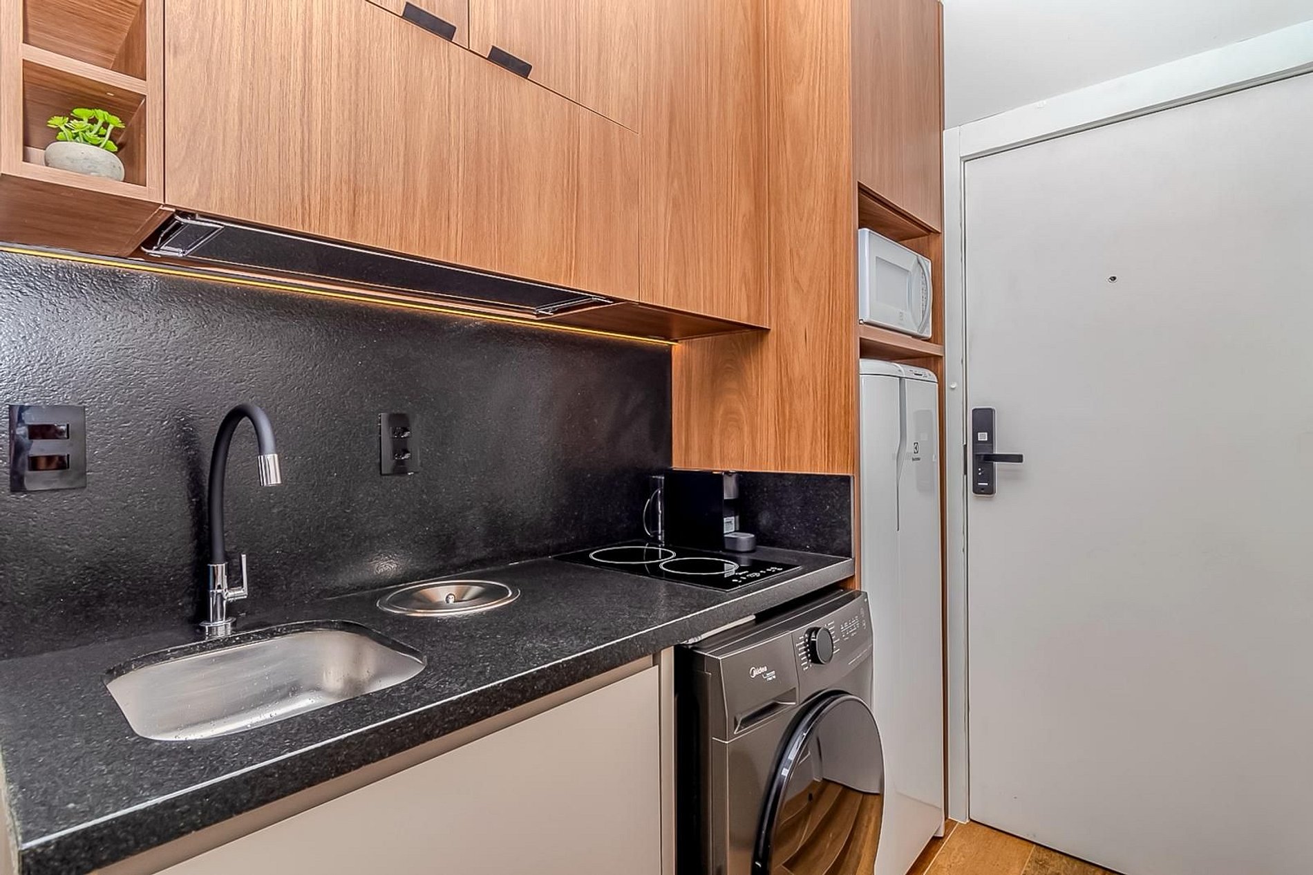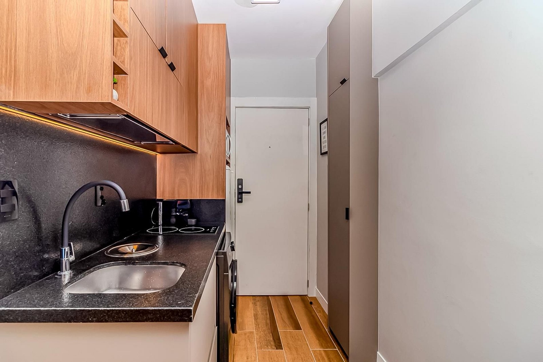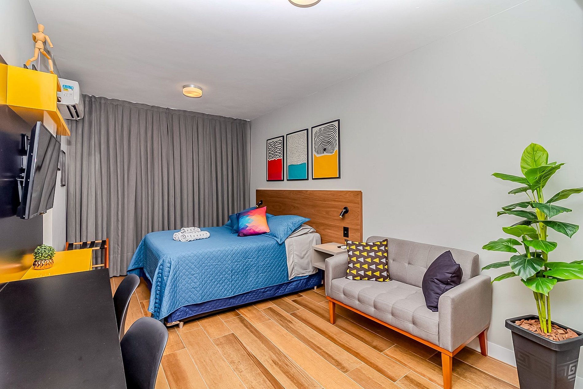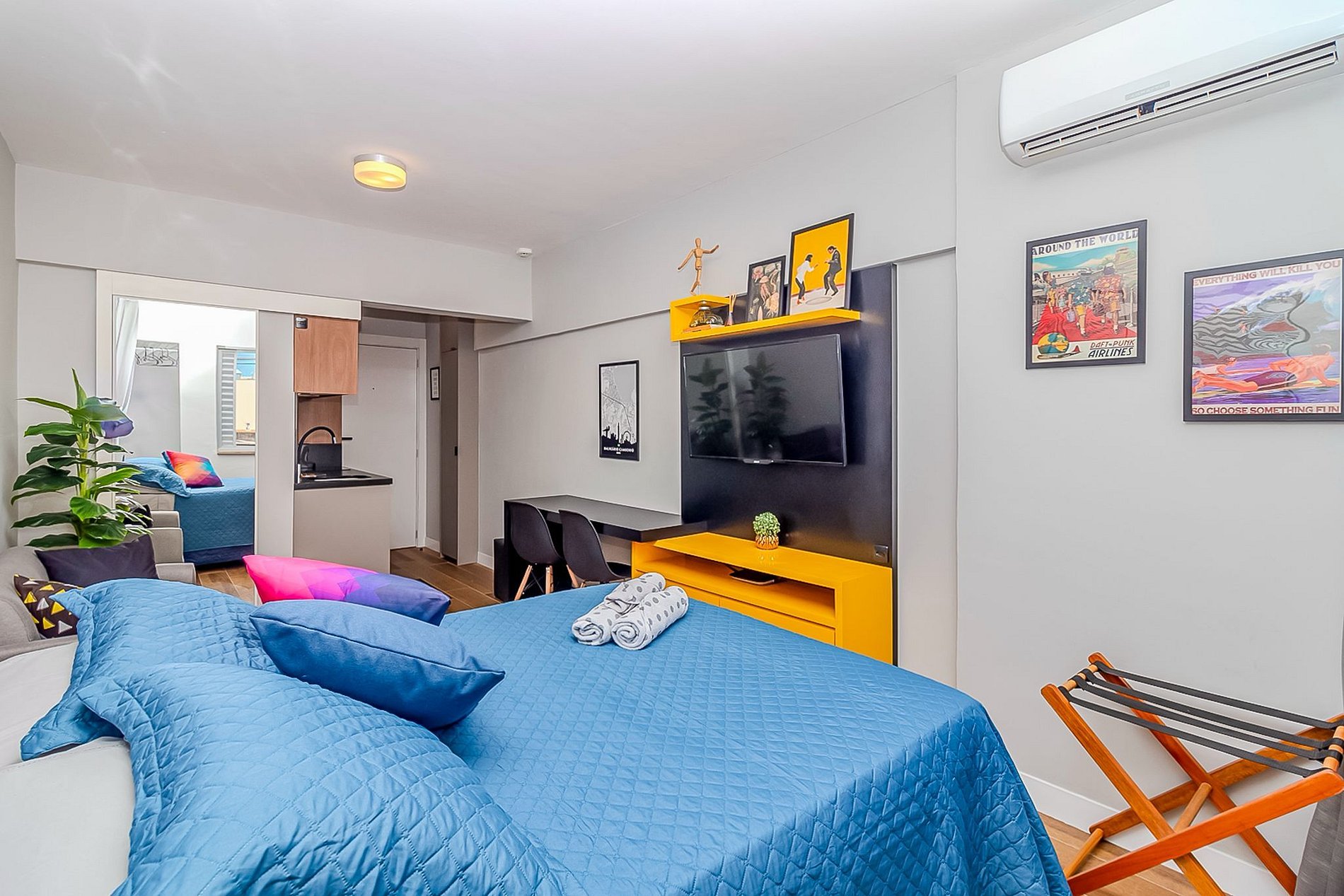 O Studio foi 100% reformado e planejado para otimizar cada metro quadrado, garantindo uma estadia aconchegante e funcional para casais ou pequenas famílias: