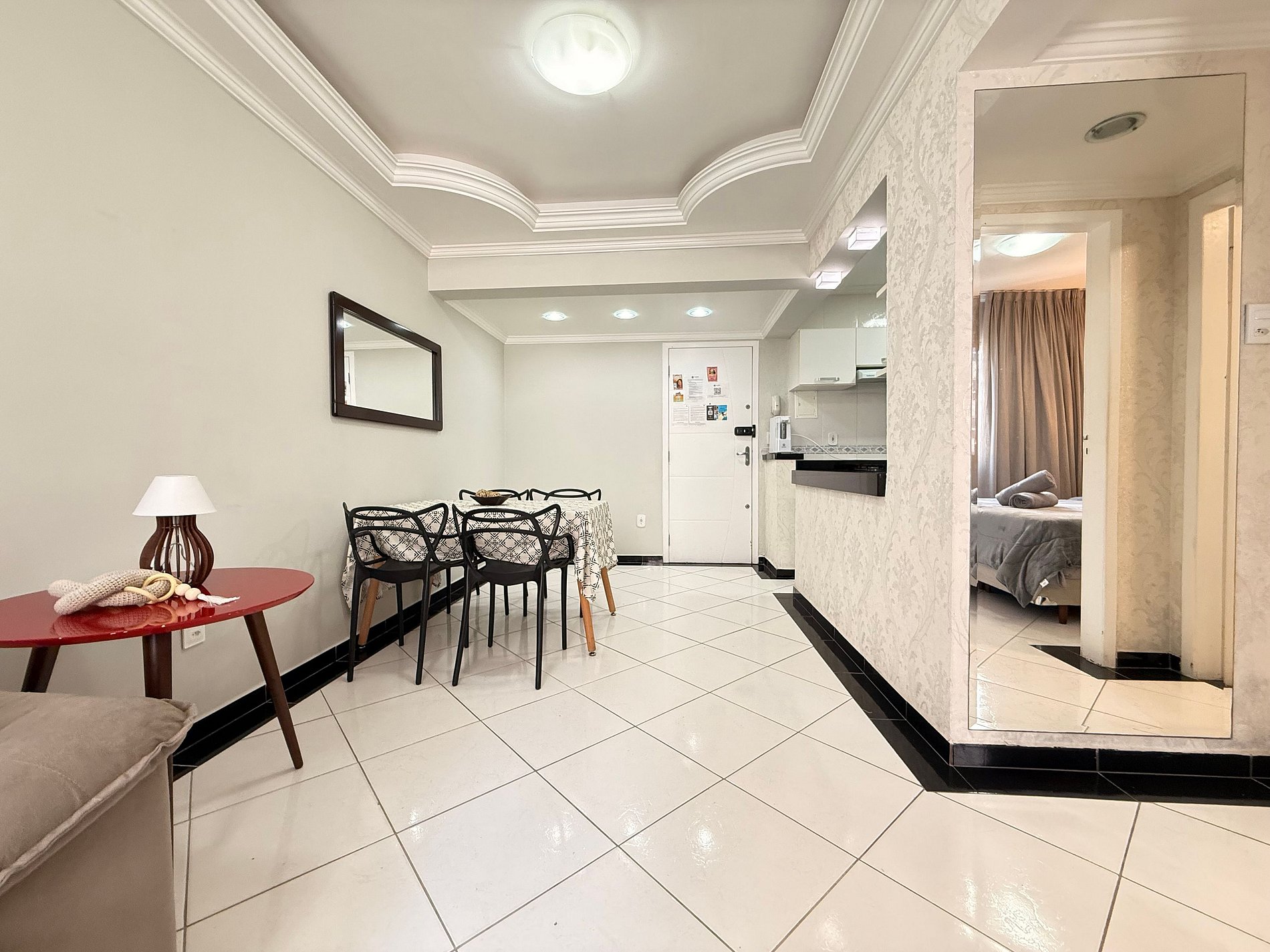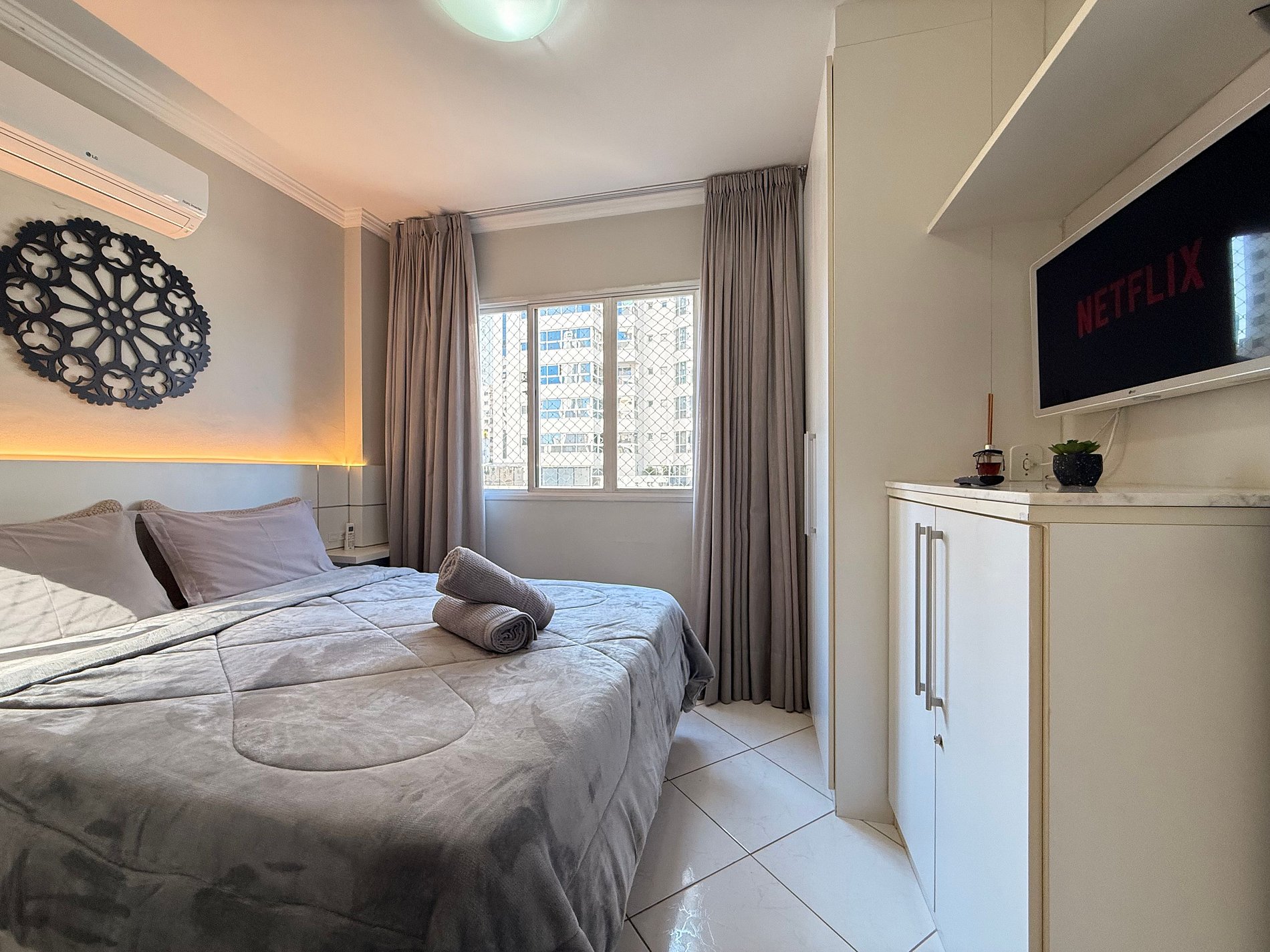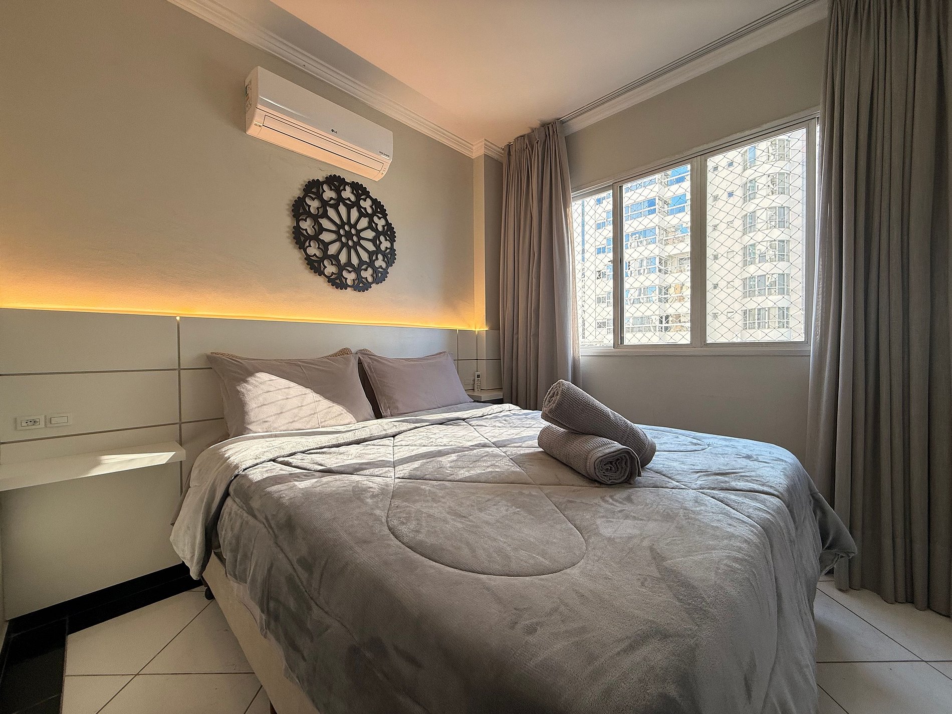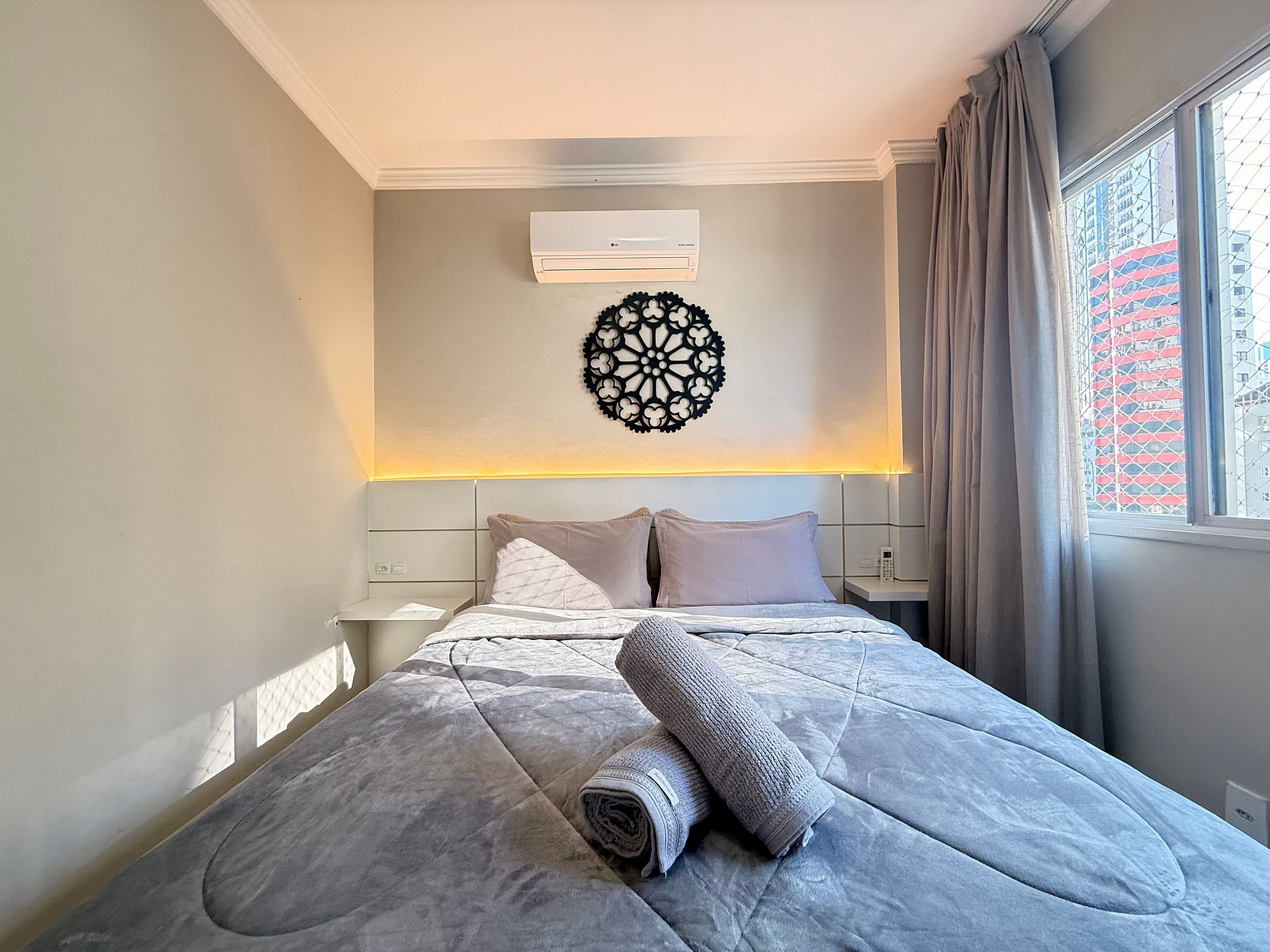 Ótimo apartamento de 1 Quarto com acesso direto para a praia, localizado no centro de Balneário Camboriú com supermercado, restaurantes, cafeterias, farmácias, tudo bem próximo, ideal para quem gosta de fazer tudo a pé. Muito bem equipado, confortável e seguro, telas de proteção nas janelas quarto e sala. Fornecemos roupas de cama e banho, na cozinha irá encontrar tudo que precisa para curtas e longas estadias. Quarto e sala com ar condicionado. Garagem e Internet Rápida para Home Office.