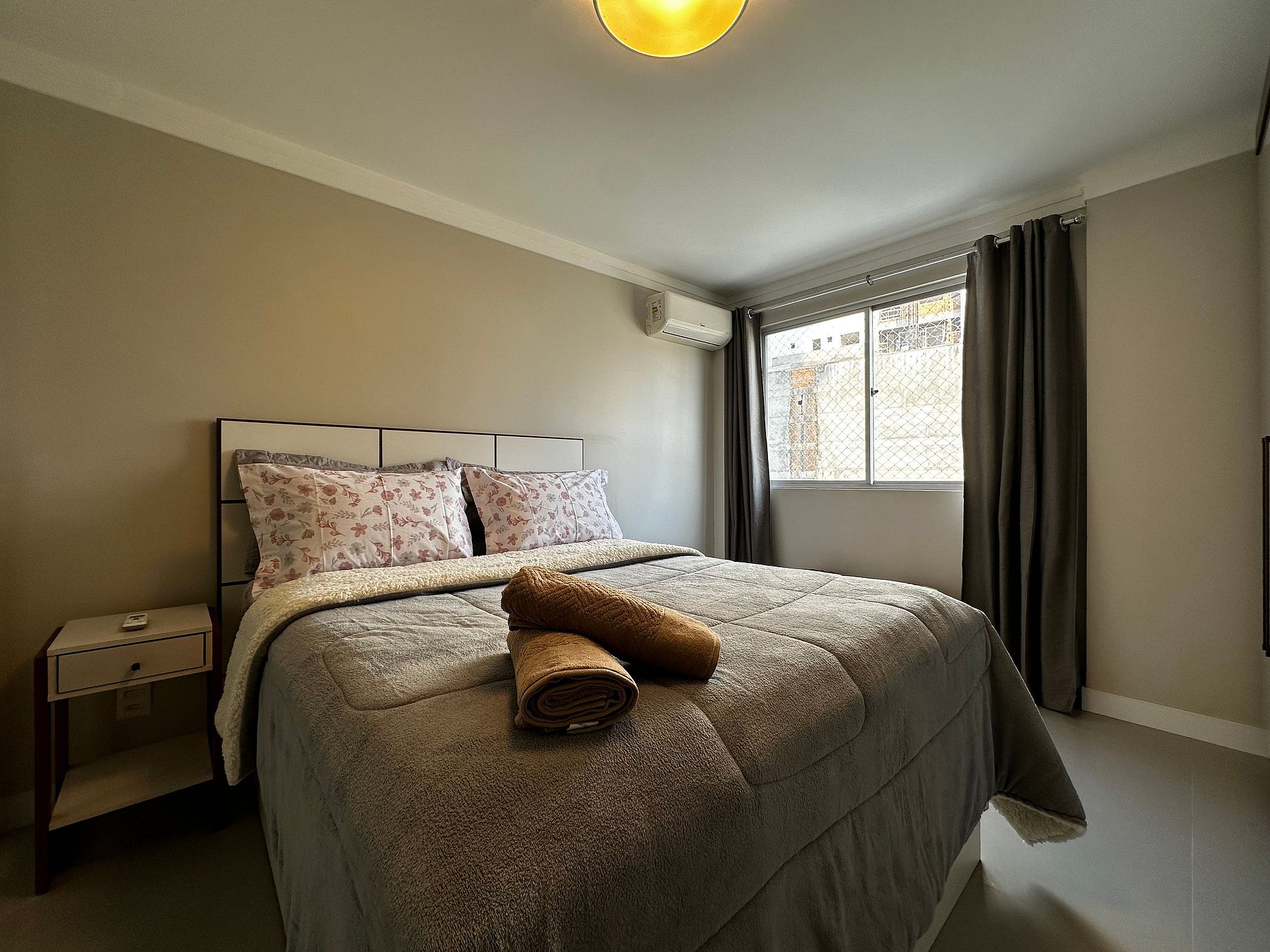 - QUARTO: Cama com colchão de molas ensacadas tamanho padrão, ar condicionado split e guarda roupas grande
