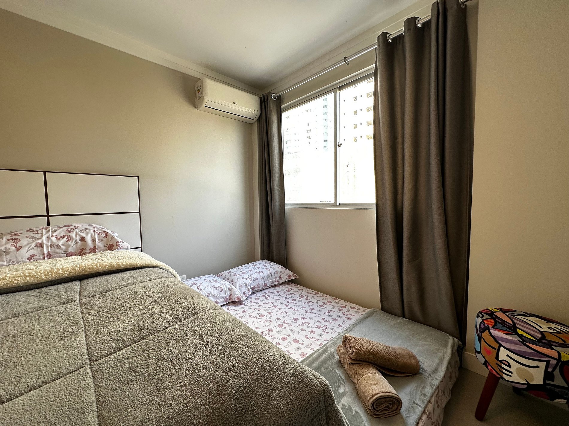 - Temos um colchão extra de casal, tem espaço no quarto para acomodar 4 hóspedes