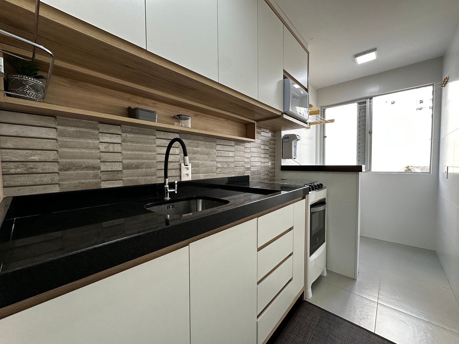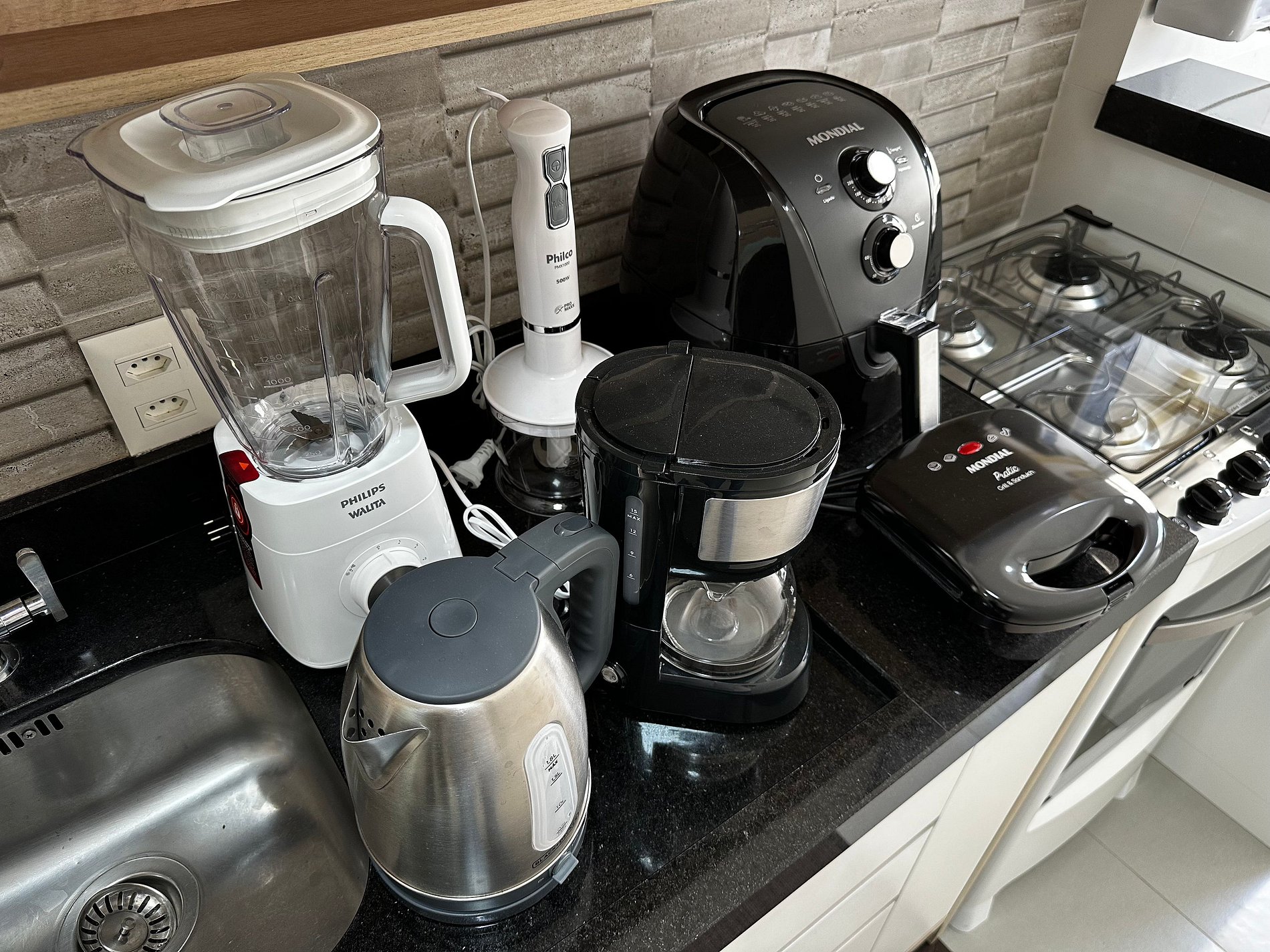 - Cozinha muito bem equipada com tudo que precisa para curtas e longas estadia, geladeira, filtro de água potável, microondas, cafeteira elétrica, liquidificador, sanduicheira, airfryer, talheres e louças em geral.
