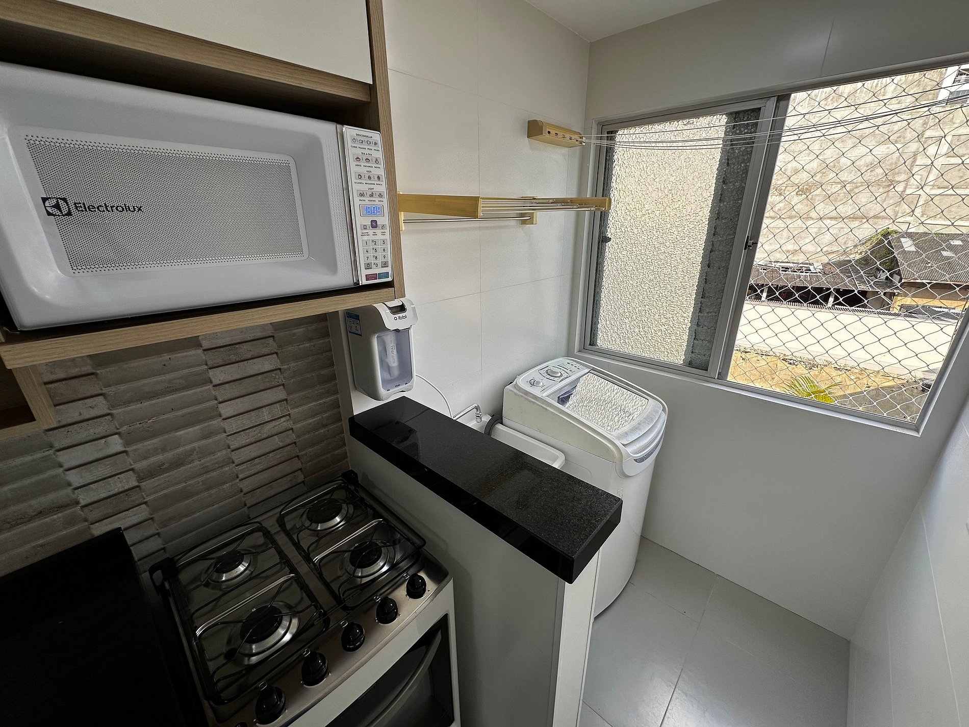 - Cozinha muito bem equipada com tudo que precisa para curtas e longas estadia, geladeira, filtro de água potável, microondas, cafeteira elétrica, liquidificador, sanduicheira, airfryer, talheres e louças em geral.
