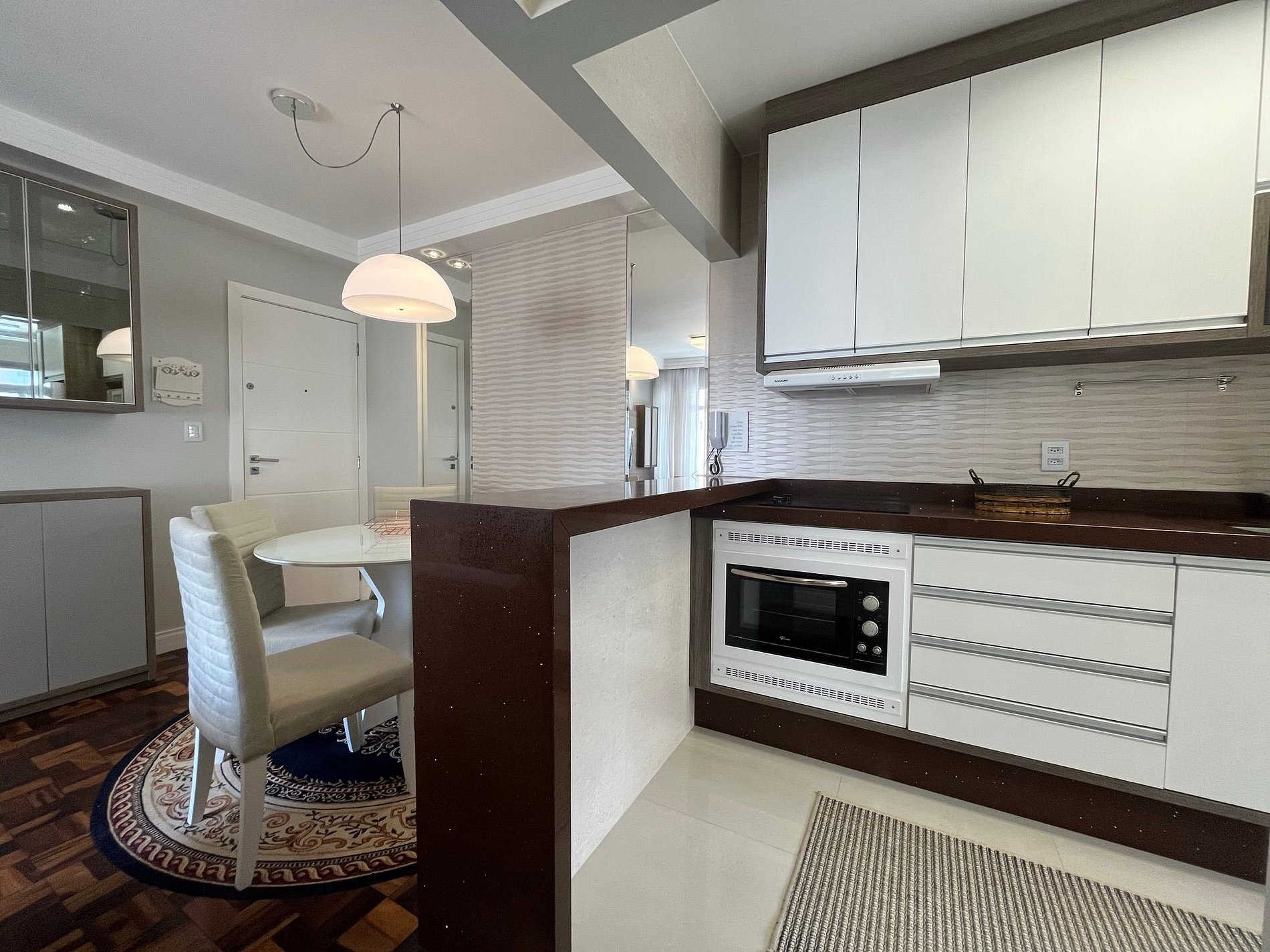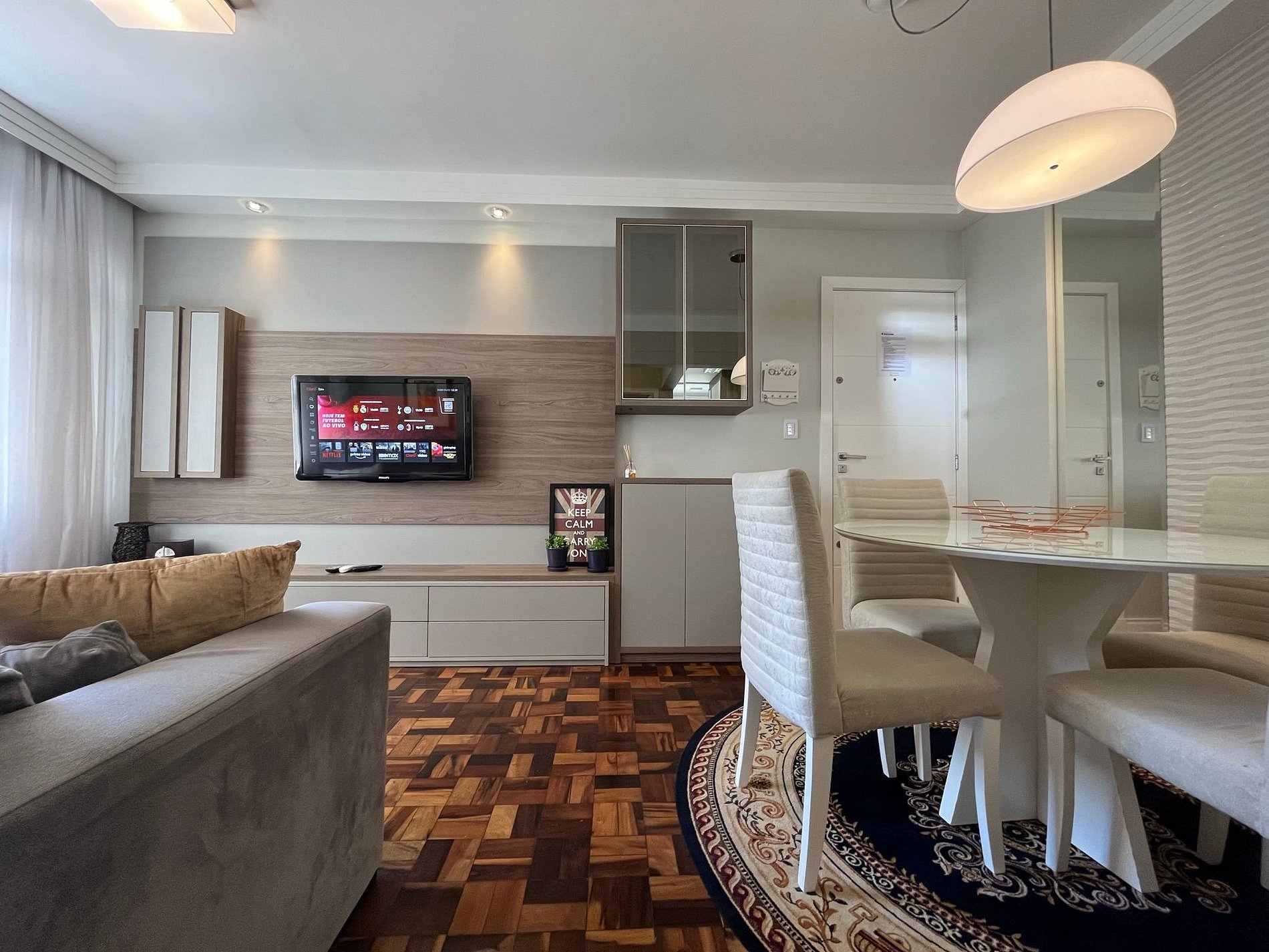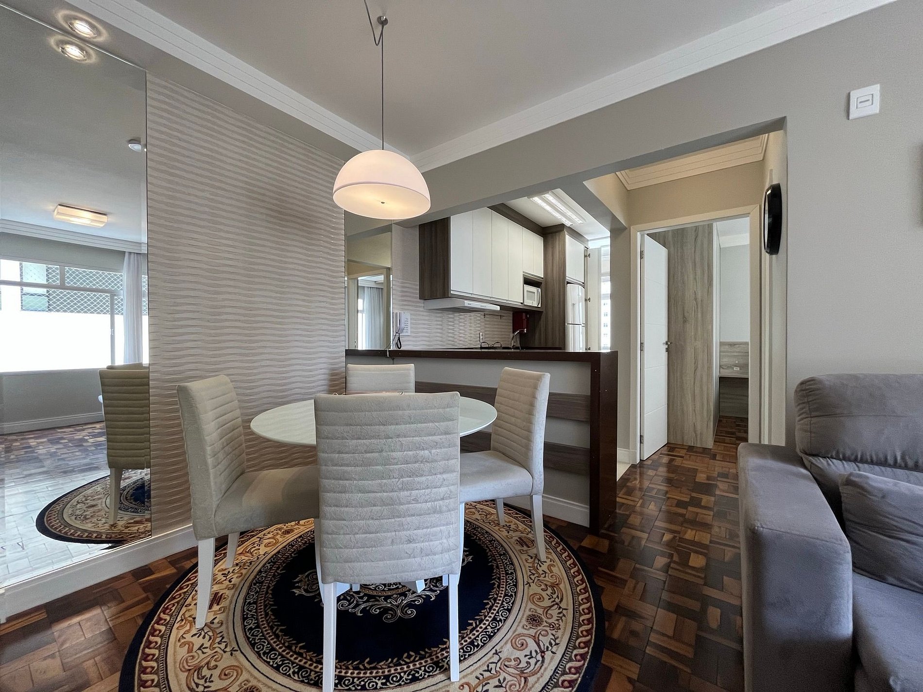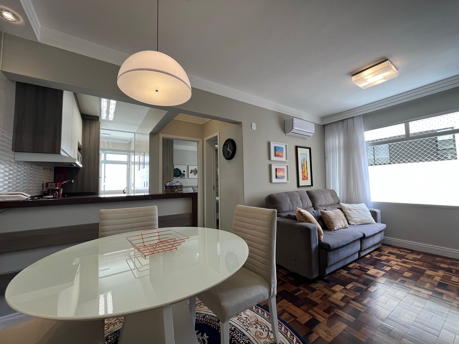 - Área de jantar integrada à sala com mesa redonda com 4 cadeiras para um excelente jantar em família