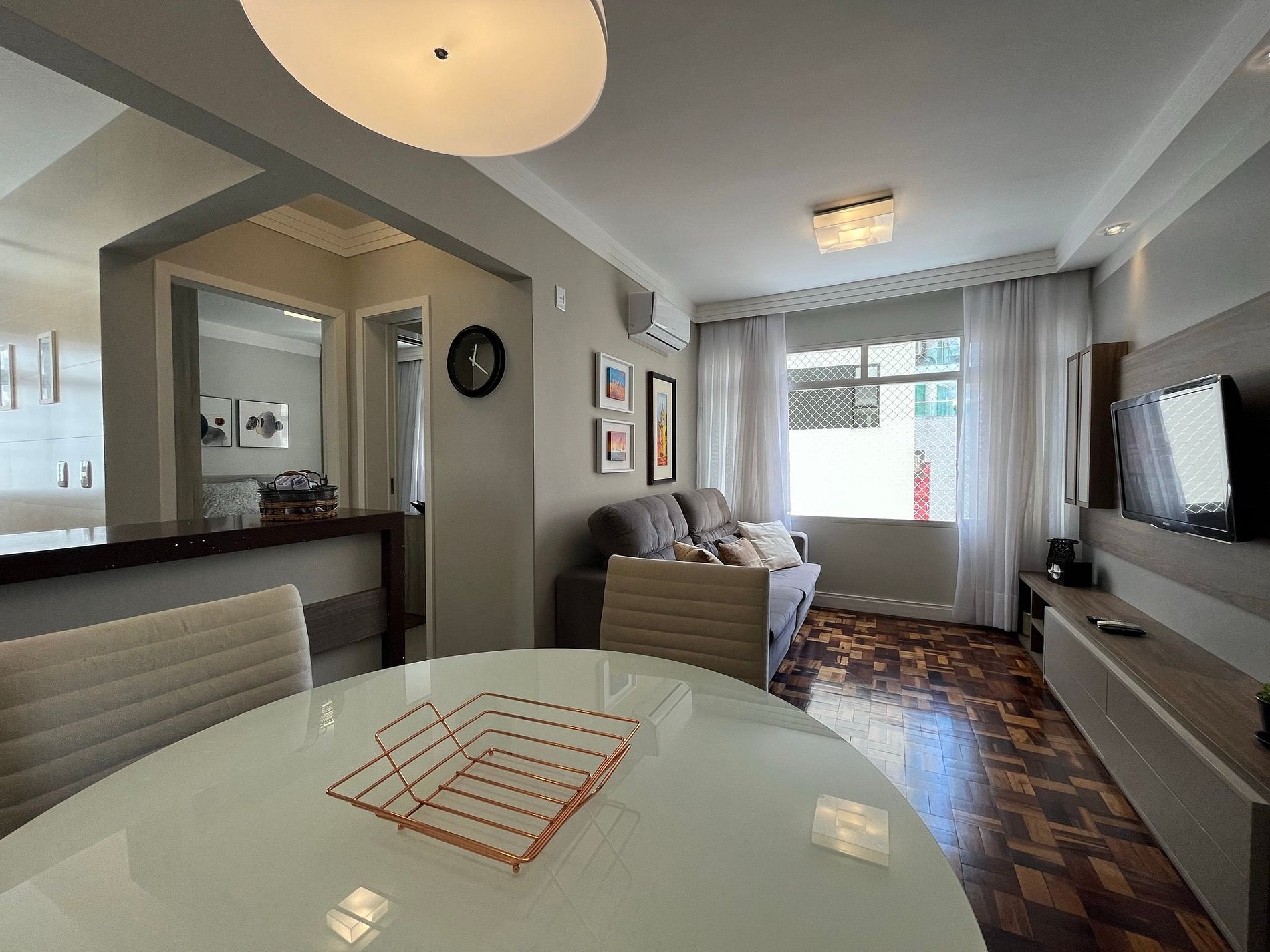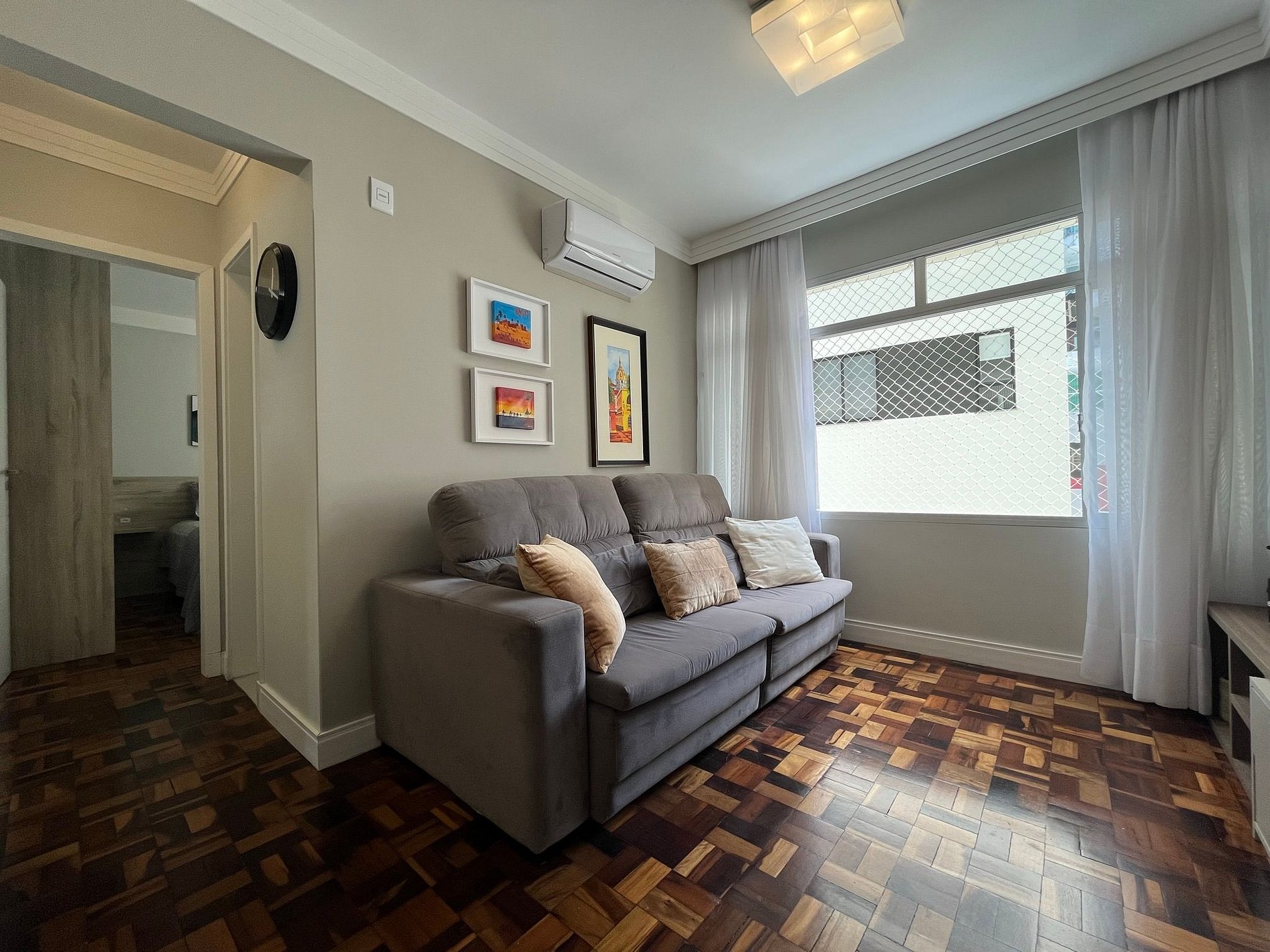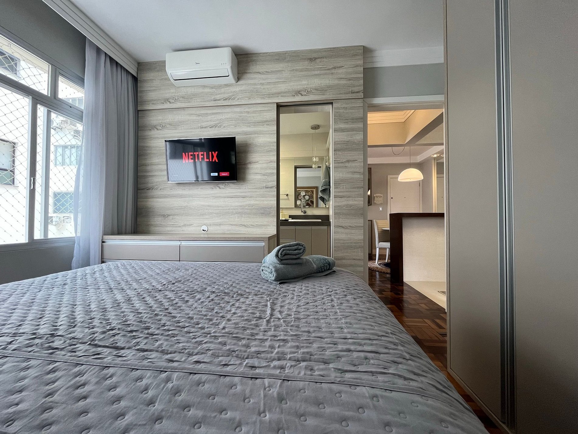 Lindo, completo e muito confortável apto de 1 quarto localizado na Av. Brasil no centro de Balneário Camboriú. Ele é todo reformado para uma ótima experiência para suas férias. Quarto com cama box, ar condicionado e TV Smart 32" e telas de proteção na janela. Fornecemos roupas de cama e banho para todos os hóspedes, cozinha muito bem equipada. A sala é arejada com tela de proteção e com ar condicionado 12 mil BTU para arejar todo o ambiente. TV com canais a cabo e Netflix. Garagem Privativa.