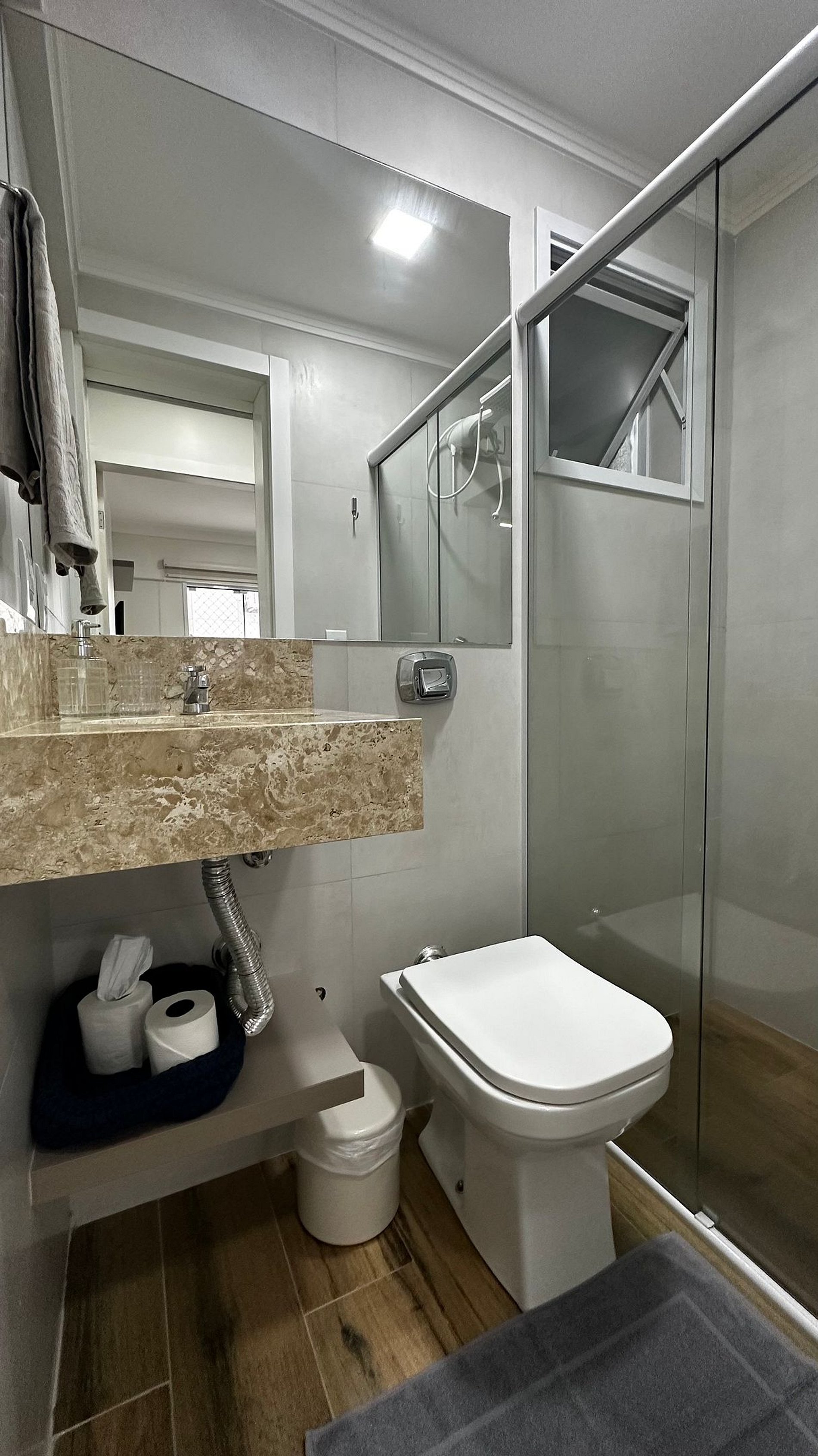 - Composto por 2 quartos sendo 1 suíte, todos com ar condicionado split novos