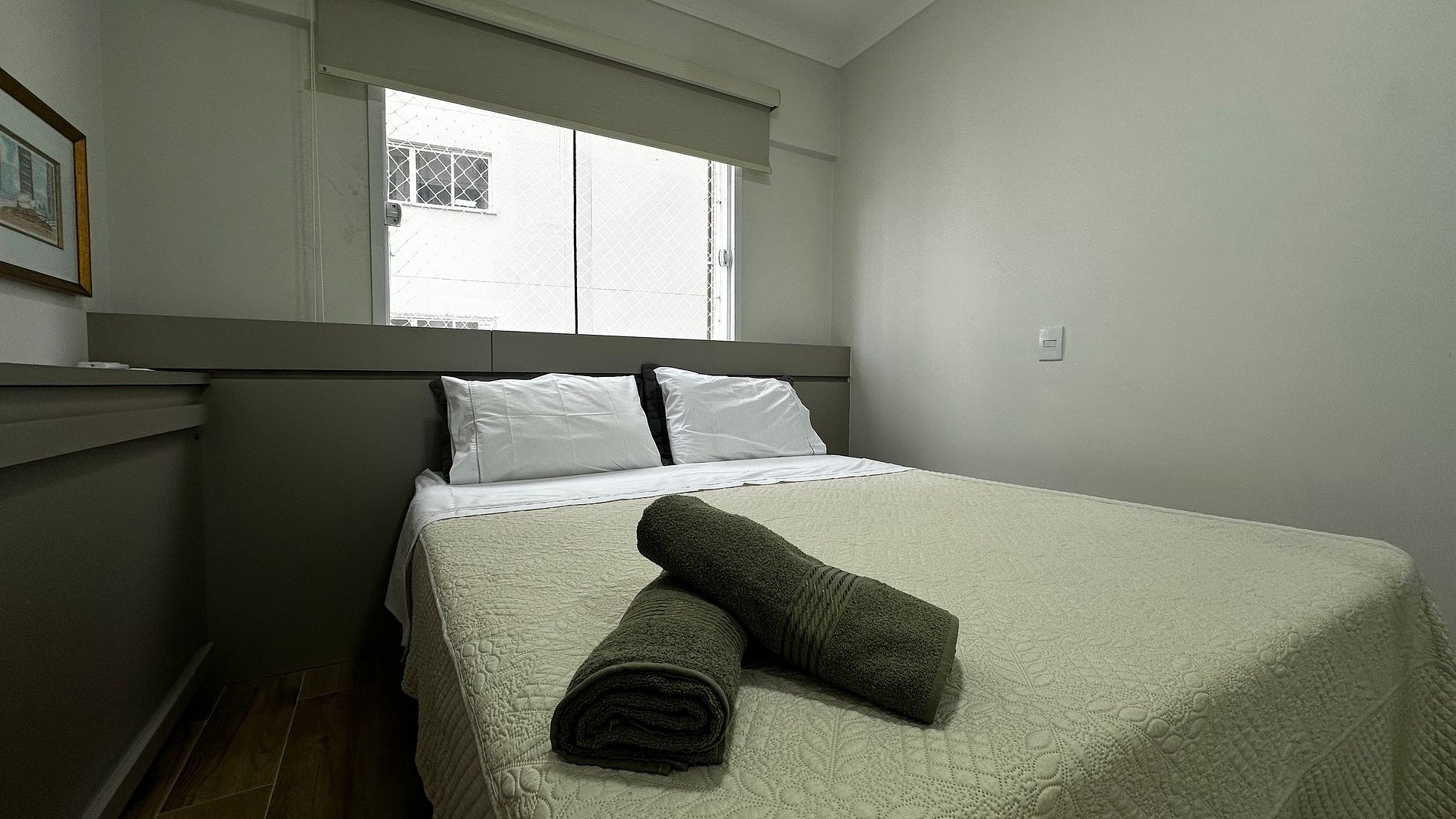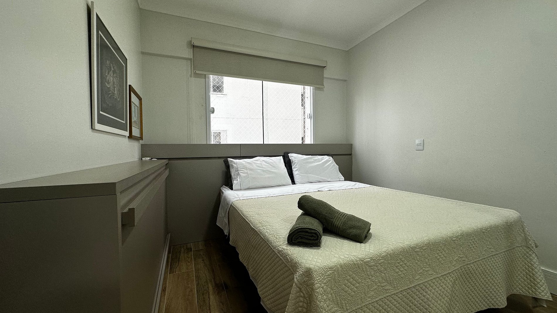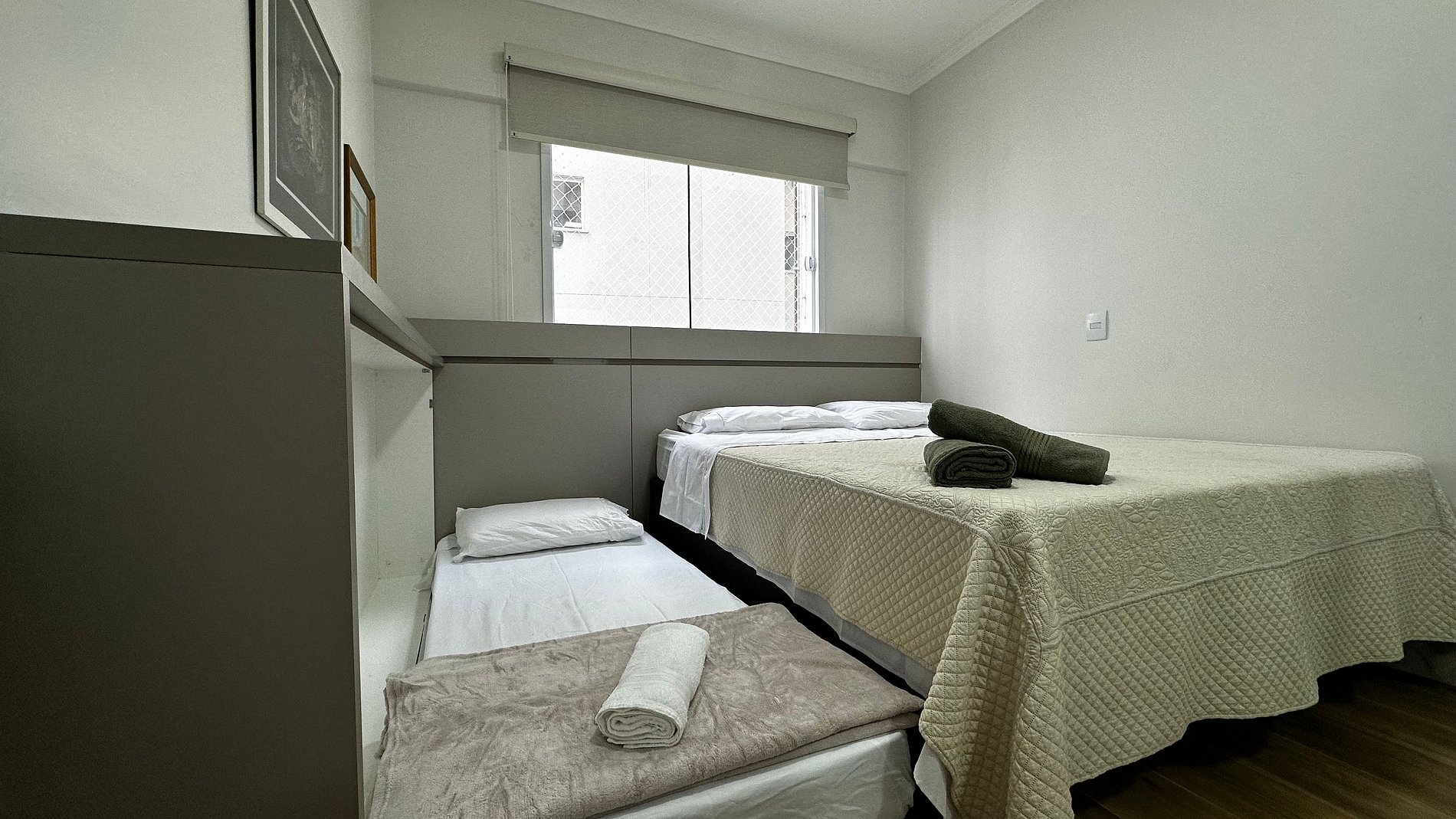 - QUARTO 2: Cama box casal Queen Size, cama auxiliar de solteiro, guarda roupa