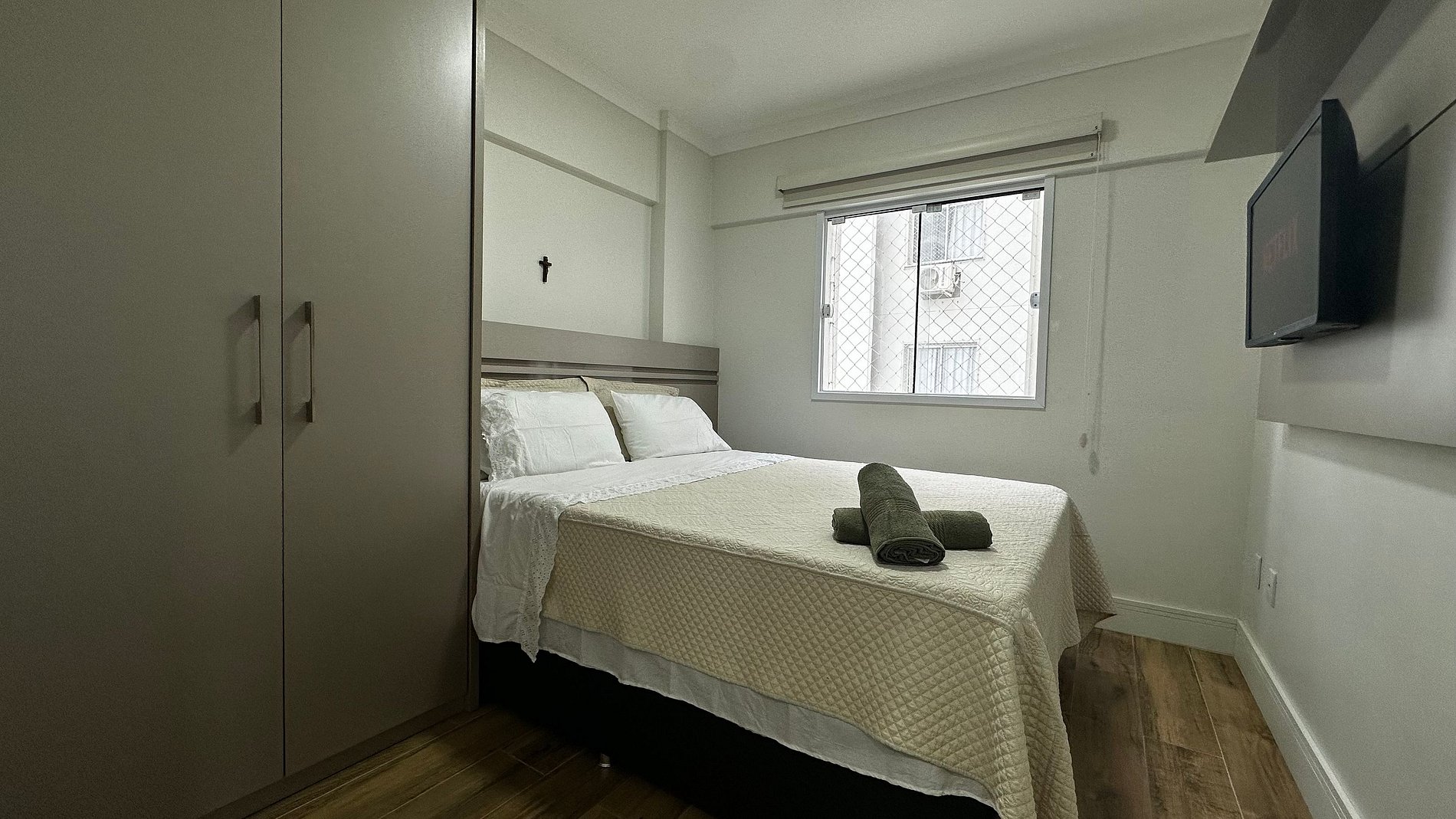 - QUARTO 2: Cama box casal Queen Size, cama auxiliar de solteiro, guarda roupa