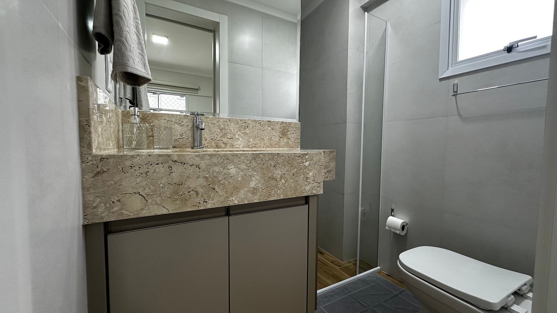 - Composto por 2 quartos sendo 1 suíte, todos com ar condicionado split novos