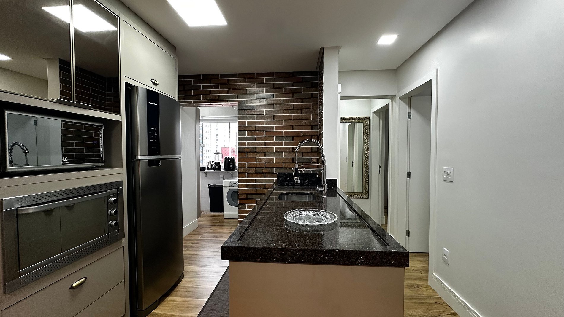 - Cozinha extremamente bem equipada para curtas e longas estadias, geladeira duplex nova, microondas, cooktop, cafeteira elétrica, airfryer, sanduicheira, talheres variados e louças diversas, etc.