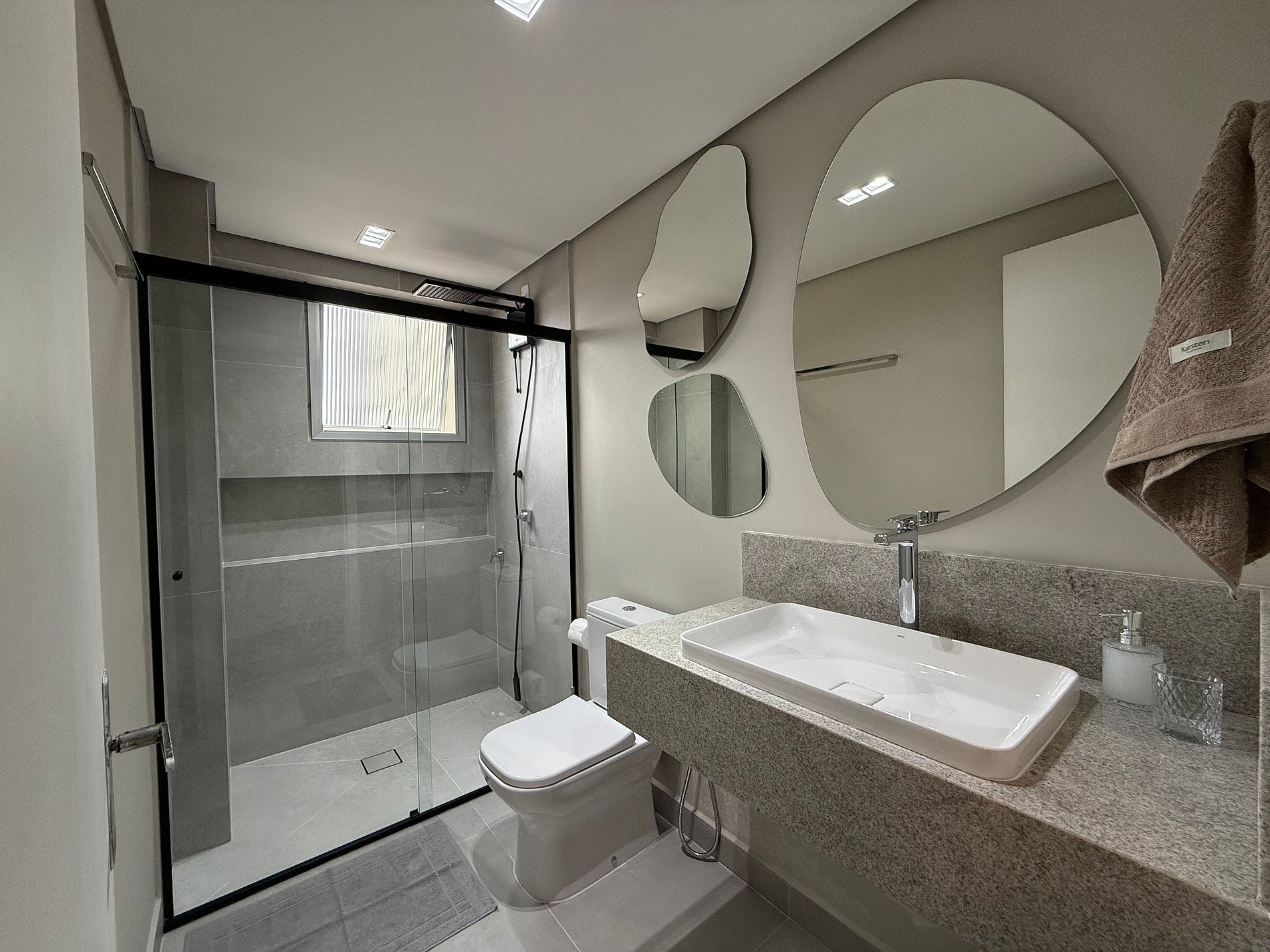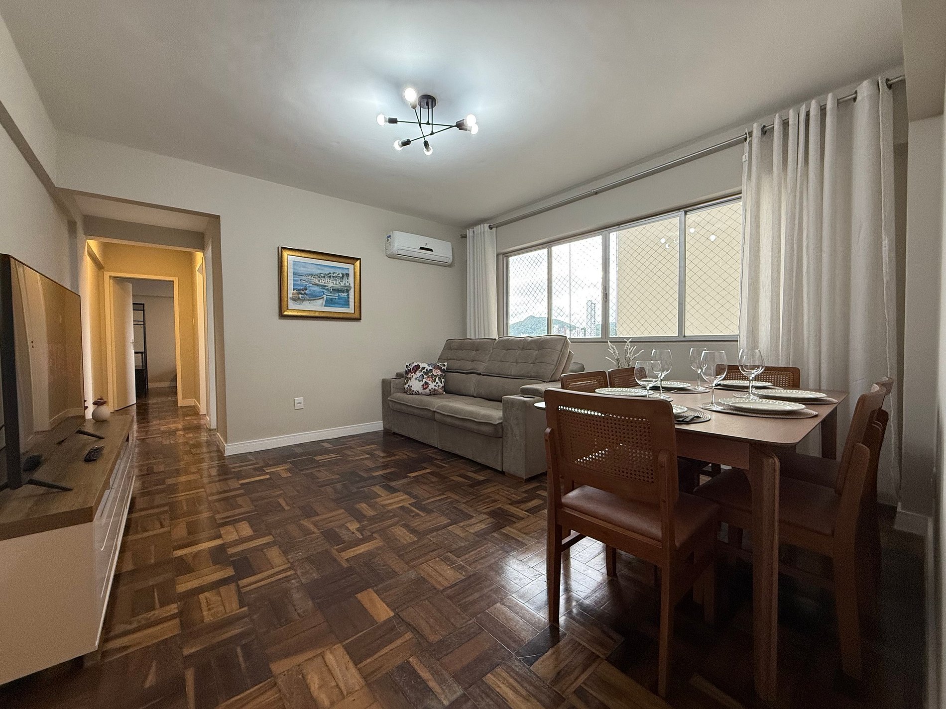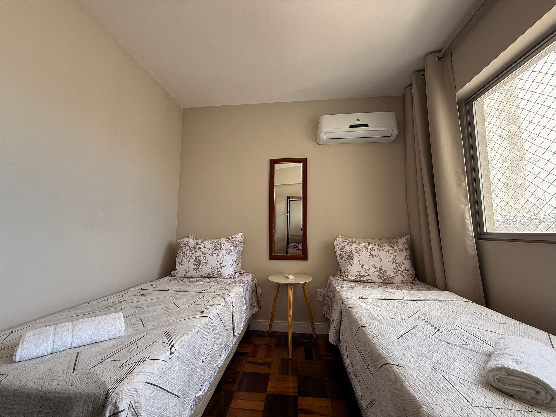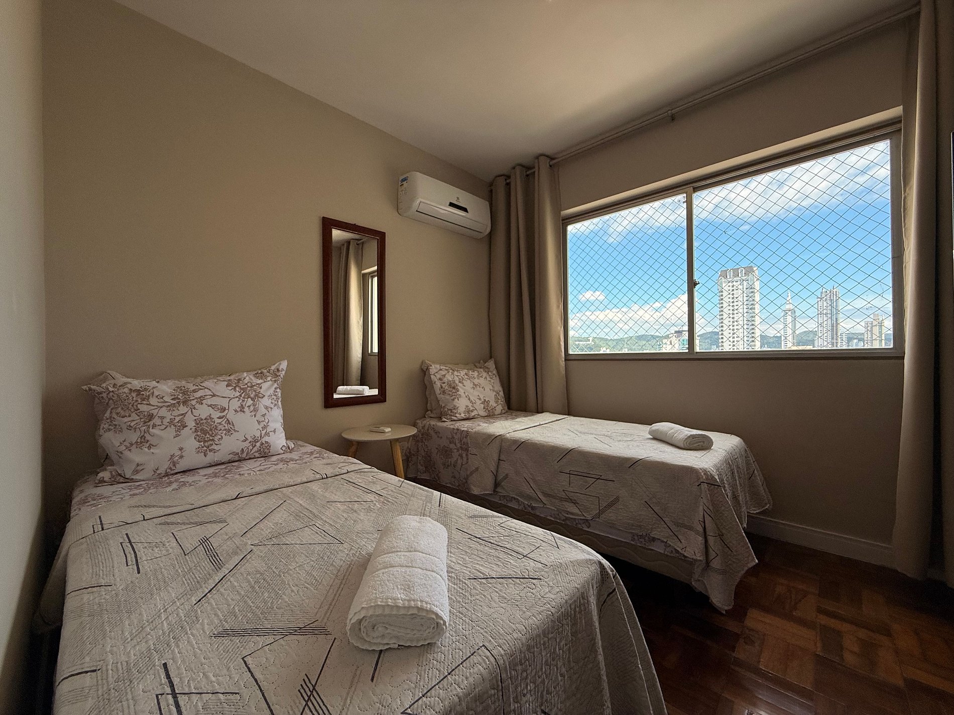 - Composto por 2 quartos, ambos com ar condicionado novo split e blackout