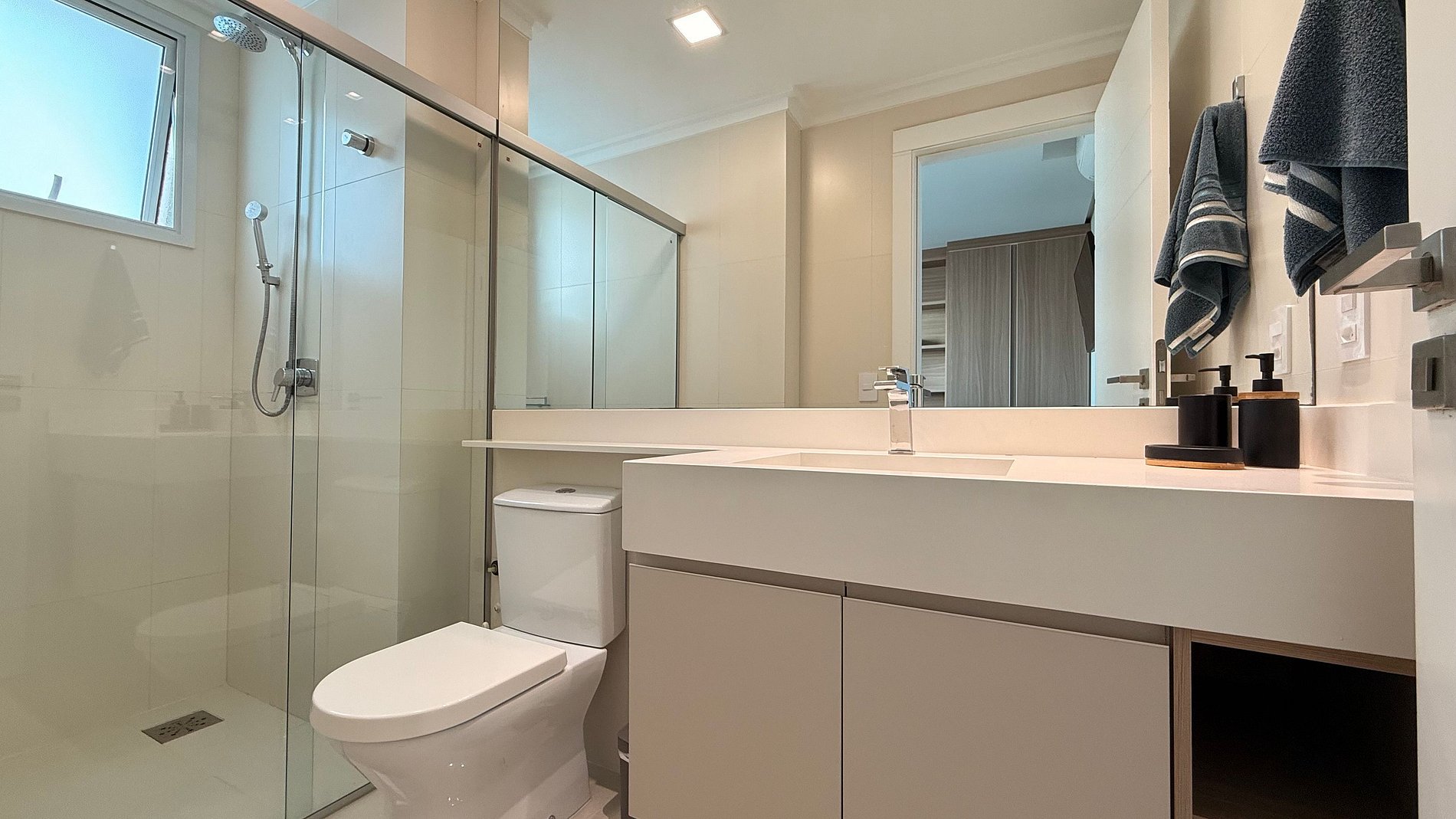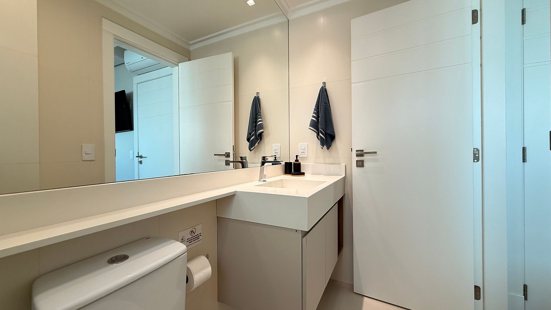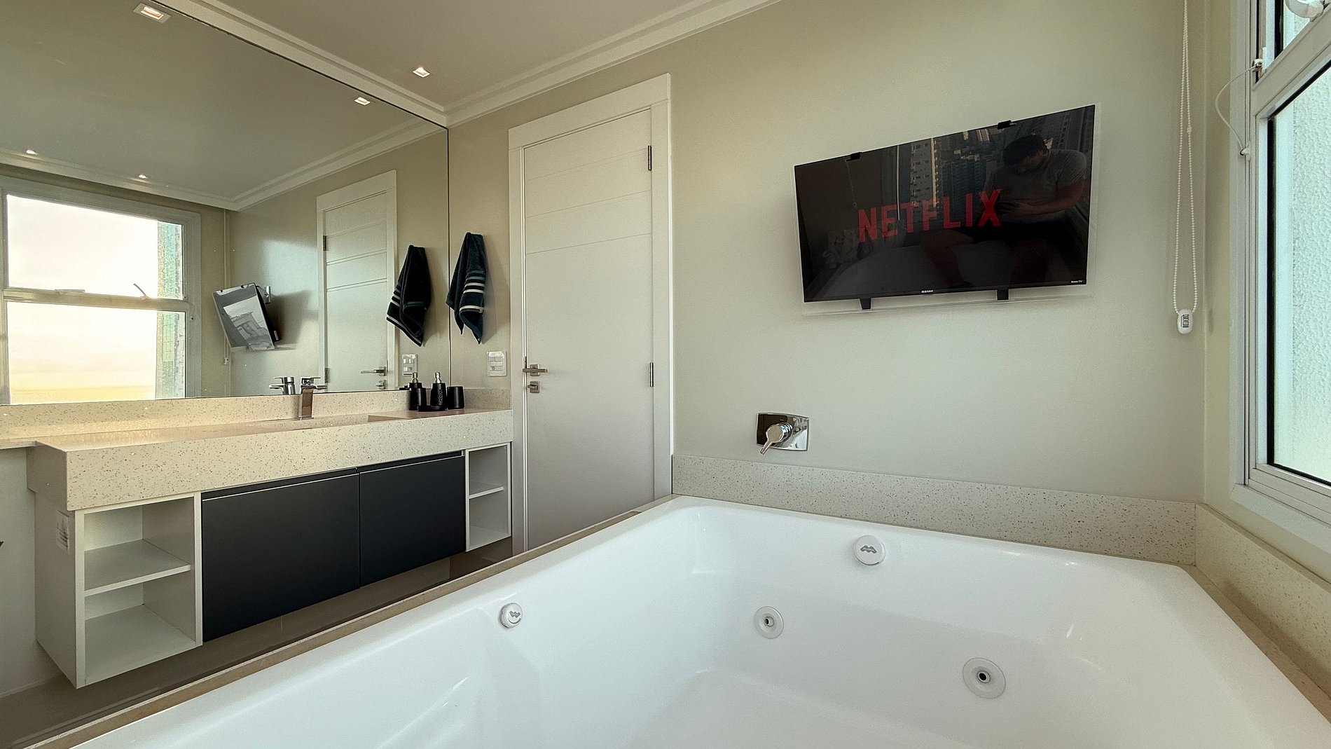 - SUÍTE 1 MASTER: Cama Casal King Size com banheira de hidromassagem, TV 50" Smart e vista privilegiada para praia central de Balneário Camboriú e closet grande.