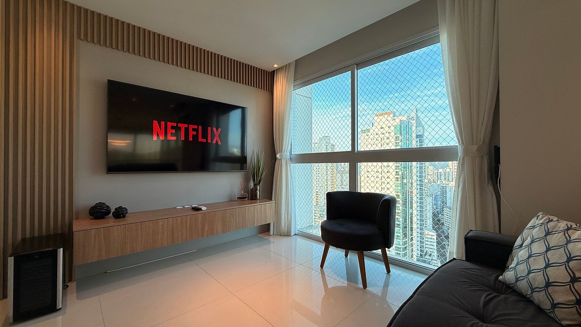 - TV de 70" polegadas com app como Netflix, Globoplay, Amazon Prime (necessário conectar com a conta própria)