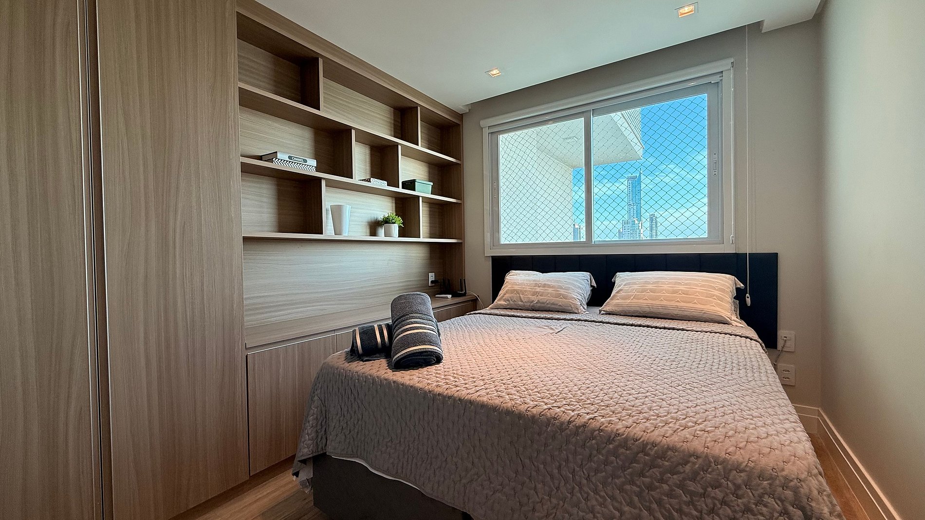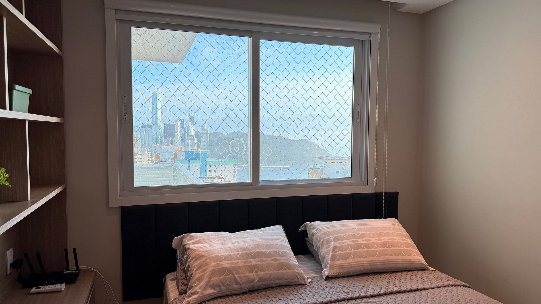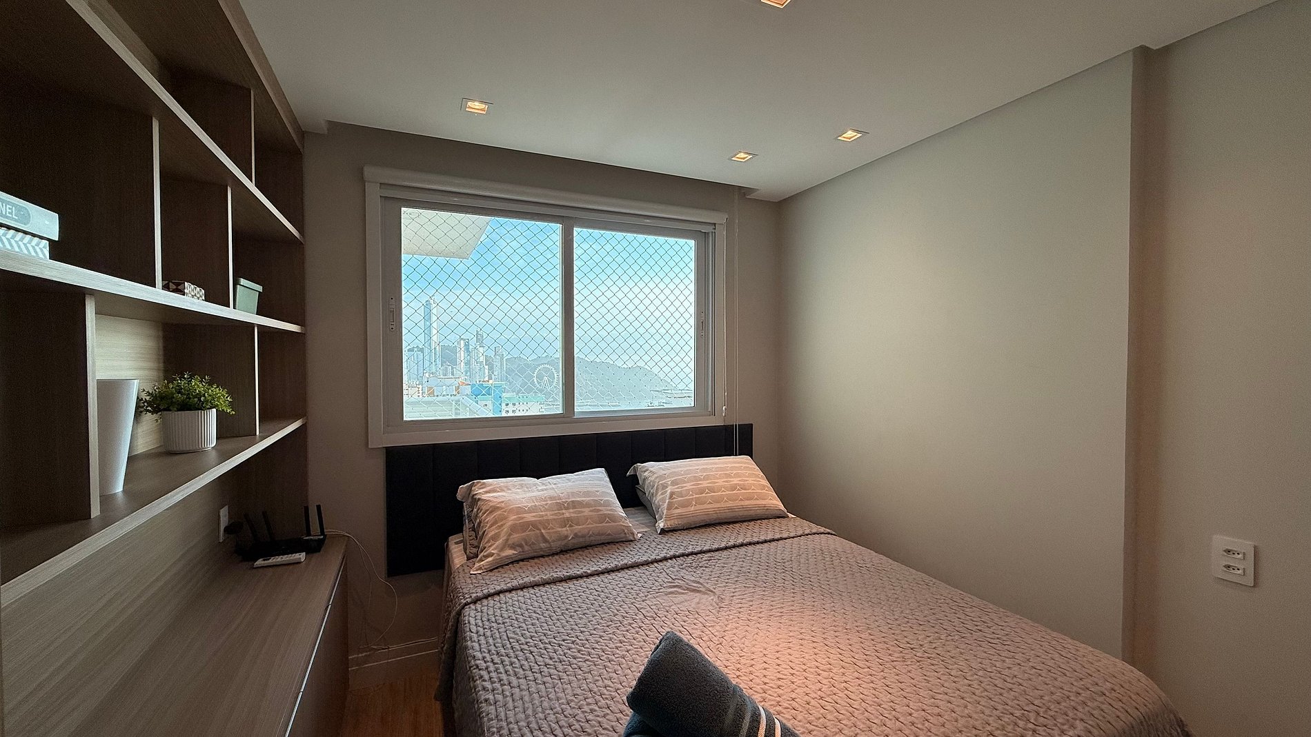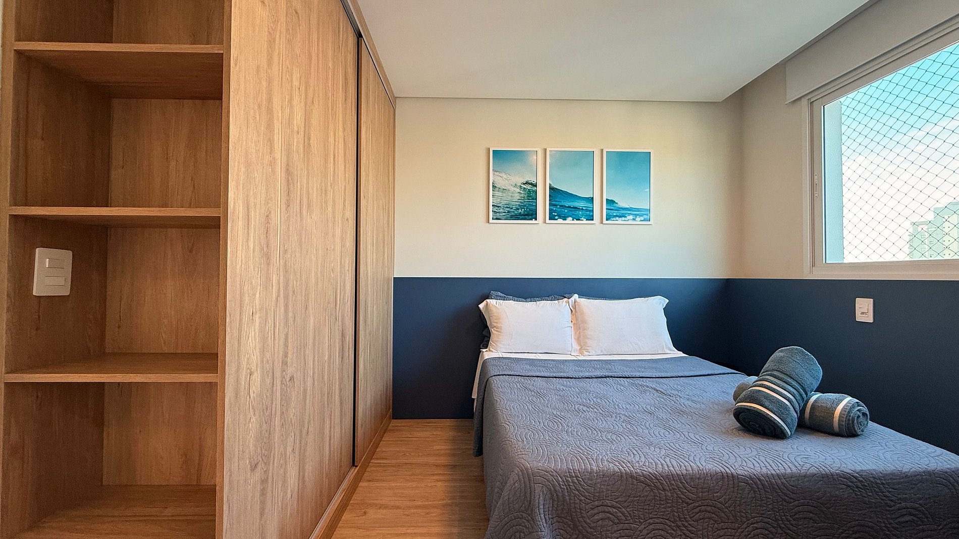 - DEMI-SUÍTE 2: Cama Casal Box com guarda roupa, TV 43" Smart e janela com vista para o mar e cidade