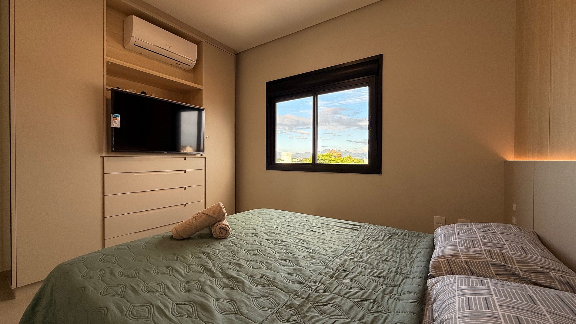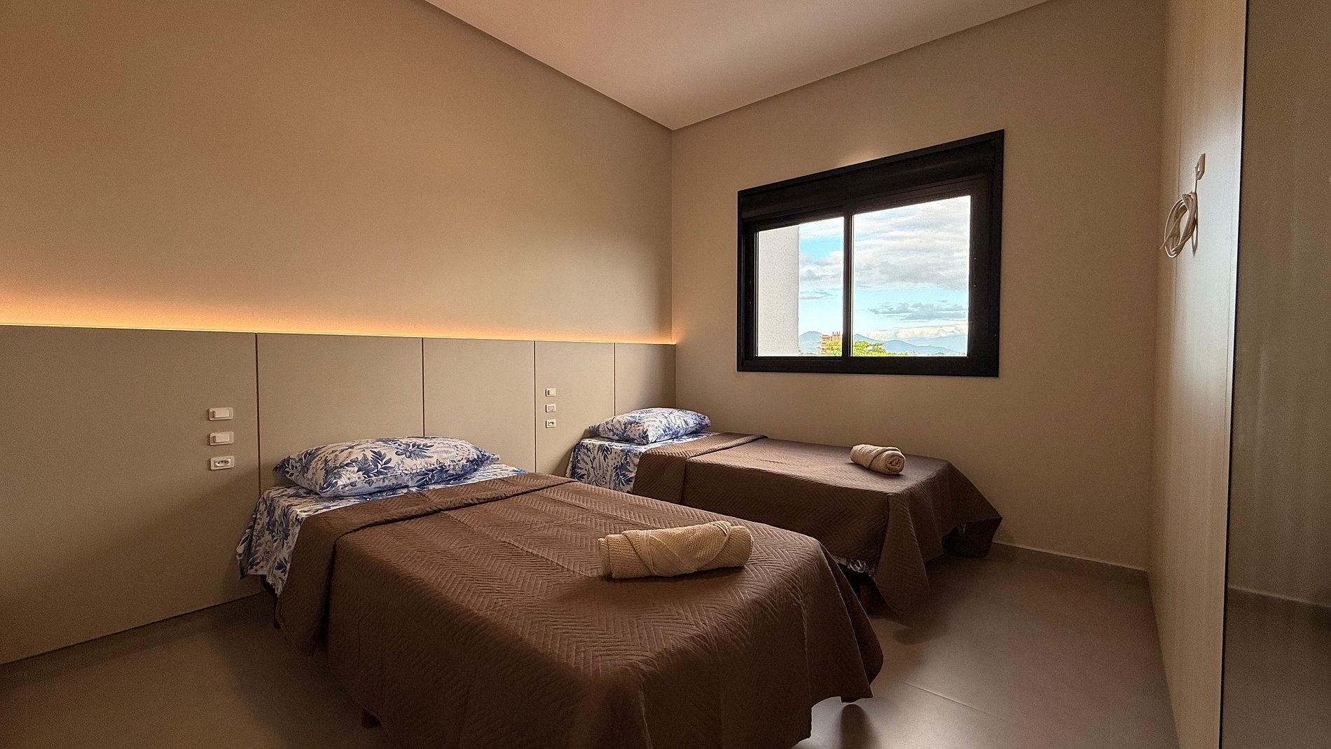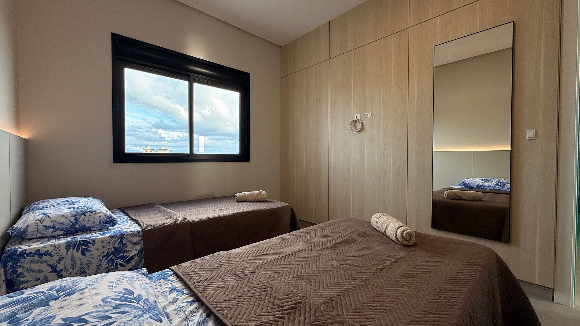 - Apartamentos é composto por 2 quartos todos com ar condicionado split e cortinas 100% blackout