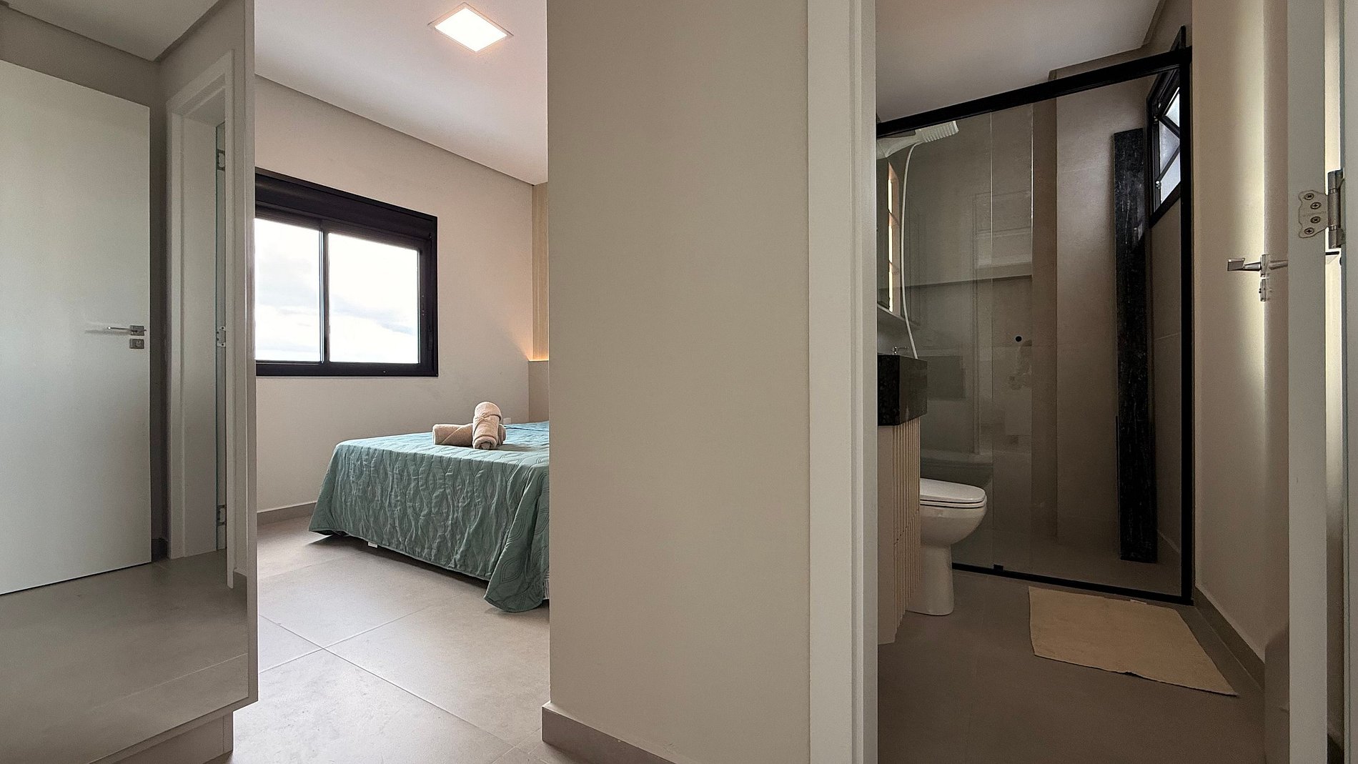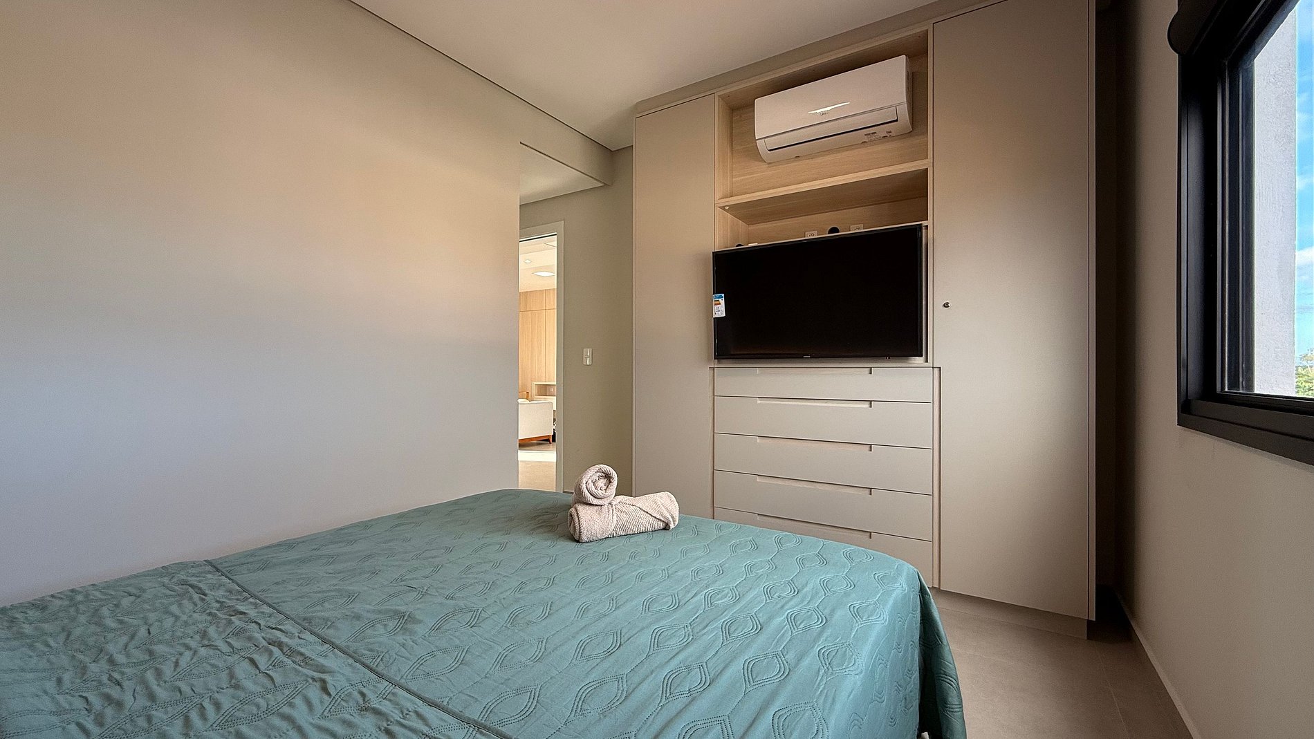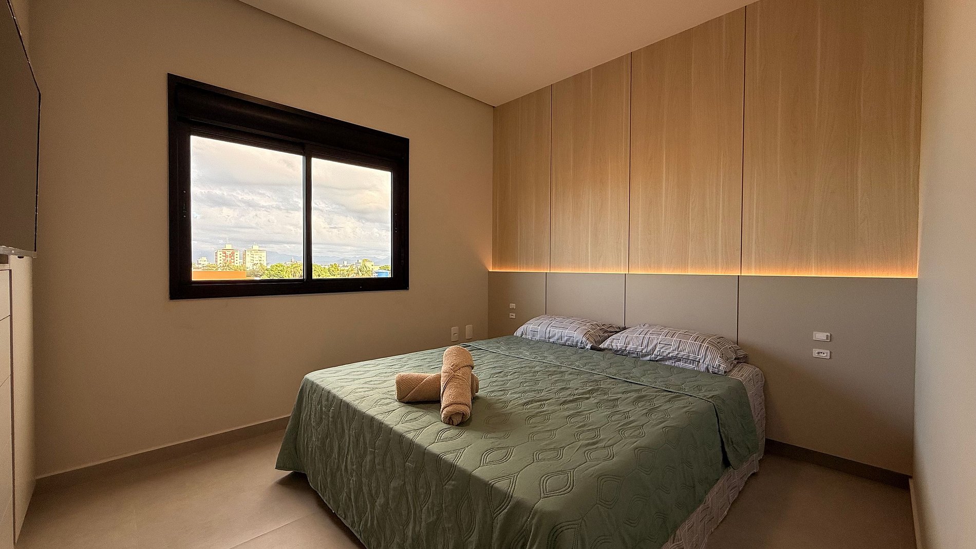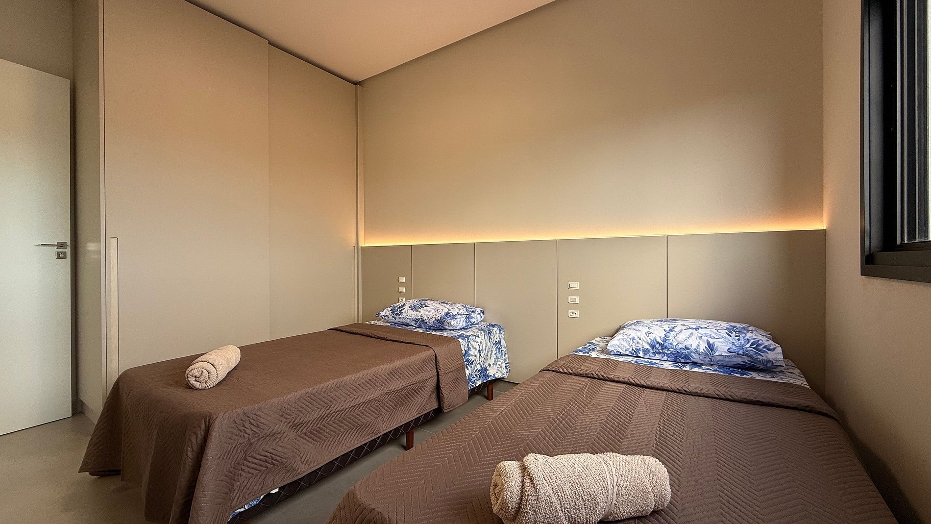 - Apartamentos é composto por 2 quartos todos com ar condicionado split e cortinas 100% blackout