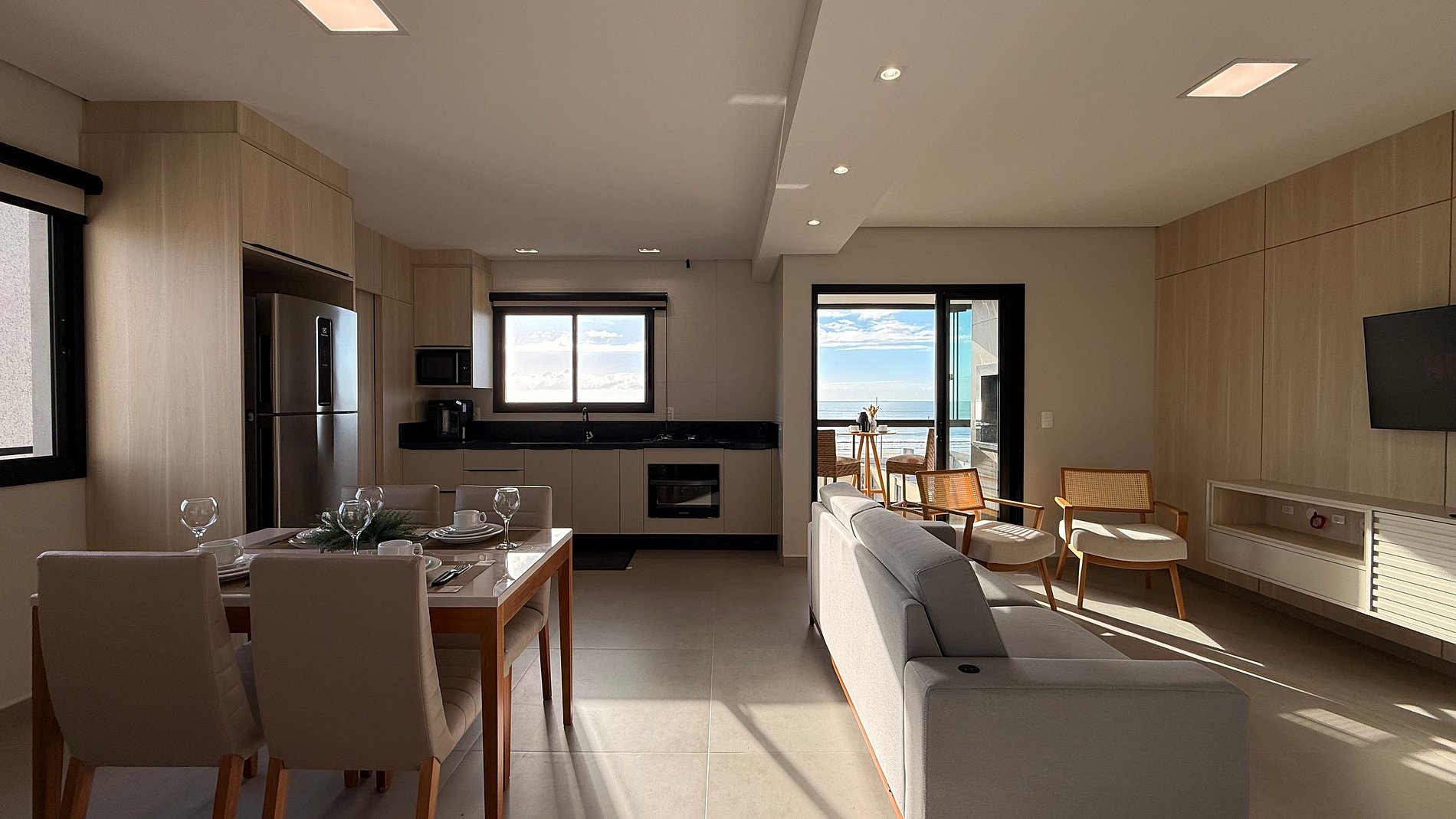 Apartamento extremamente novo, recheado de comodidades para você, sua famílias ou amigos! Localizado no centro de Itapoá, na rua ao lado da principal e praticamente pé na areia. Composto por 2 quartos sendo 1 suite +1 banheiro social completo, acomoda até 4 adultos e 2 crianças, sala integrada com a cozinha muito bem equipada e com vista para o mar, sacada com churrasqueira à carvão onde poderá desfrutar de uma vista incrível para o mar! 01 Garagem privativa, internet rápida.