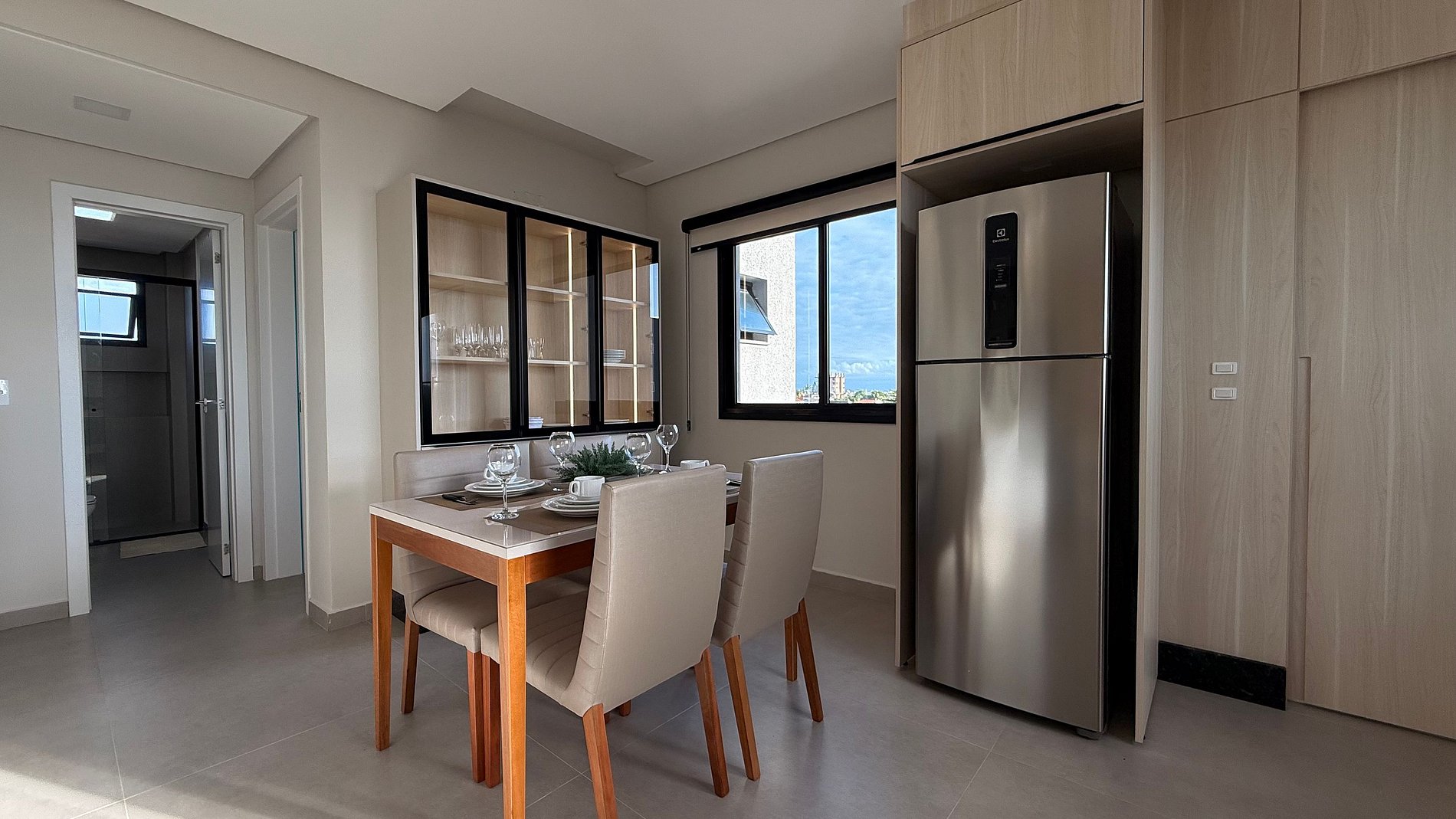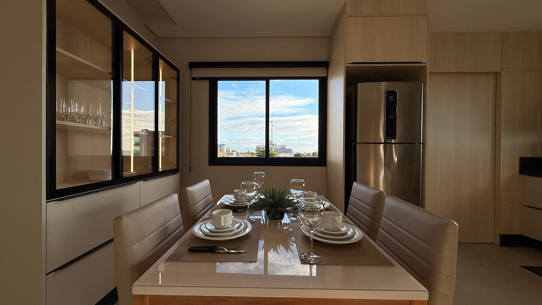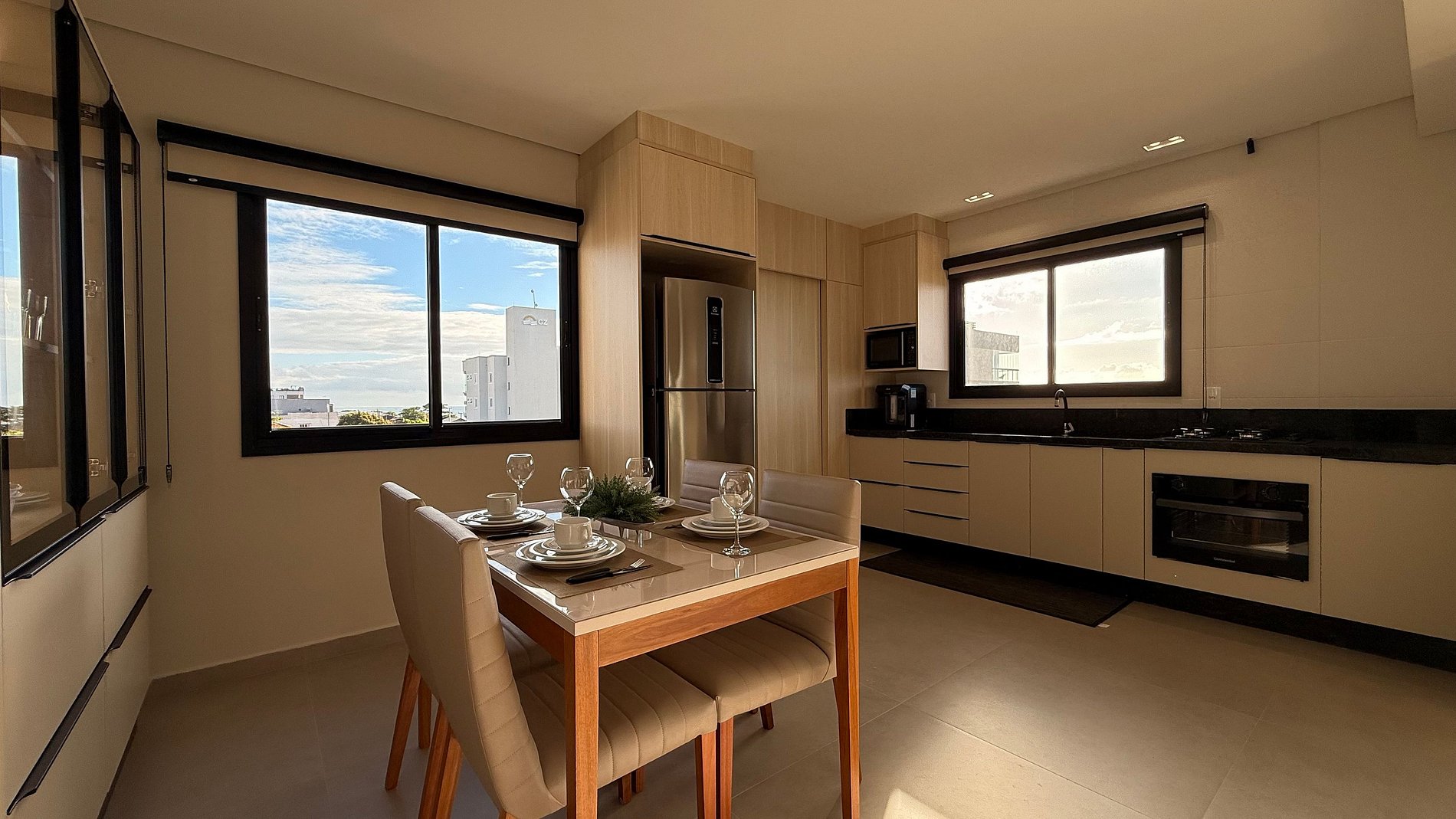 - Cozinha integrada a sala com mesa jantar 4 lugares fazendo maior integração entre os hóspedes