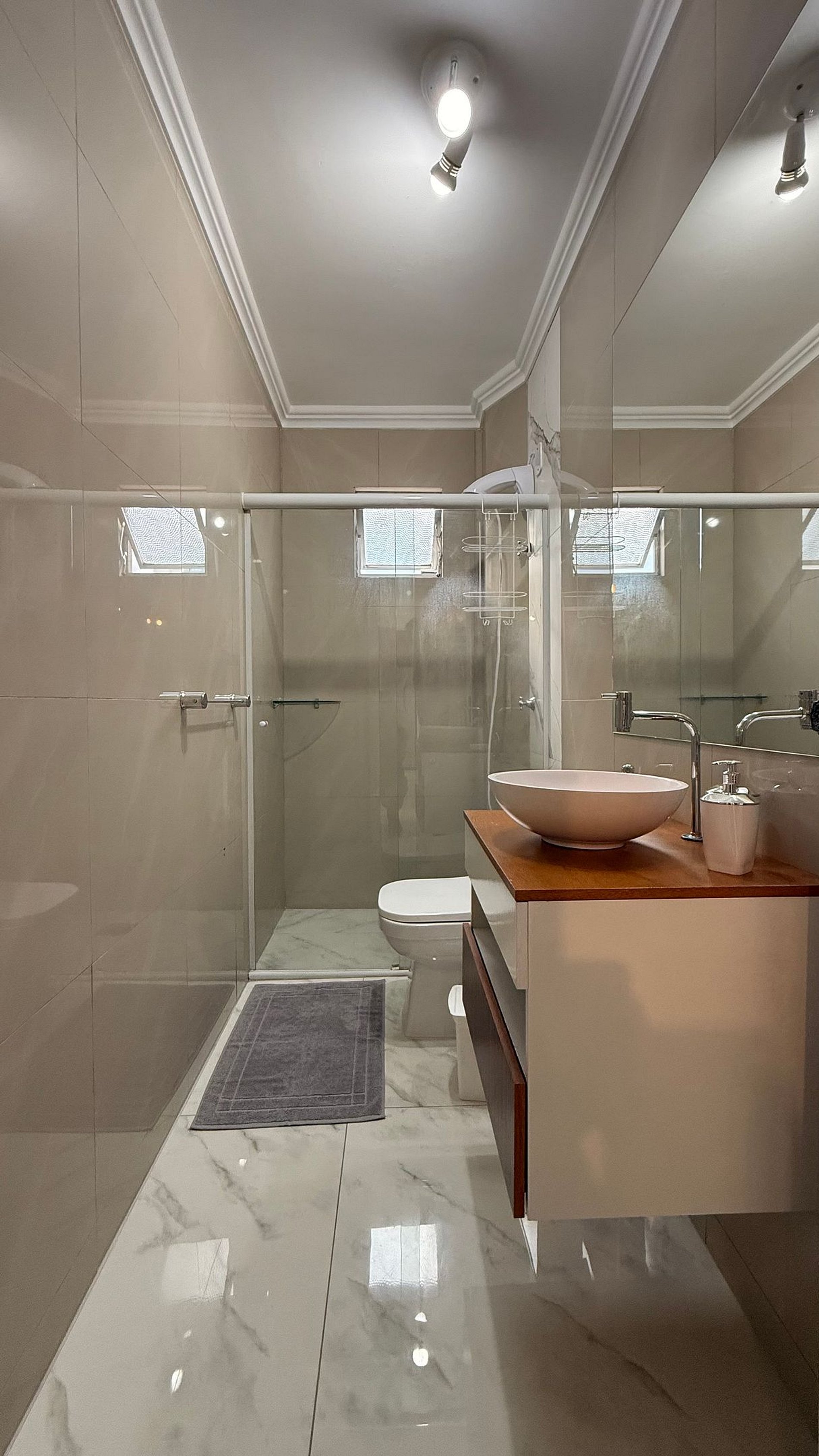- Banheiro social completo, com ducha higiênica e chuveiro eletrônico para um banho relaxante após um dia de praia.