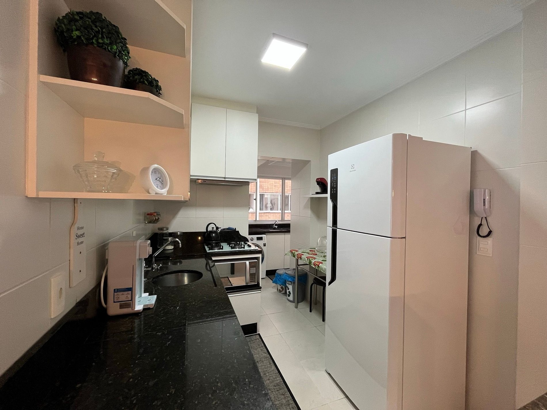 - Geladeira, microondas e forno elétrico