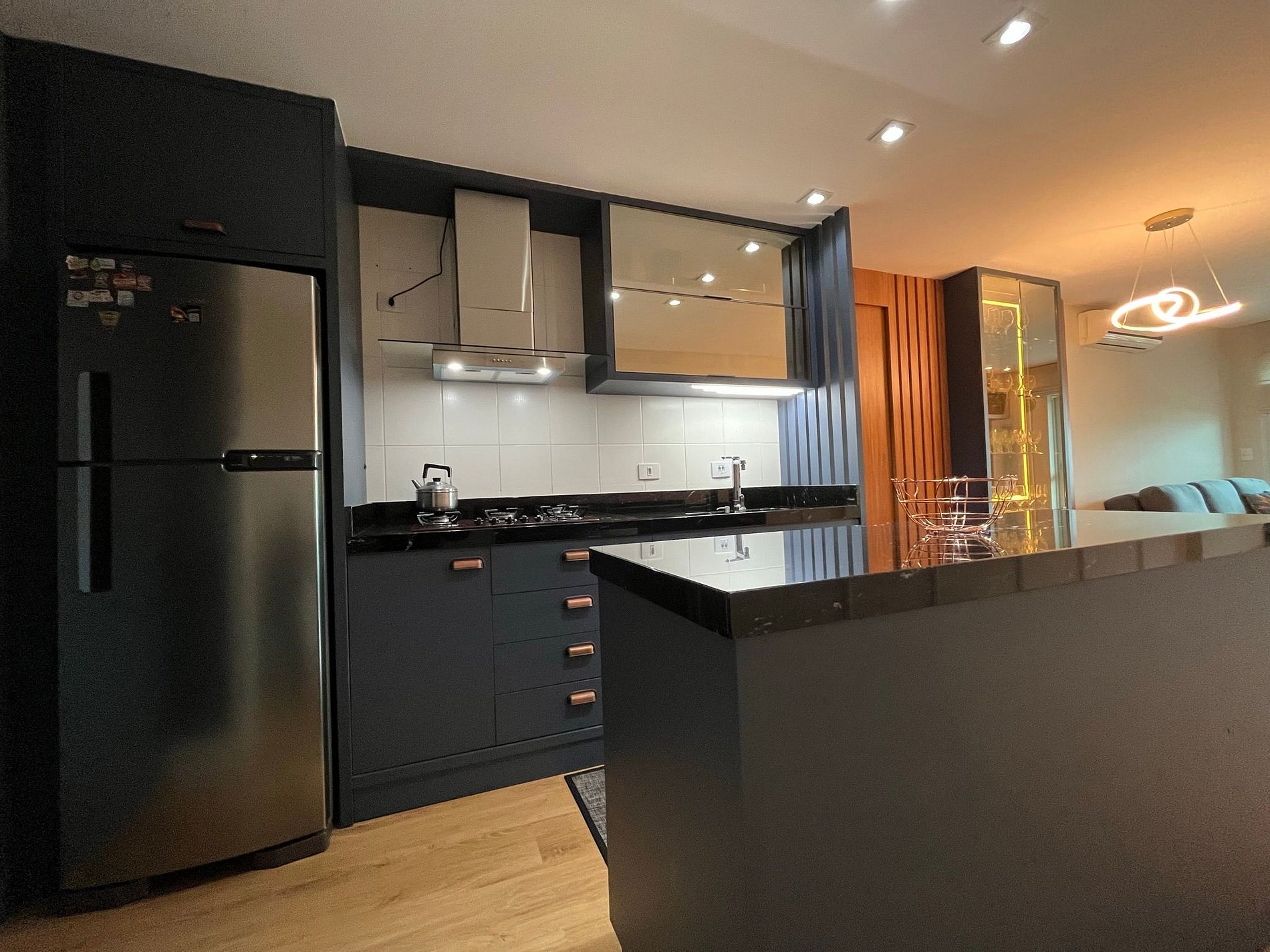 - Cozinha completa com bancada em ilha