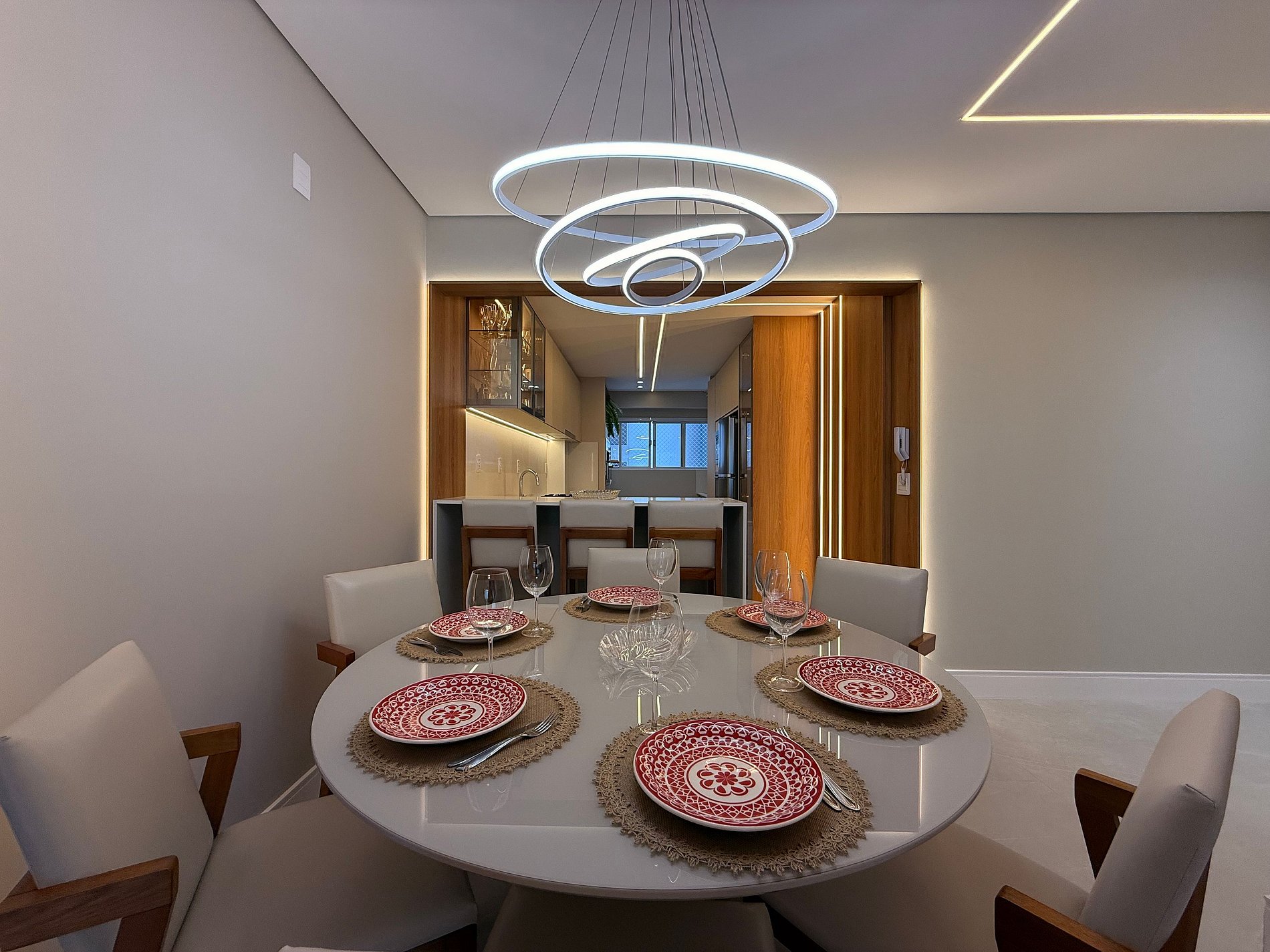 - Mesa de jantar redonda com 6 lugares