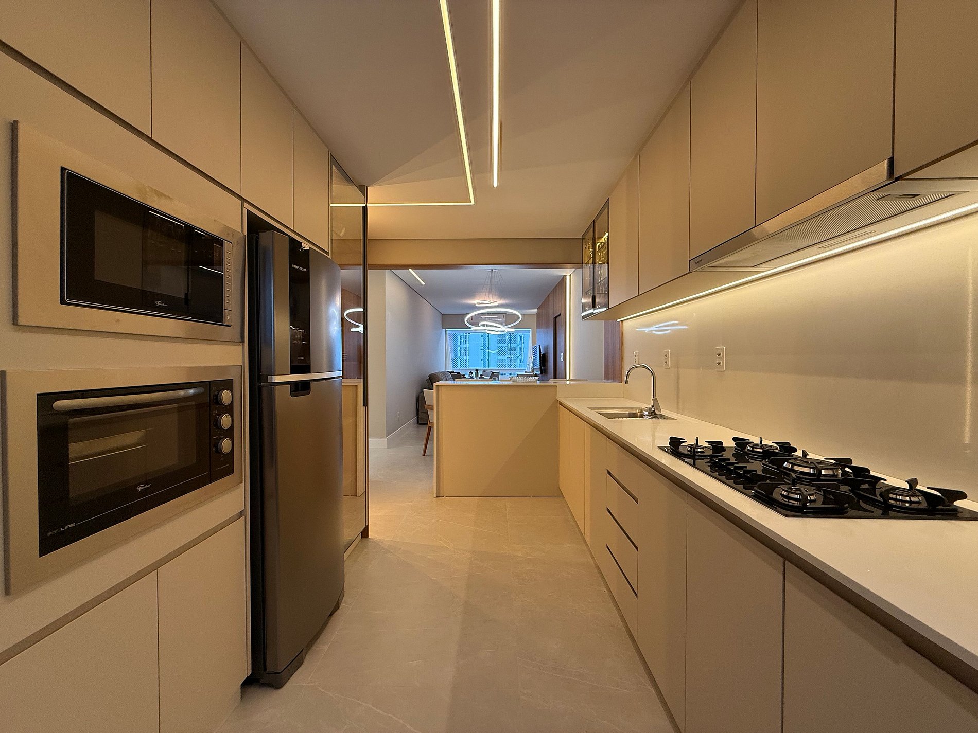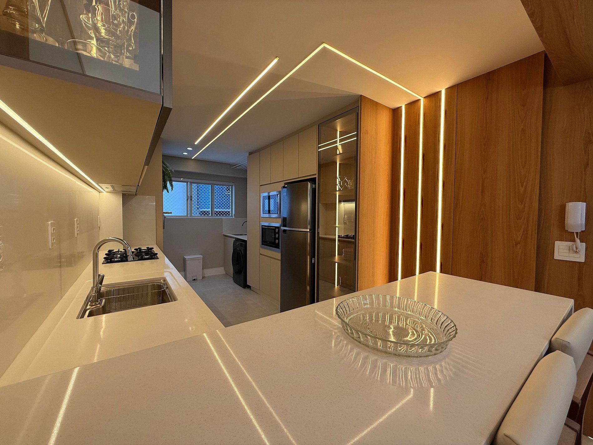 - Cozinha muito bem equipada com tudo que precisa para curtas e longas estadia, geladeira duplex nova, microondas, Cooktop, forno, cafeteira elétrica, filtro de água gelada, airfryer, sanduicheira, talheres variados e louças diversas.