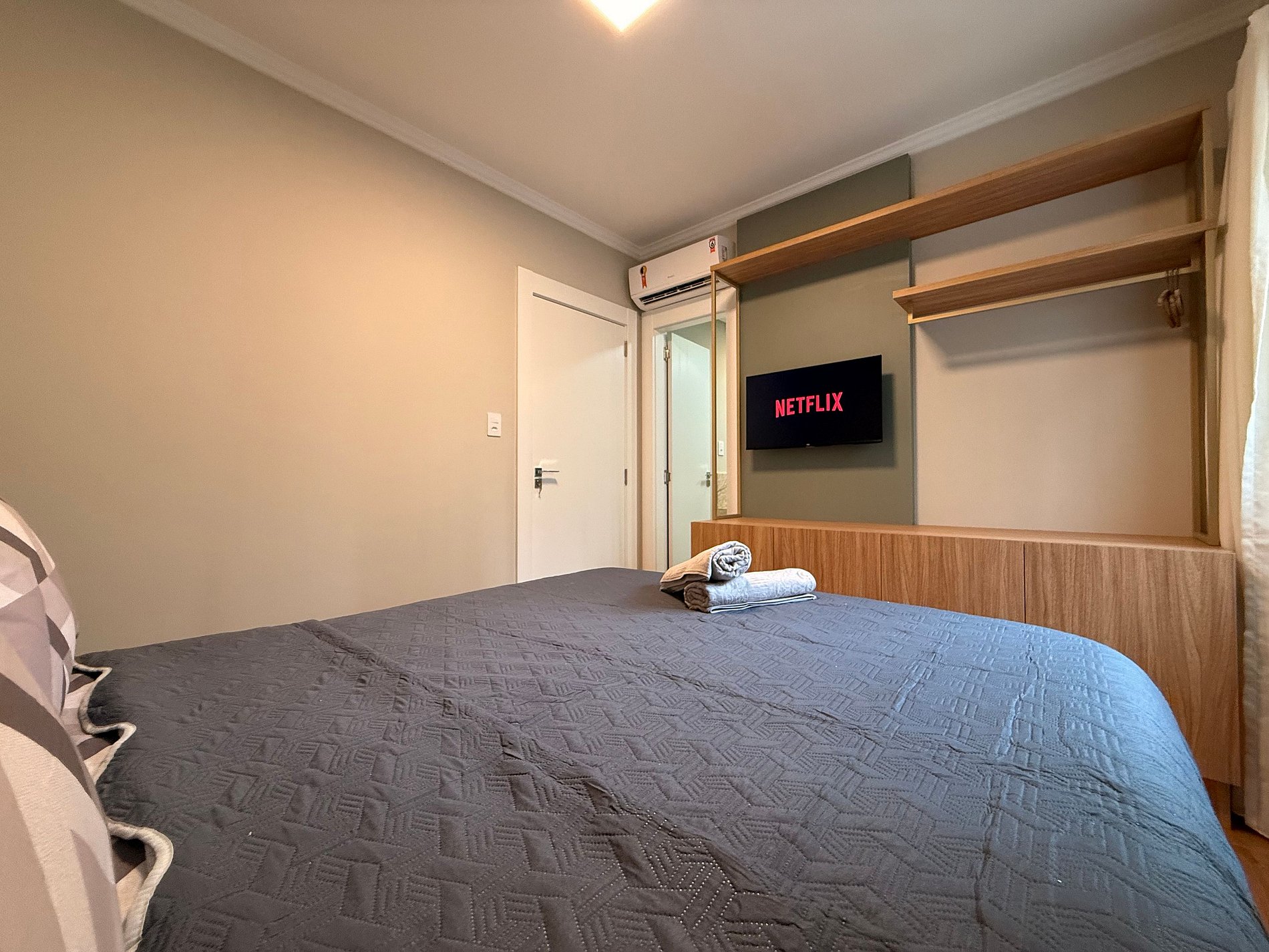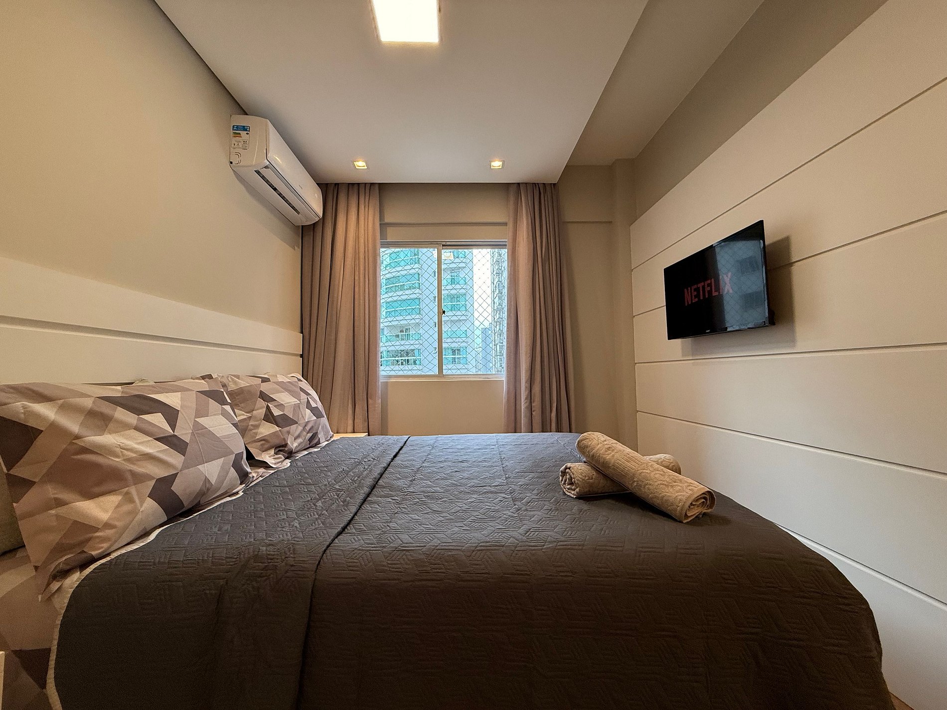 - Composto por 3 Suítes, todas com cama Queen Size e ar condicionado e TV Smart