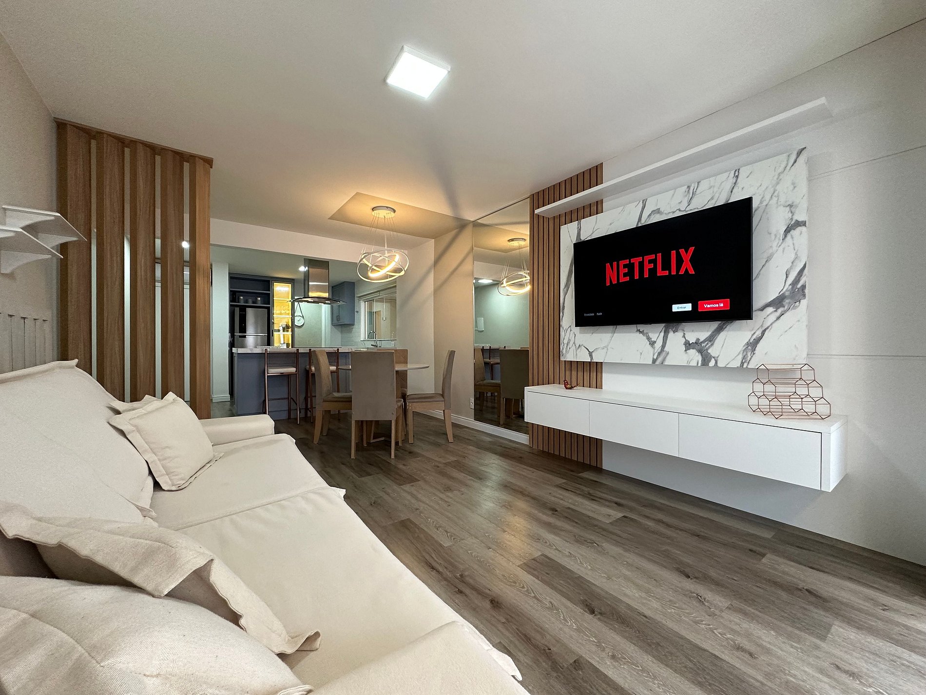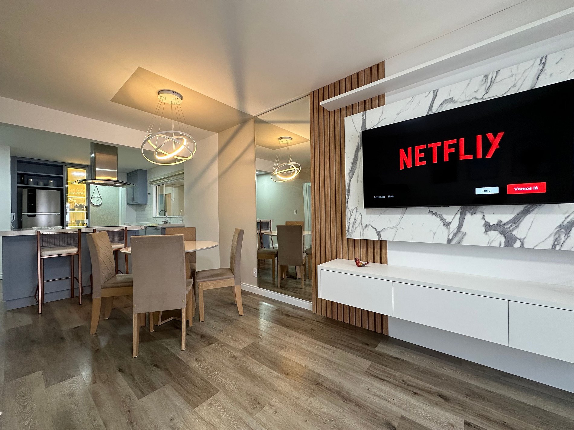 - TV de 55" polegadas com app como Netflix, Globoplay, Amazon Prime (necessário conectar com a conta própria)