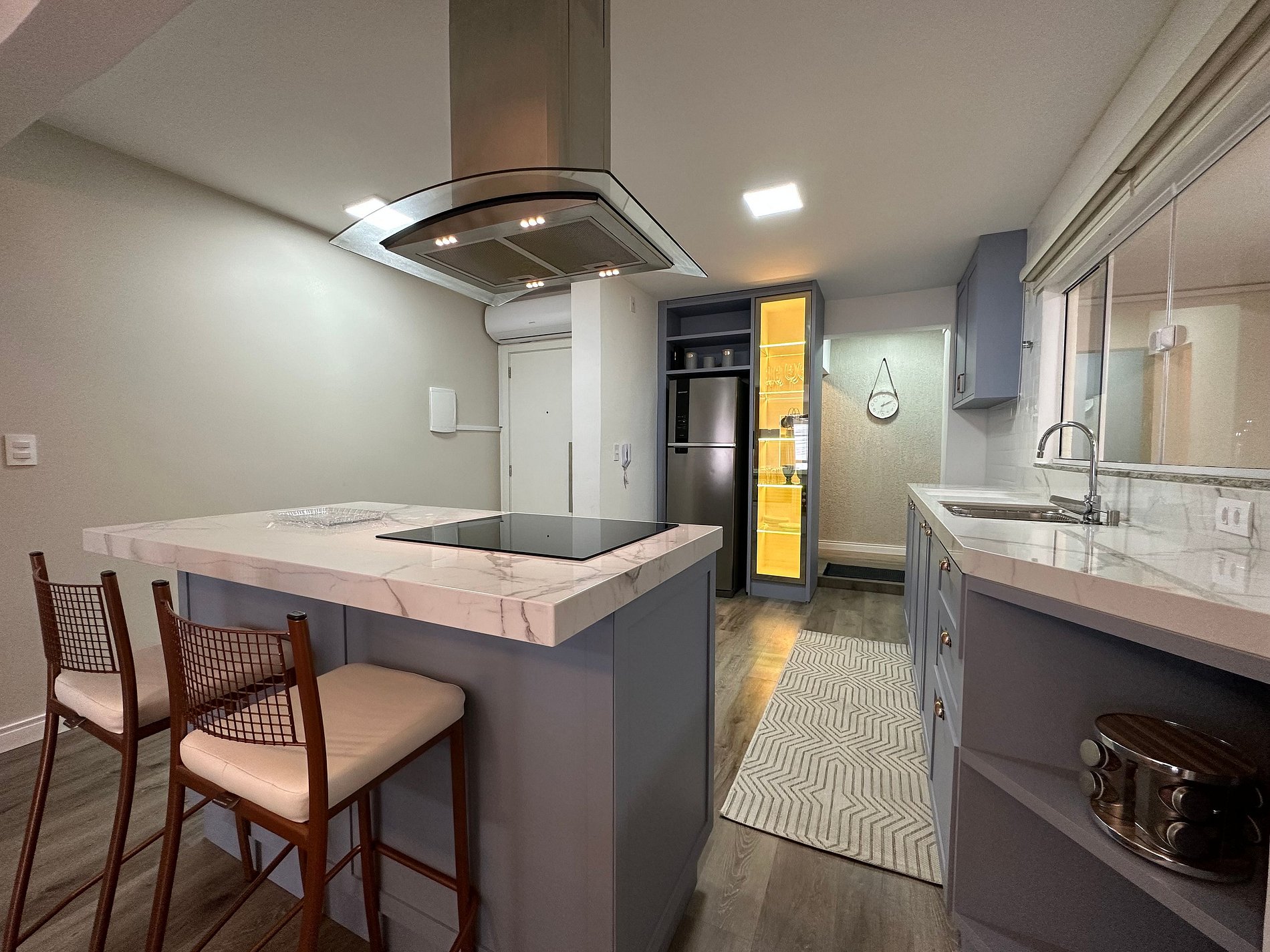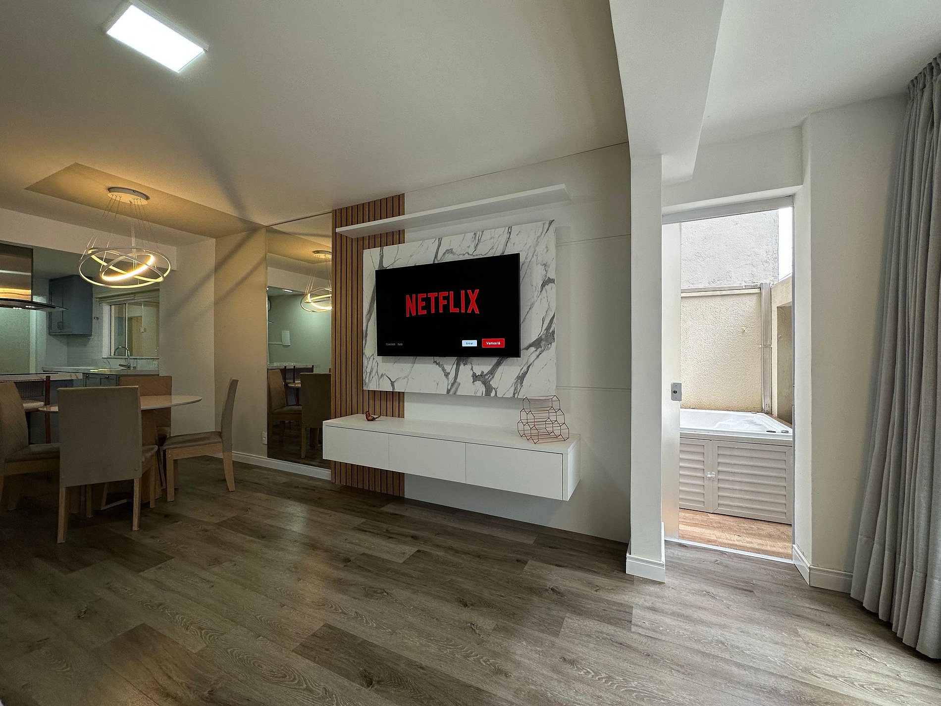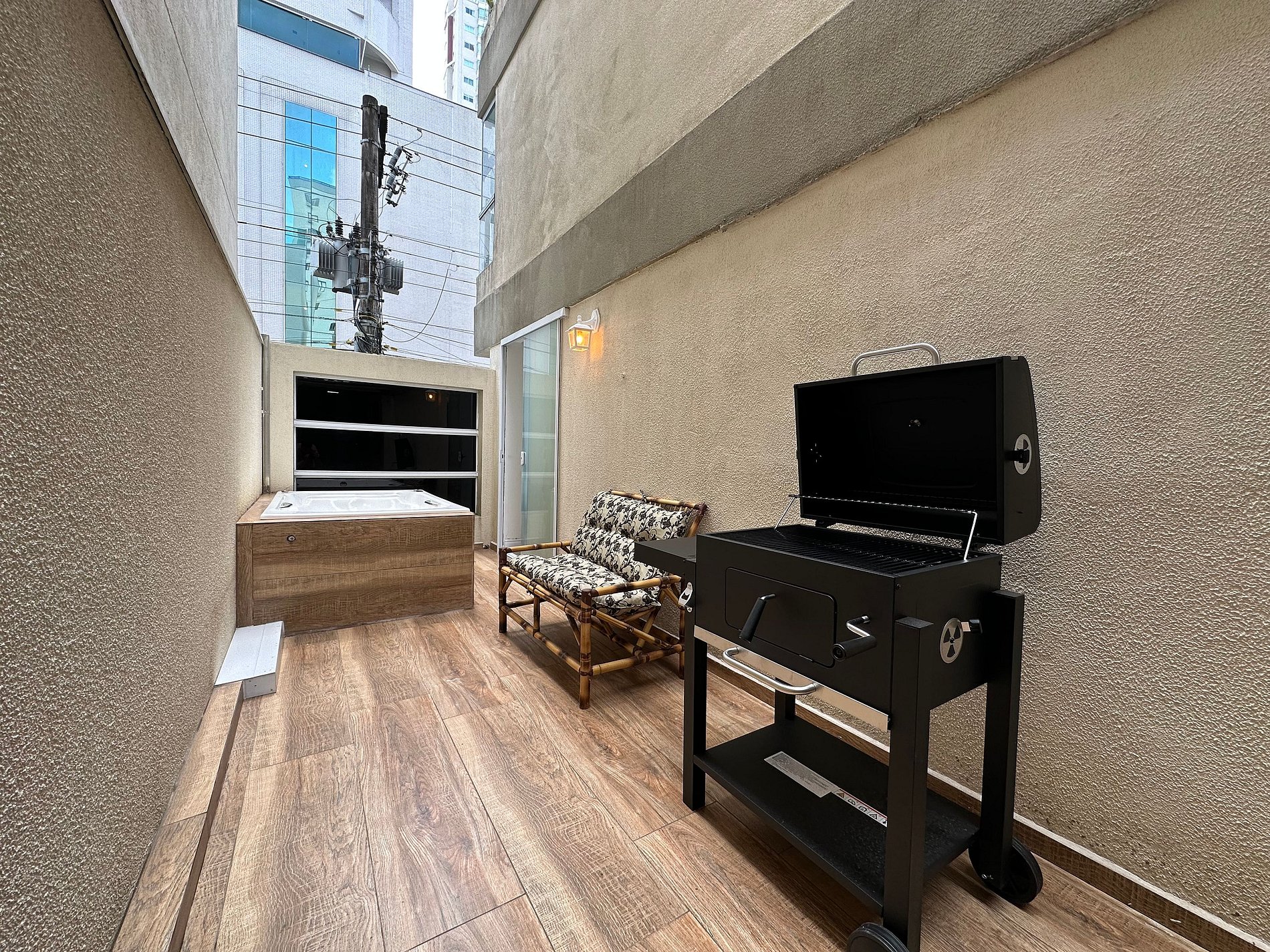 Excelente apto recém reformado na cidade de Balneário Camboriú composto por 3 quartos sendo 2 deles suítes completas com ar condicionado e blackout 100%. Cozinha com bancada em ilha para maior amplitude e interação do espaço muito bem equipada para curtas e longas estadias. Sala com sofá grande e confortável e uma TV de 55" polegadas. O maior diferencial desse apto é seu espaço externo exclusivo com Jacuzzi e churrasqueira à carvão estilo americana para aproveitar com família e amigos! 1 garagem