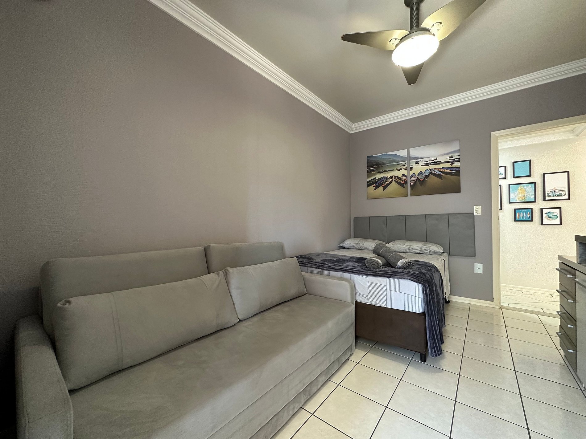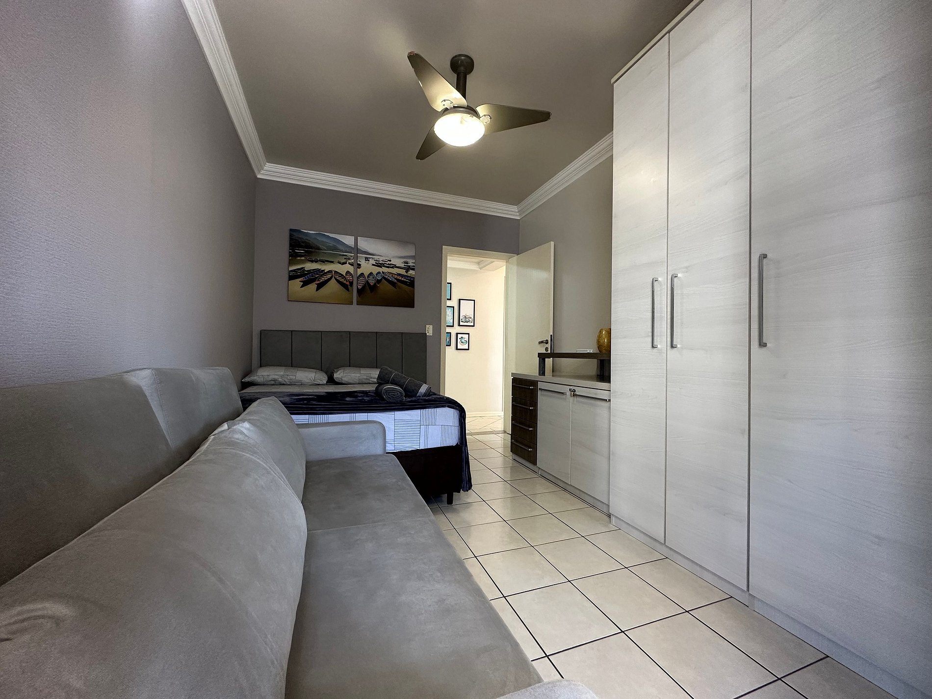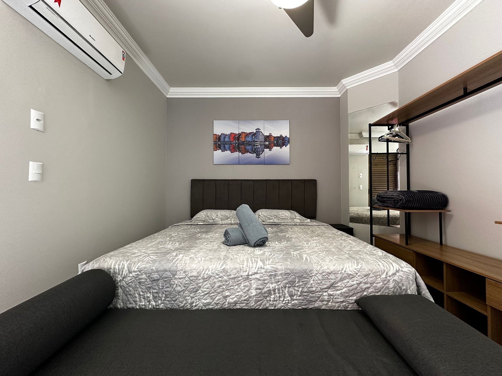 - QUARTO 2: Cama de Casal Box, Sofá Cama com colchão densidade D33 muito confortável, Ar Condicionado Split e Guarda Roupa