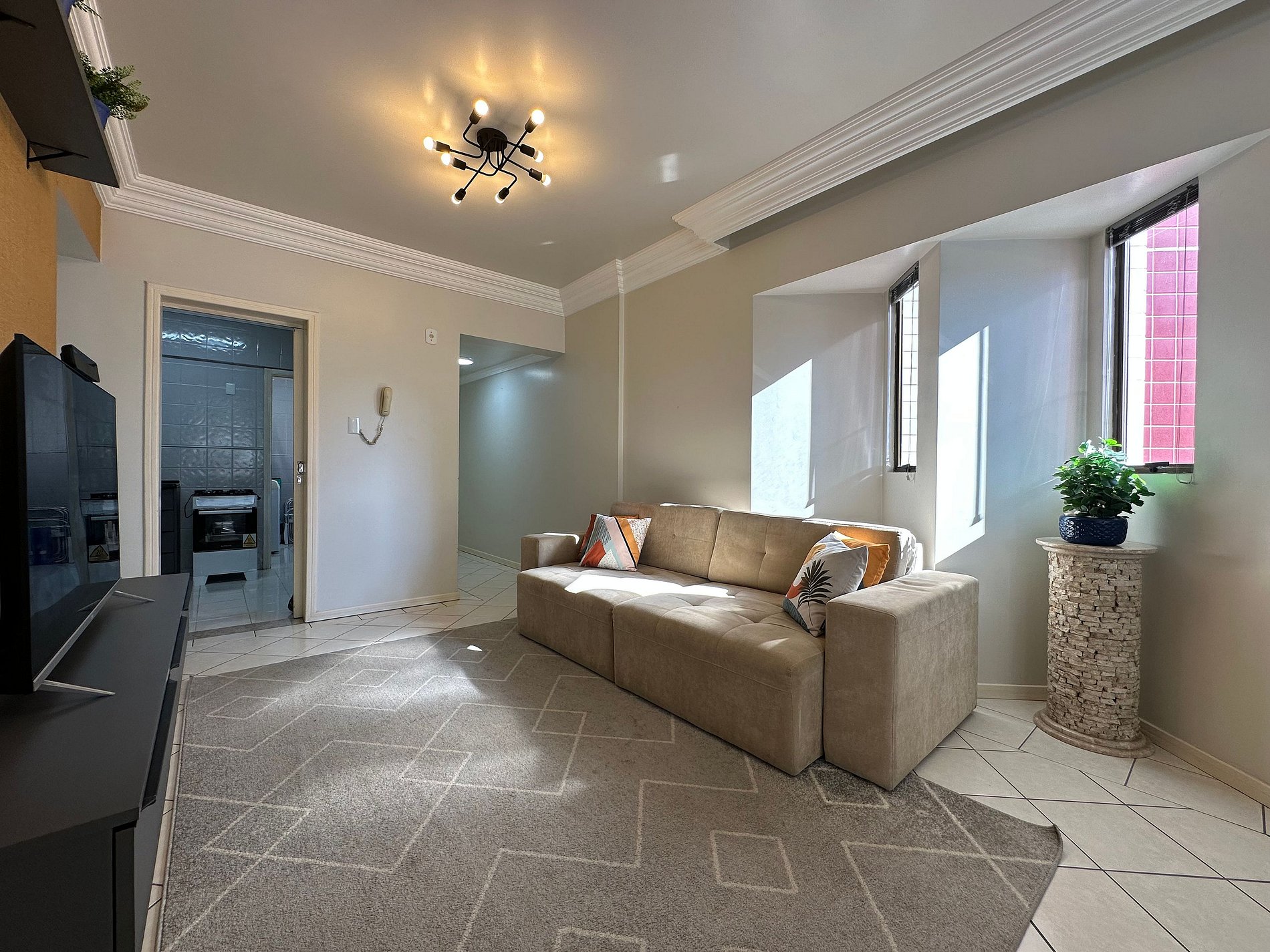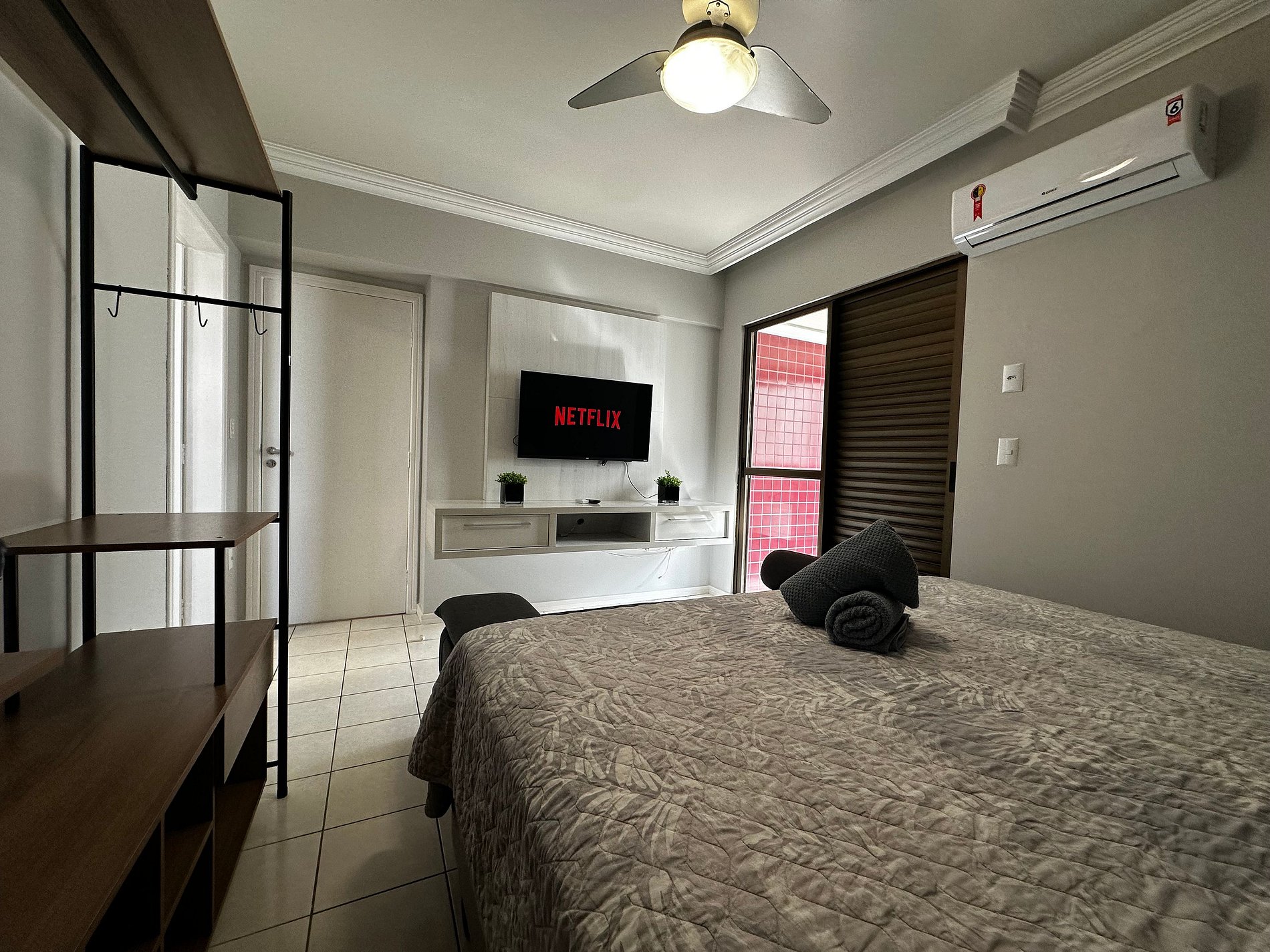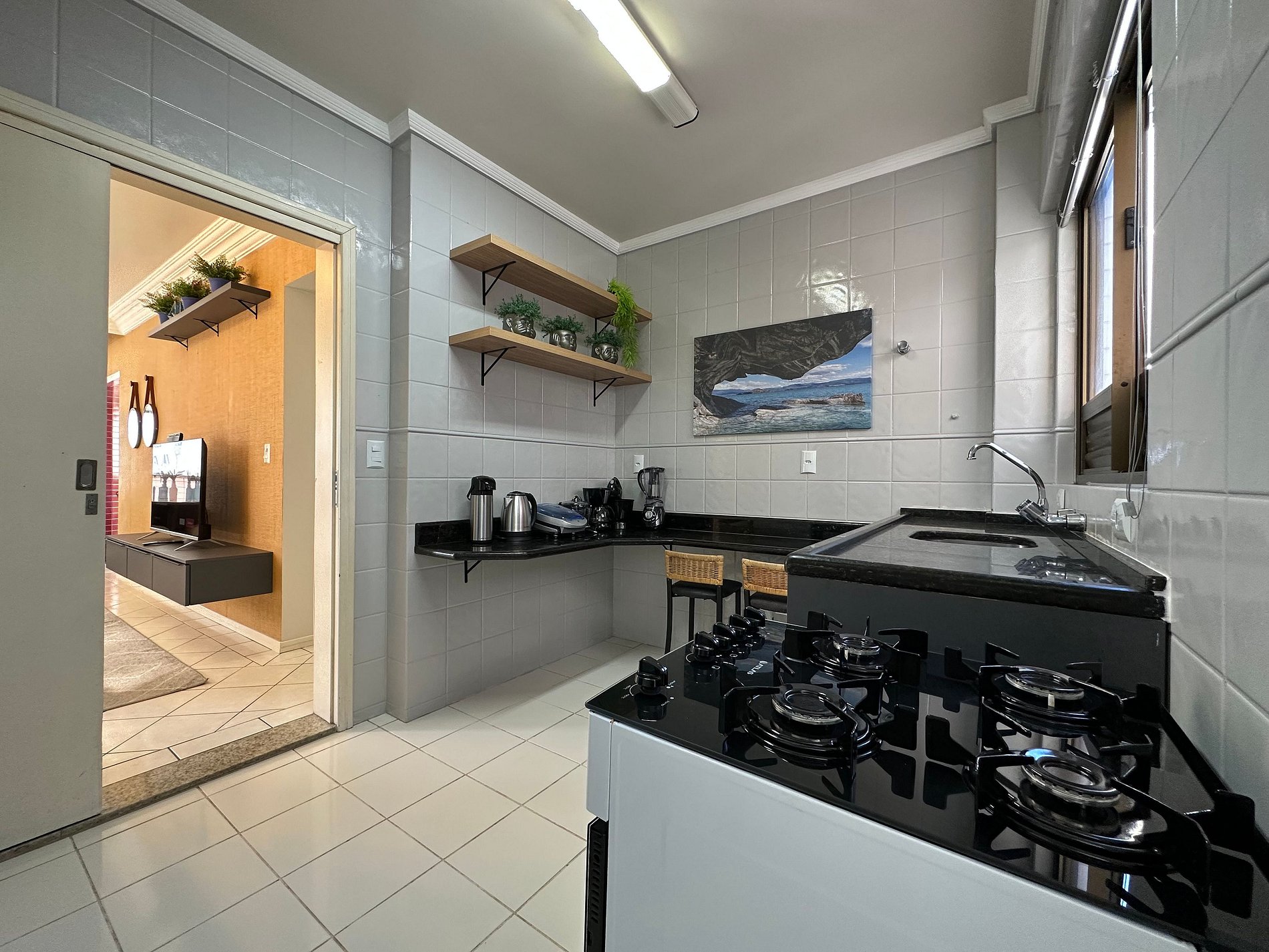 - Sala com TV de 47" polegadas com app como Netflix, Globoplay, Amazon Prime (necessário conectar com a conta própria)