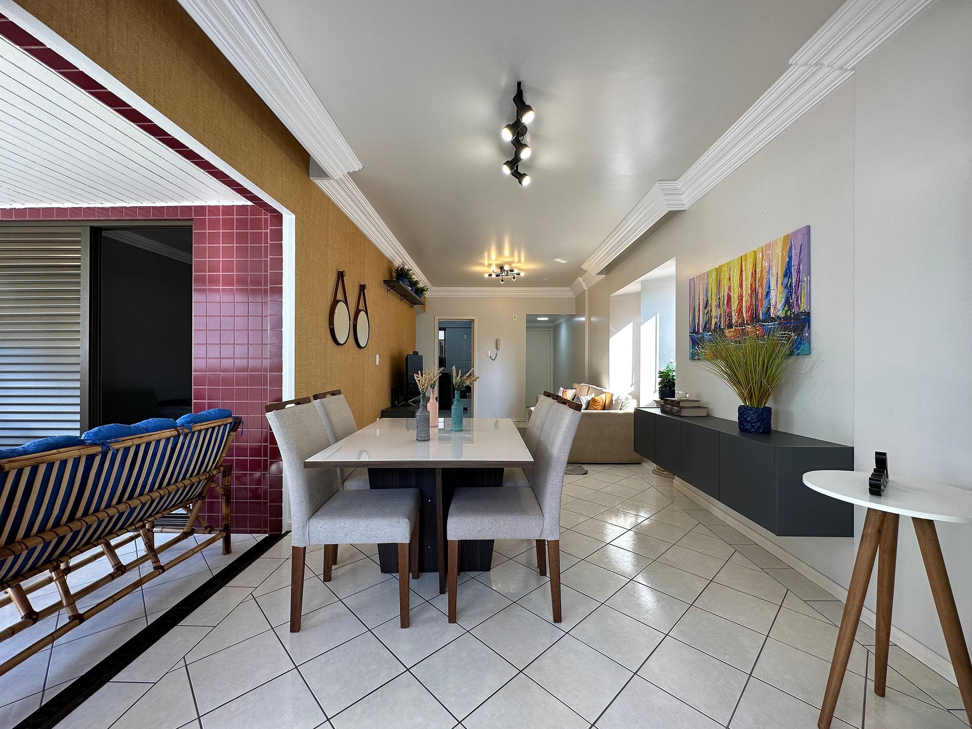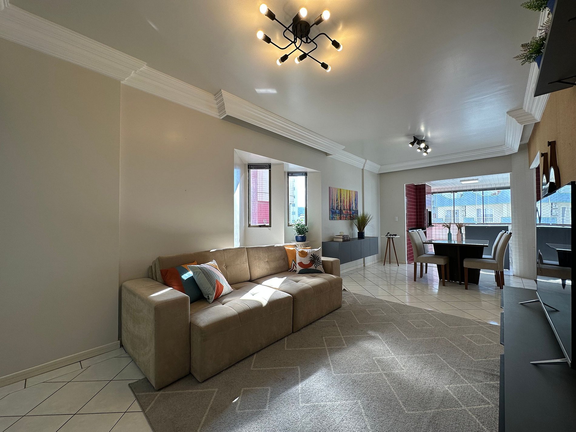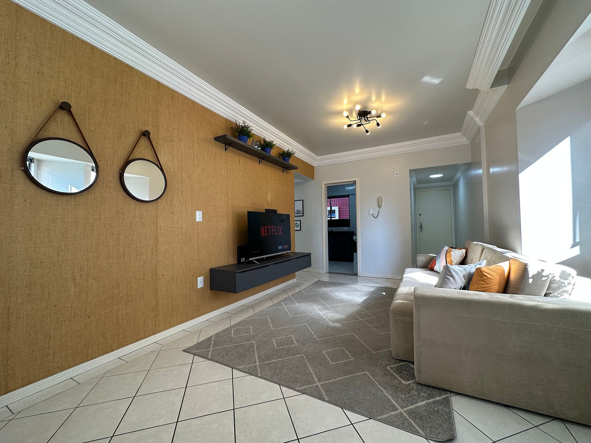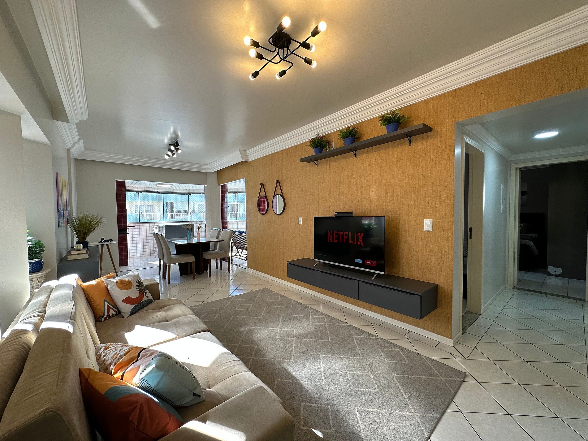 - Sala com TV de 47" polegadas com app como Netflix, Globoplay, Amazon Prime (necessário conectar com a conta própria)